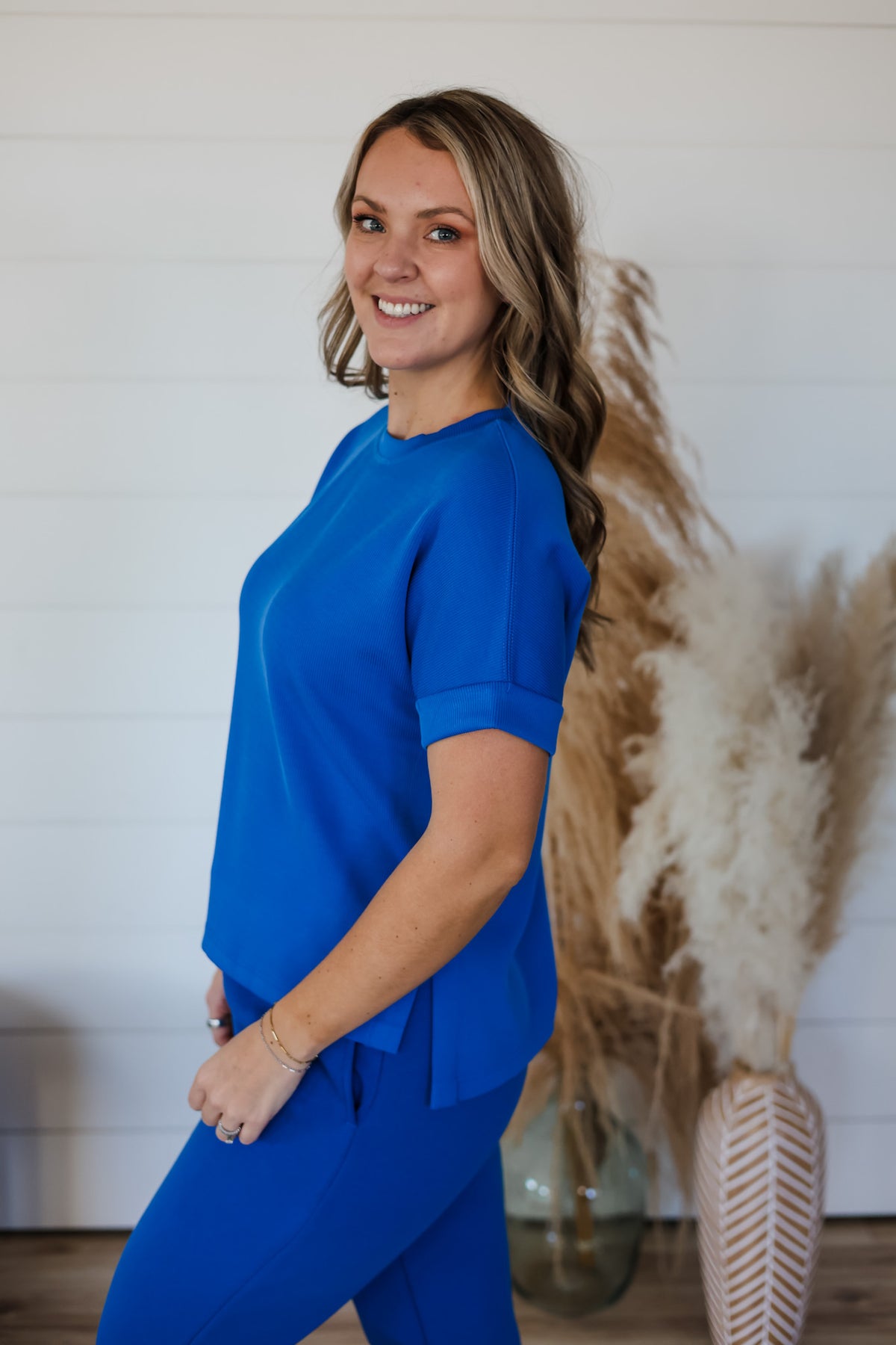 Effortlessly cool and impossibly soft, the Better This Way Top is your new go-to for lounging in style. Crafted from buttery sand-washed rib fabric that feels like a dream against your skin, this relaxed-fit tee features a timeless crew neck, rolled sleeve cuffs, and subtle side slits with a playful high-low hem. The perfect excuse to embrace your off-duty vibeâpair it with our matching lounge shorts and call it a day.