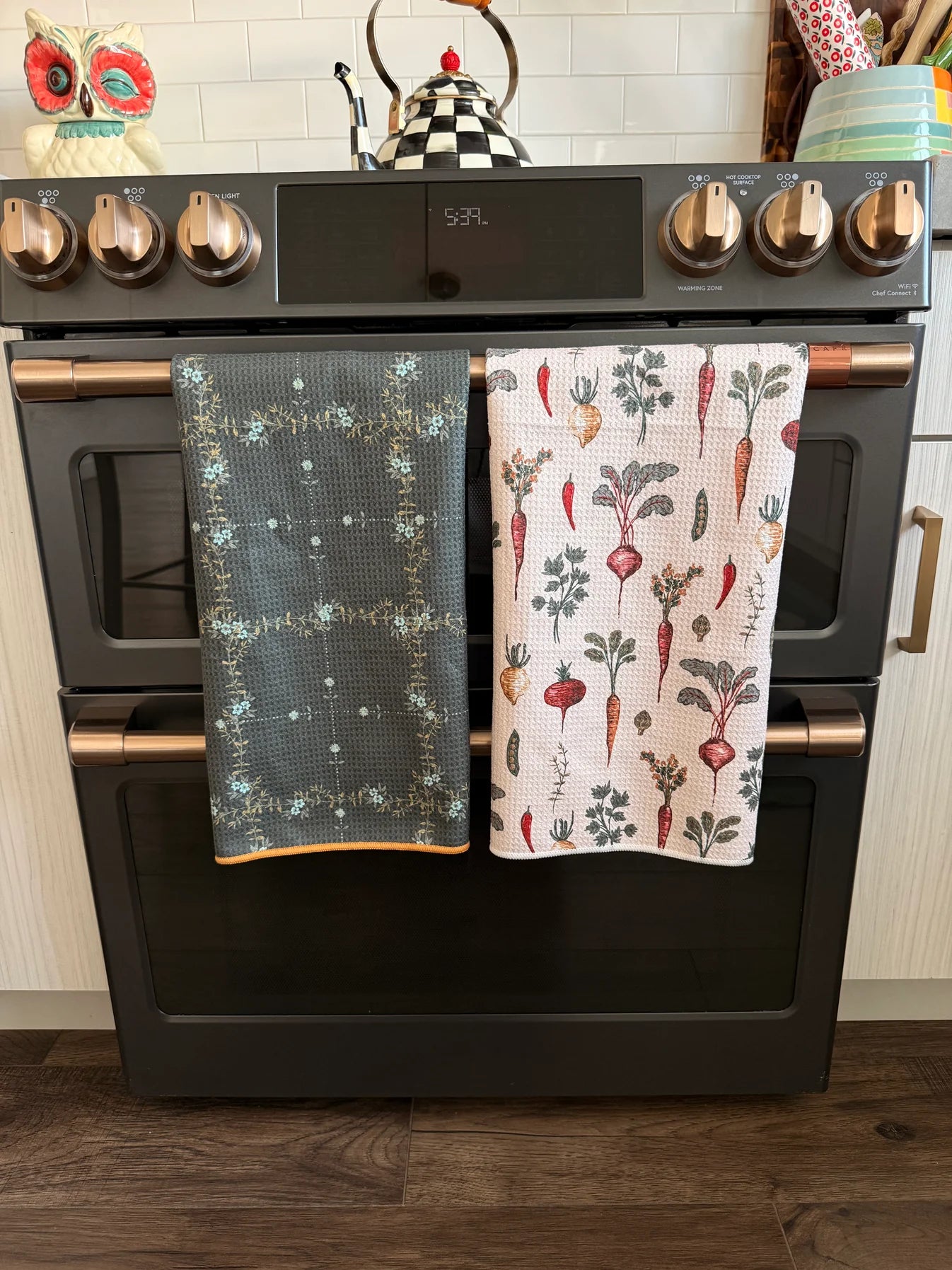Have a little frill to wipe up a spill. With an easy touch of magic to functionally add a little cheer to your home. A high-absorbent waffle weave microfiber Hand Towel Double-Sided (The same pattern on each side) 17 inches x 27 inches. Only wash with microfiber products. Machine wash and dry with low heat. Environmentally friendly