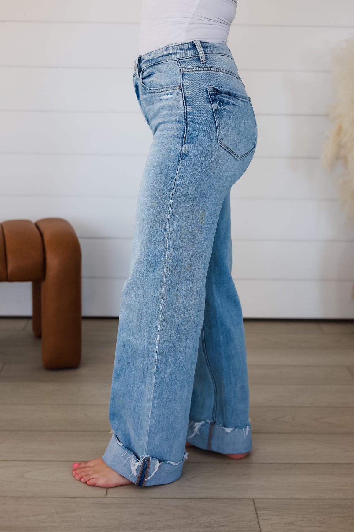 Elevate your denim game with these super high-rise wide jeans from Flying Monkey. Crafted from comfort stretch denim, they feature a flattering high waist paired with on-trend distressed detailing for an effortlessly cool look. The fixed bartack cuff and raw single hem add authentic character, while the light wash brightens any outfit. Perfect for styling with everything from crop tops to oversized blazers, these full-length jeans deliver both comfort and contemporary edge.