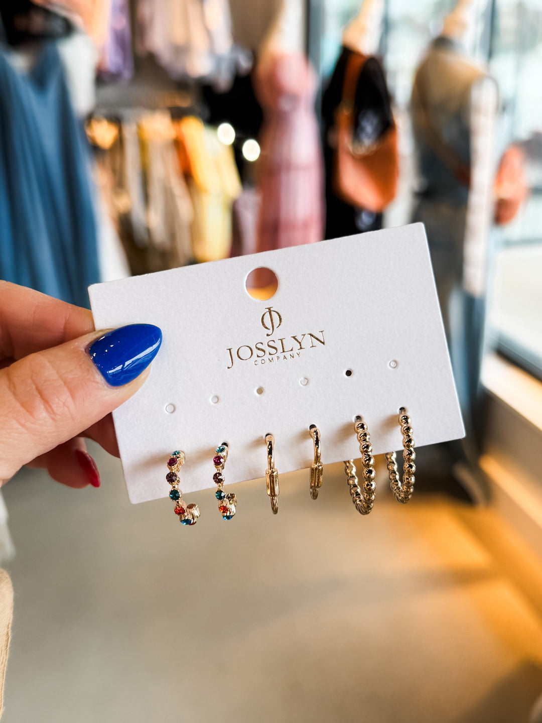 Trio Rhinestone Ball Huggie Hoop Earrings Set