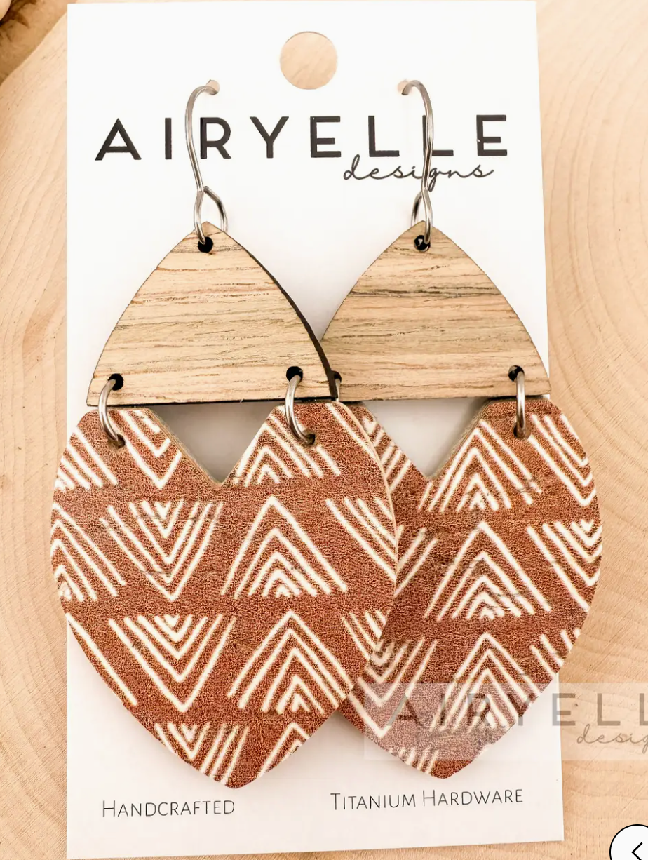 Tribal Crossroads Triangle Cork + Leather Wood Earrings