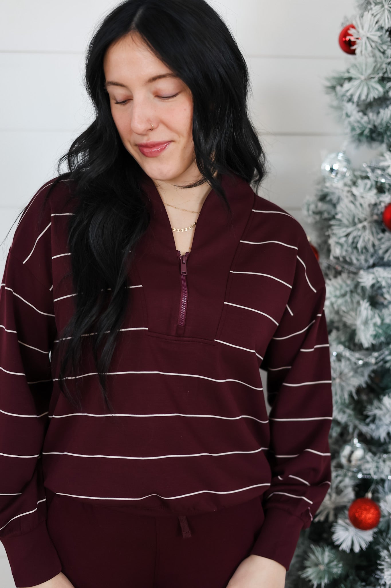 Dive into style with the After You Top—a playful pullover crafted from sleek scuba fabric featuring fun stripe patterns and a bold V-neck. The zipper detail adds a cheeky twist, making this top as versatile as it is comfy. Perfect for adding a splash of sporty chic to your day! 39% rayon, 2% modal, 54% polyester, 5% spandex