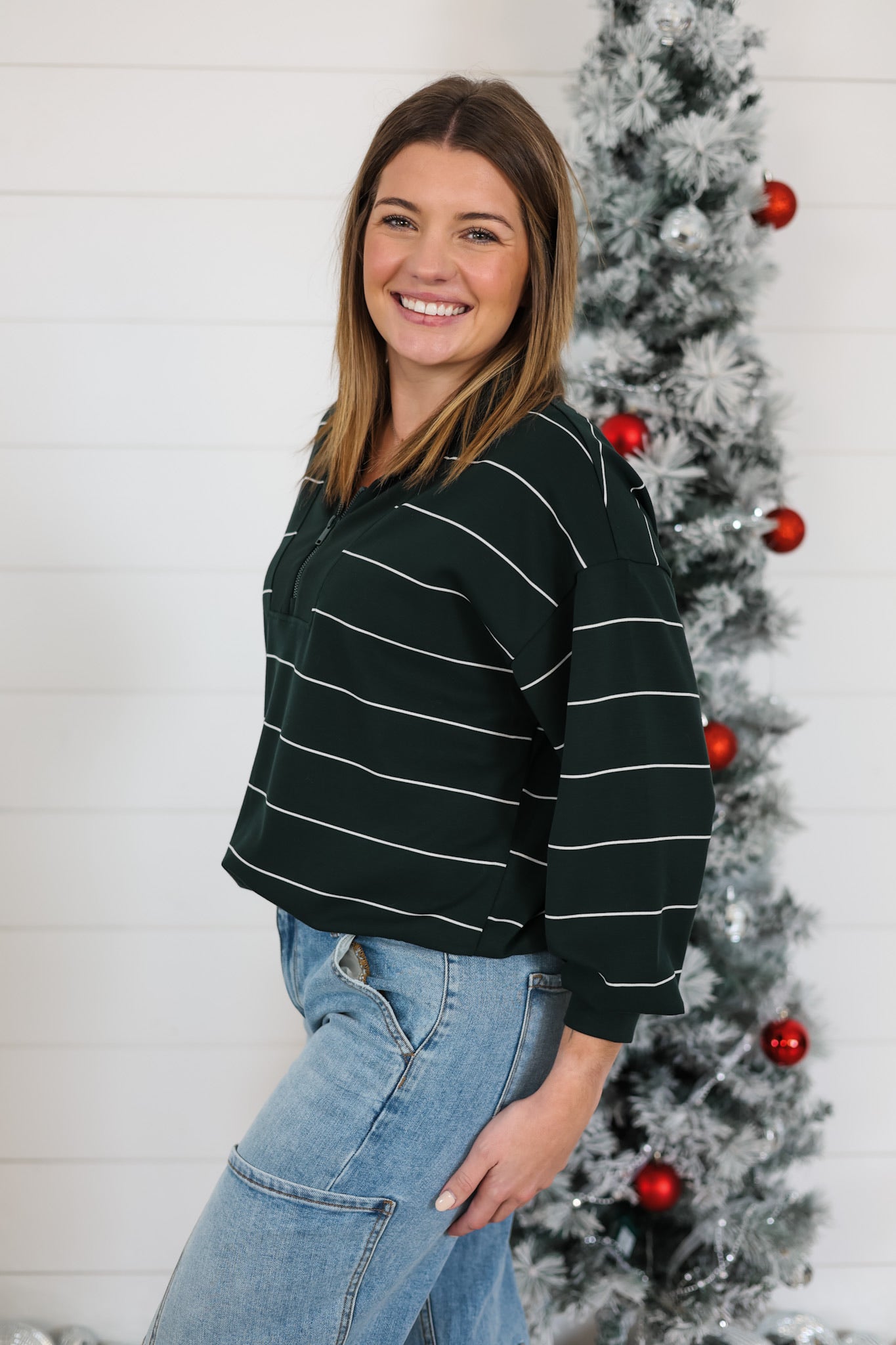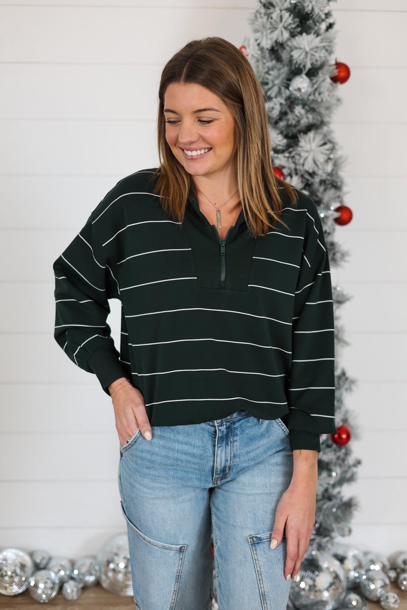 Dive into style with the After You Top—a playful pullover crafted from sleek scuba fabric featuring fun stripe patterns and a bold V-neck. The zipper detail adds a cheeky twist, making this top as versatile as it is comfy. Perfect for adding a splash of sporty chic to your day! 39% rayon, 2% modal, 54% polyester, 5% spandex