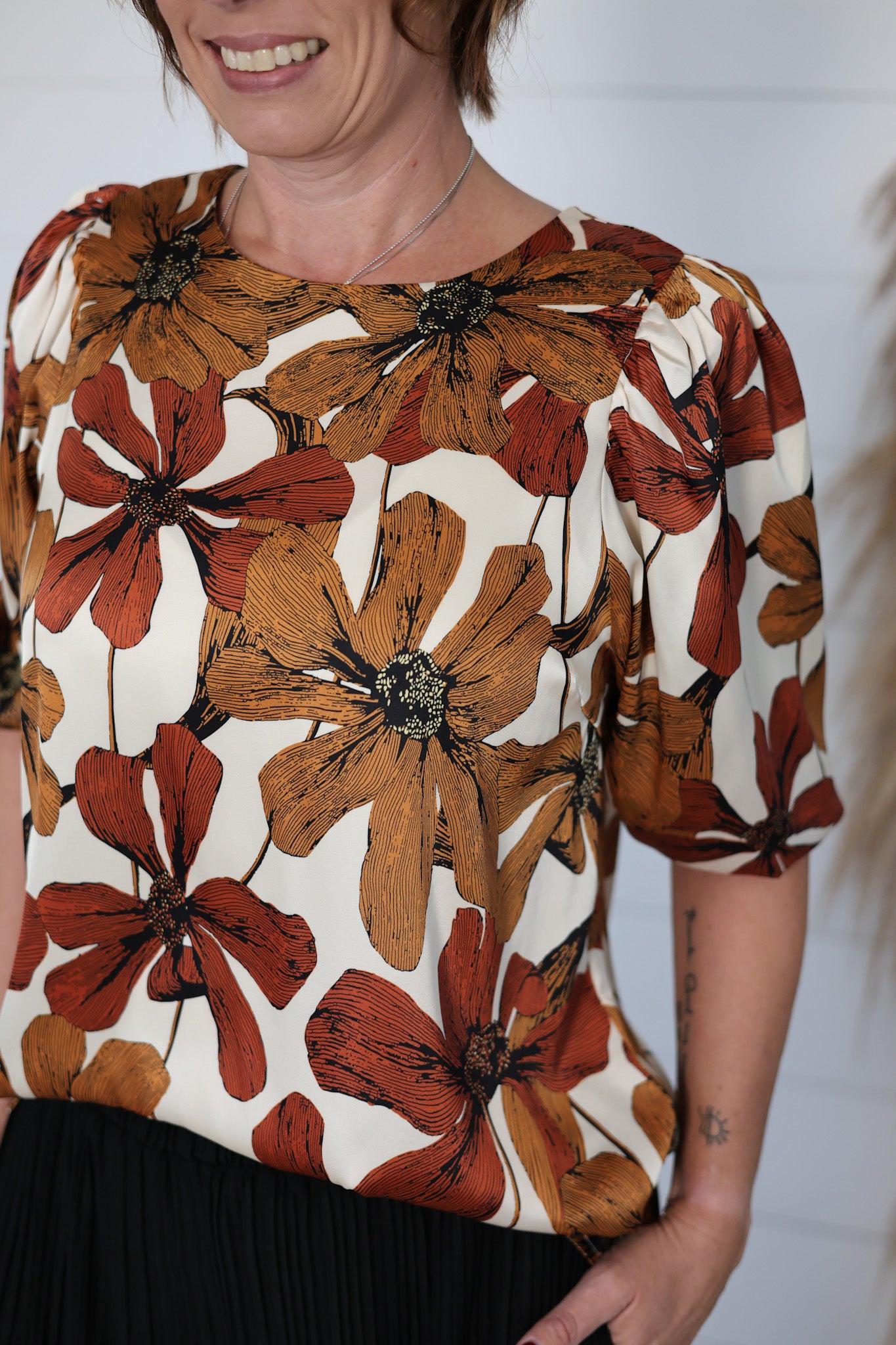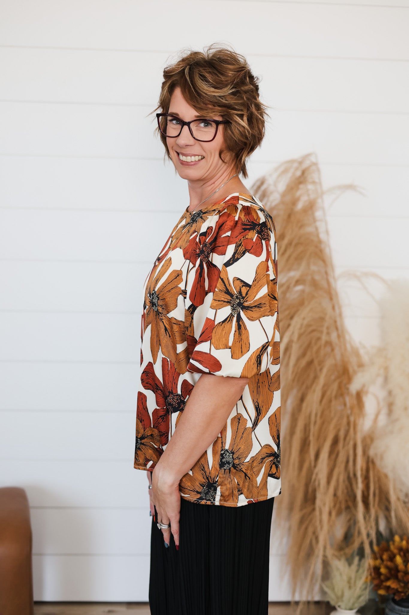Brighten your wardrobe with the All You Could Need Top—a playful floral printed blouse featuring a charming round neck and puffed 3/4 sleeves. The subtle keyhole detail adds a flirty touch, making this piece perfect for effortless style on any day. Enjoy comfort and a splash of whimsy wherever you go!
