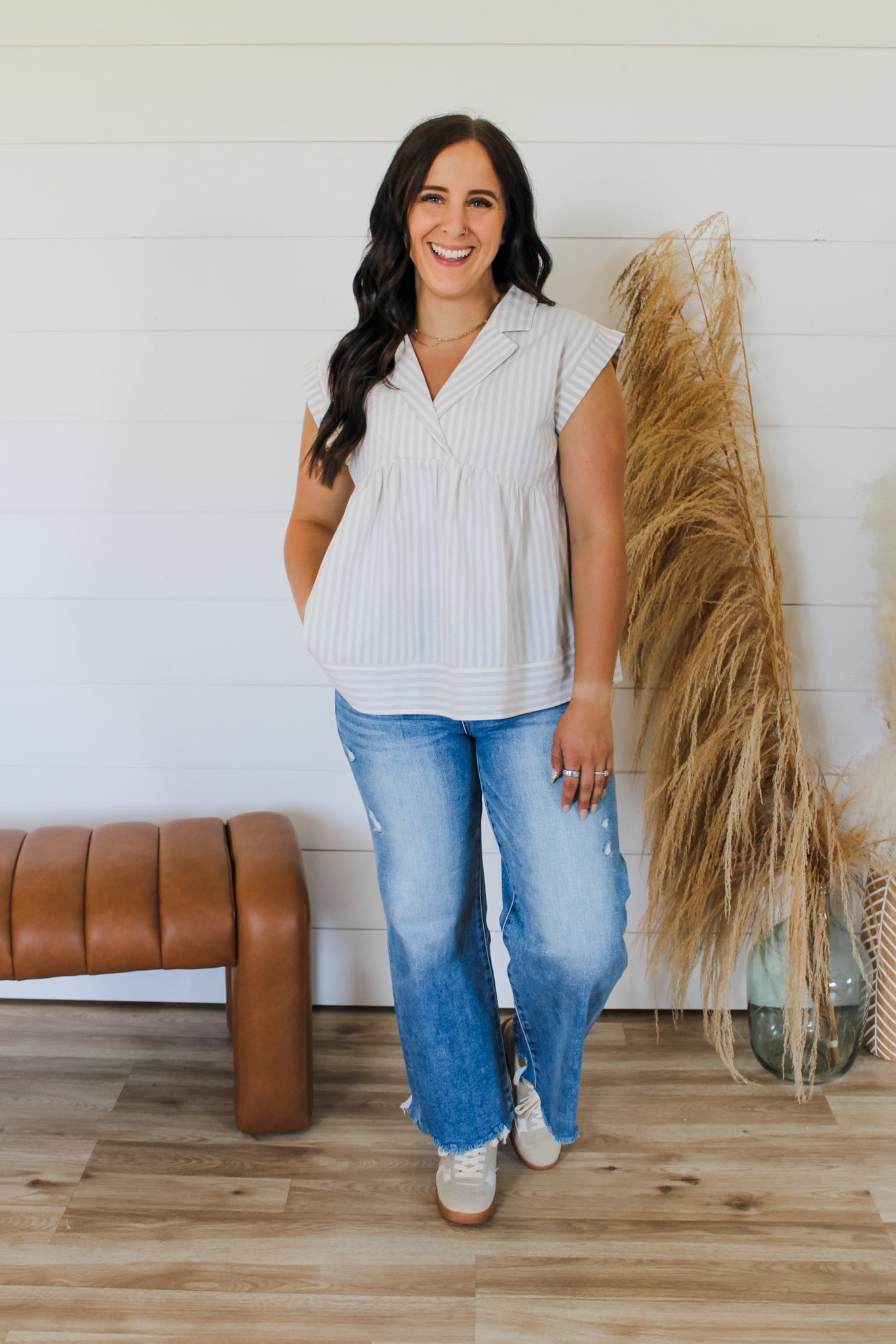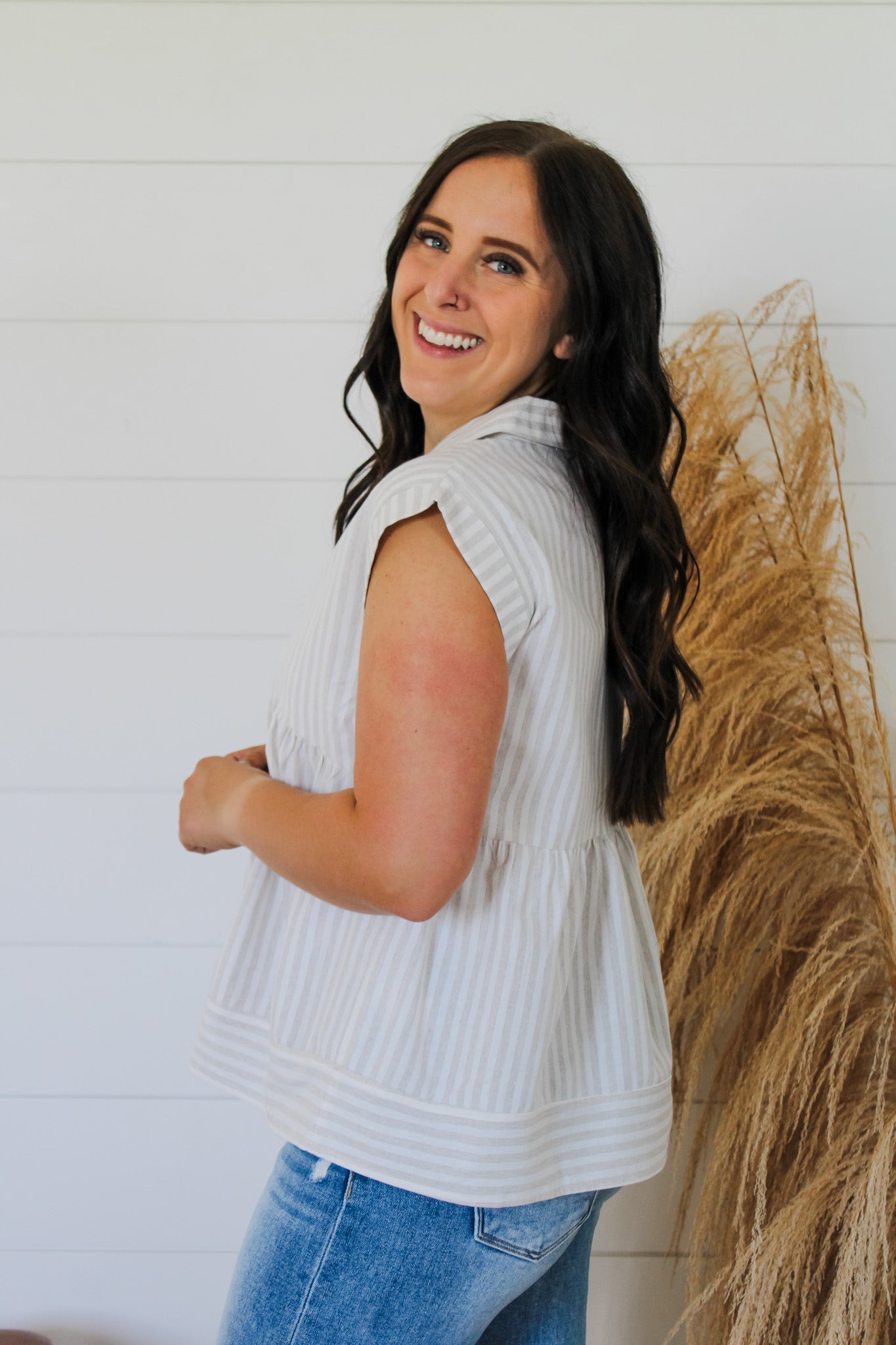Meet your new favorite summer staple: the Along With It Top. Crafted from soft cotton, this playful piece features cheerful stripes and a notch collar that adds just the right touch of charm. Rolled-up cap sleeves keep things breezy and fun, perfect for warm days when you want to look effortlessly cool. Whether you’re out with friends or strolling through the park, this top brings easy style wherever you go.