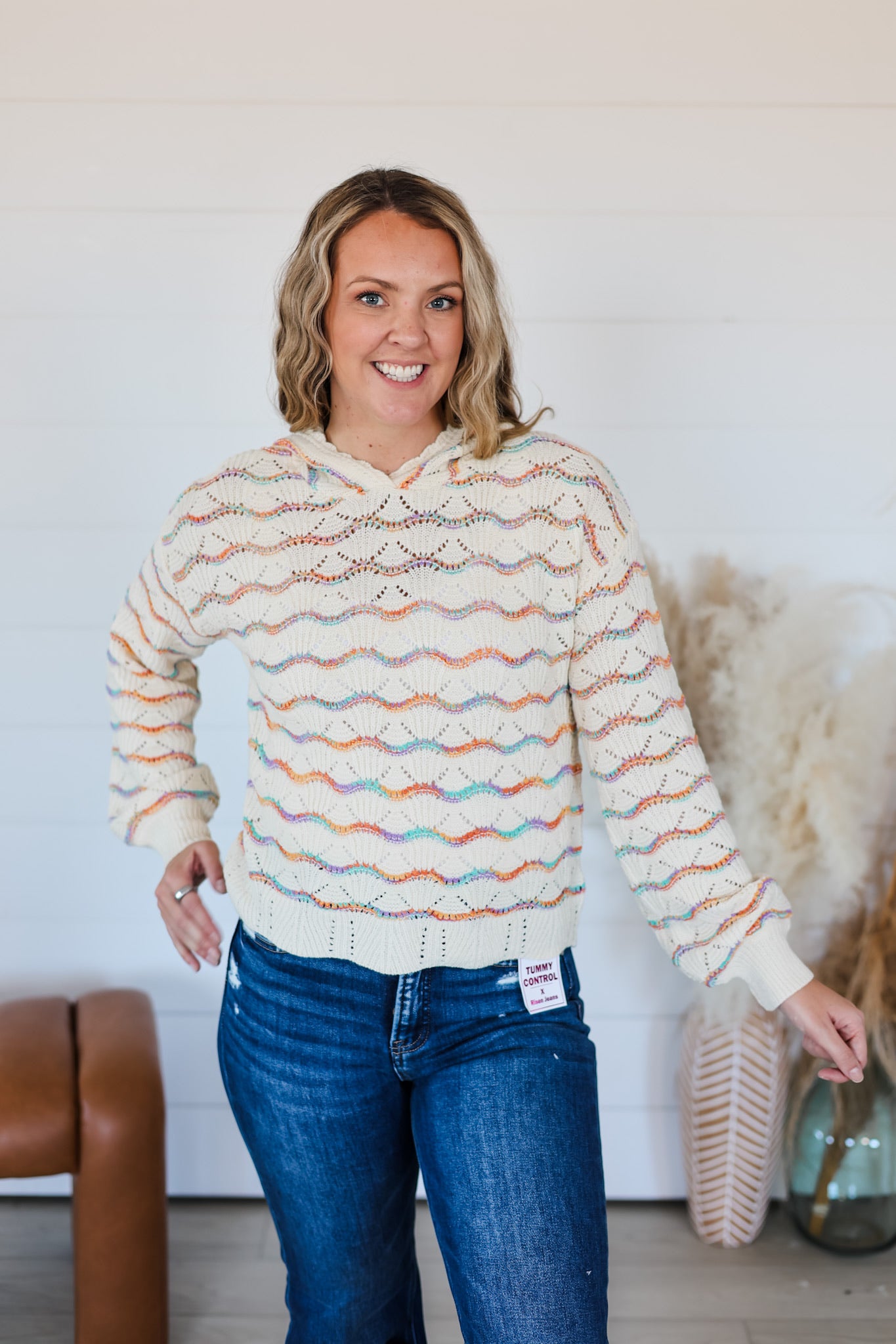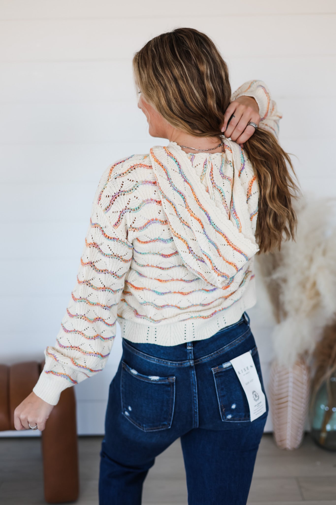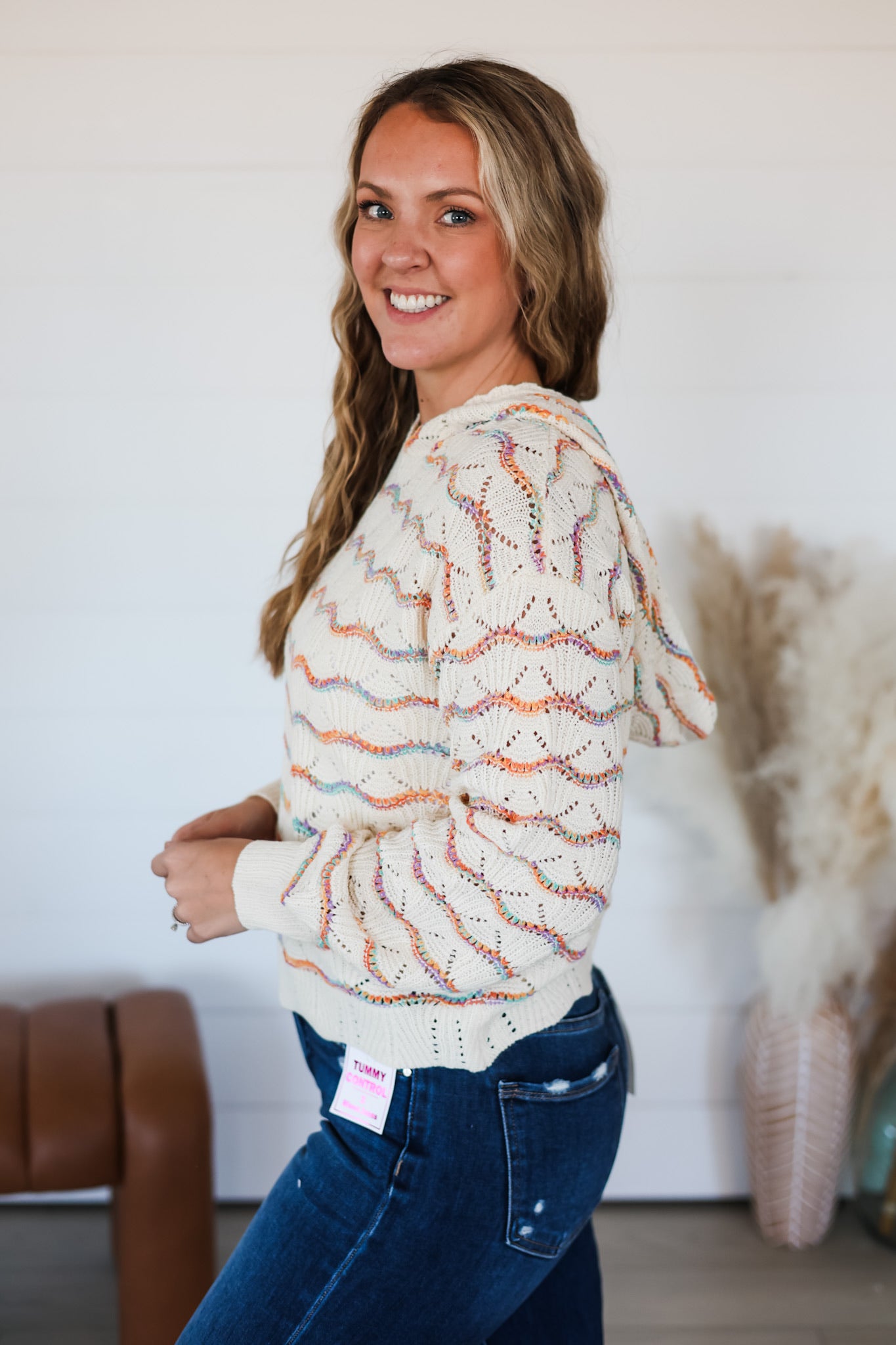 Cozy up in this charming pointelle stitch hoodie that's equal parts comfort and style. The delicate, textured knit creates an airy feel perfect for layering or wearing solo, while the relaxed fit keeps things effortlessly cool. Whether you're heading back to basics or just need a hug in sweater form, this top delivers warmth without the weight. Throw it on and feel the difference a thoughtful design makes.