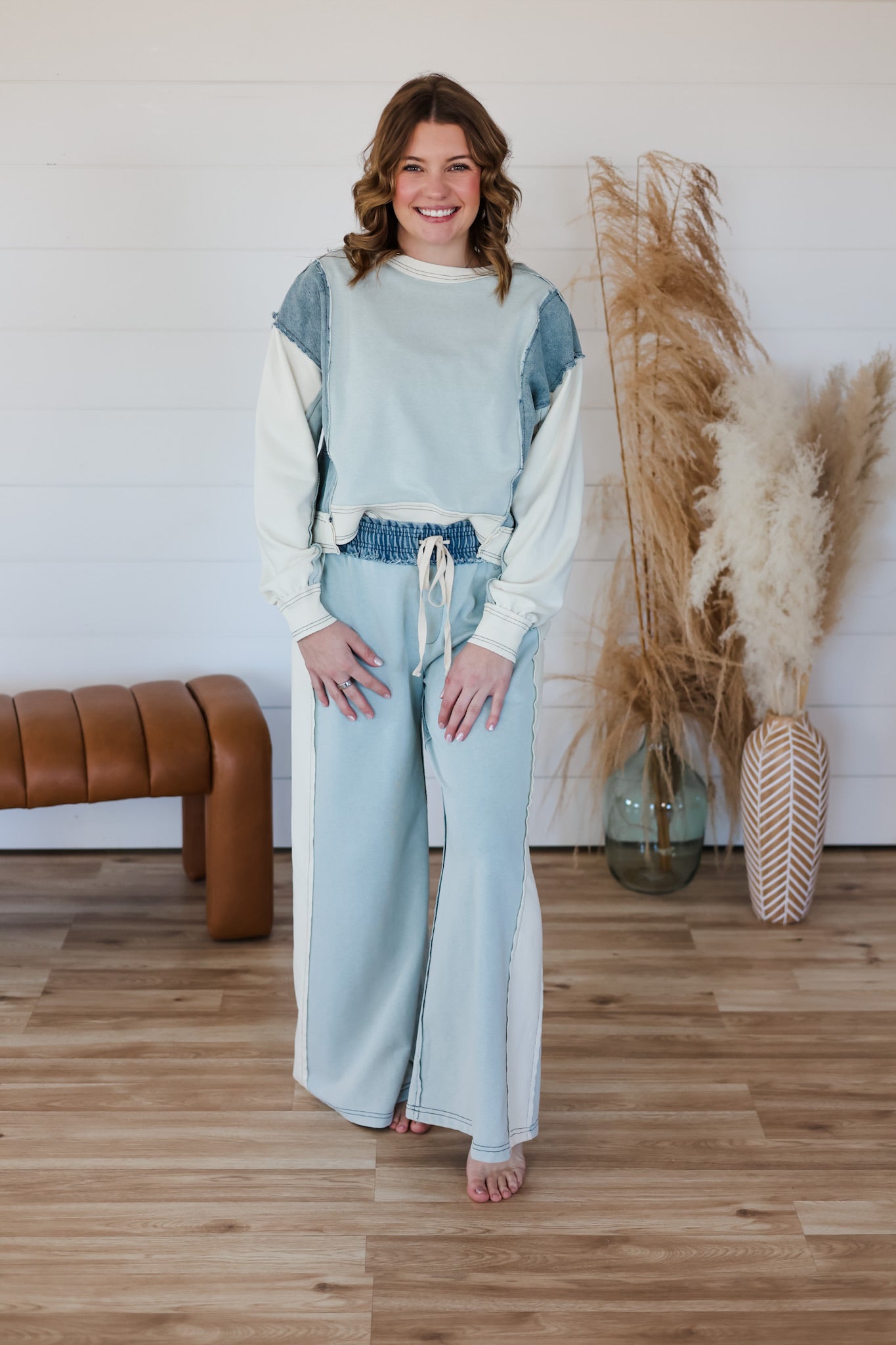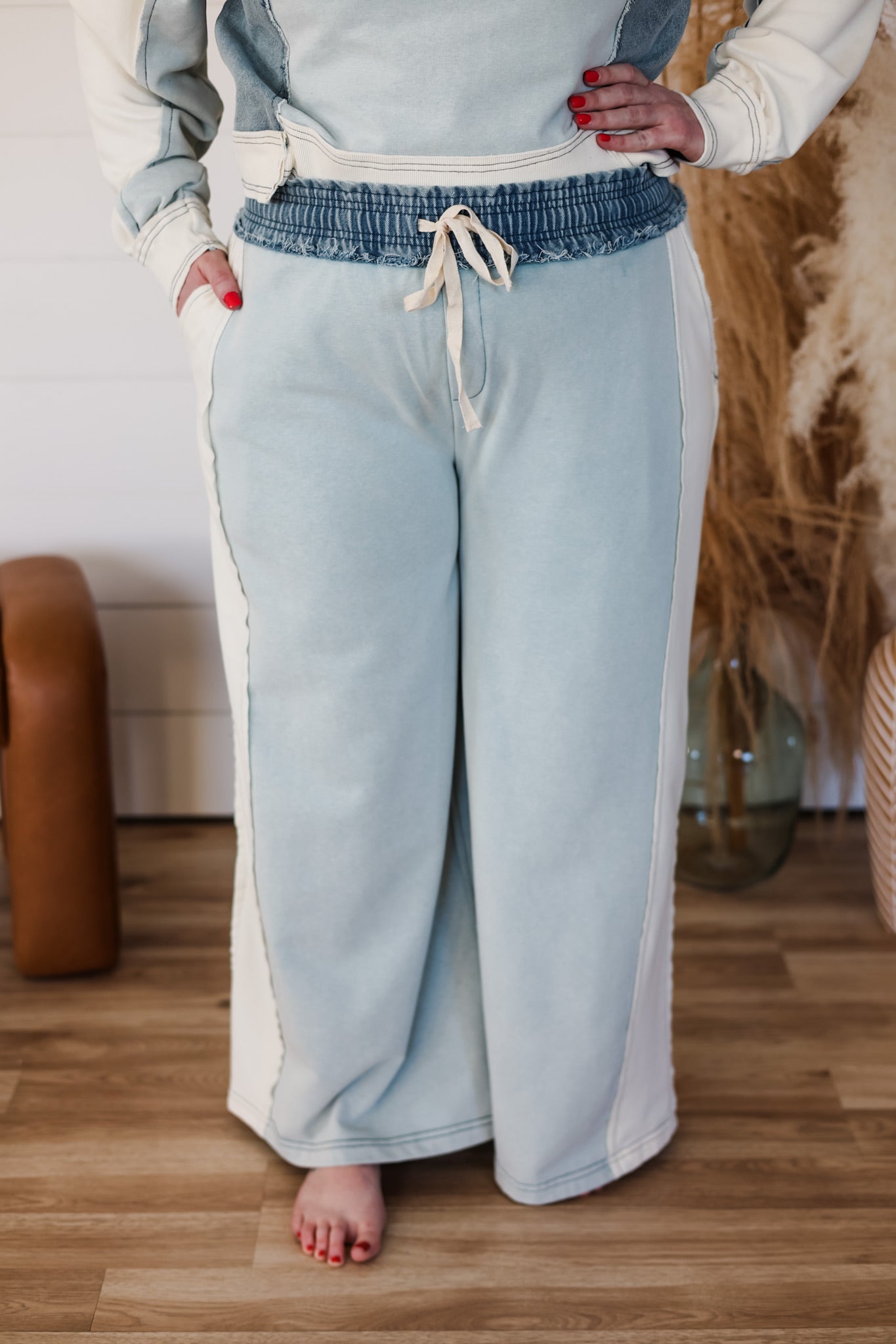 Step into comfort with the Believe In Me Pant, where playful style meets everyday ease. These drawstring pants feature a charming color block denim detail that adds visual interest, while the elastic waistband keeps you feeling relaxed all day long. Perfect for casual outings or cozy nights in, they're the go-to piece that makes getting dressed fun. Embrace effortless confidence in a pant that's as easygoing as you are.