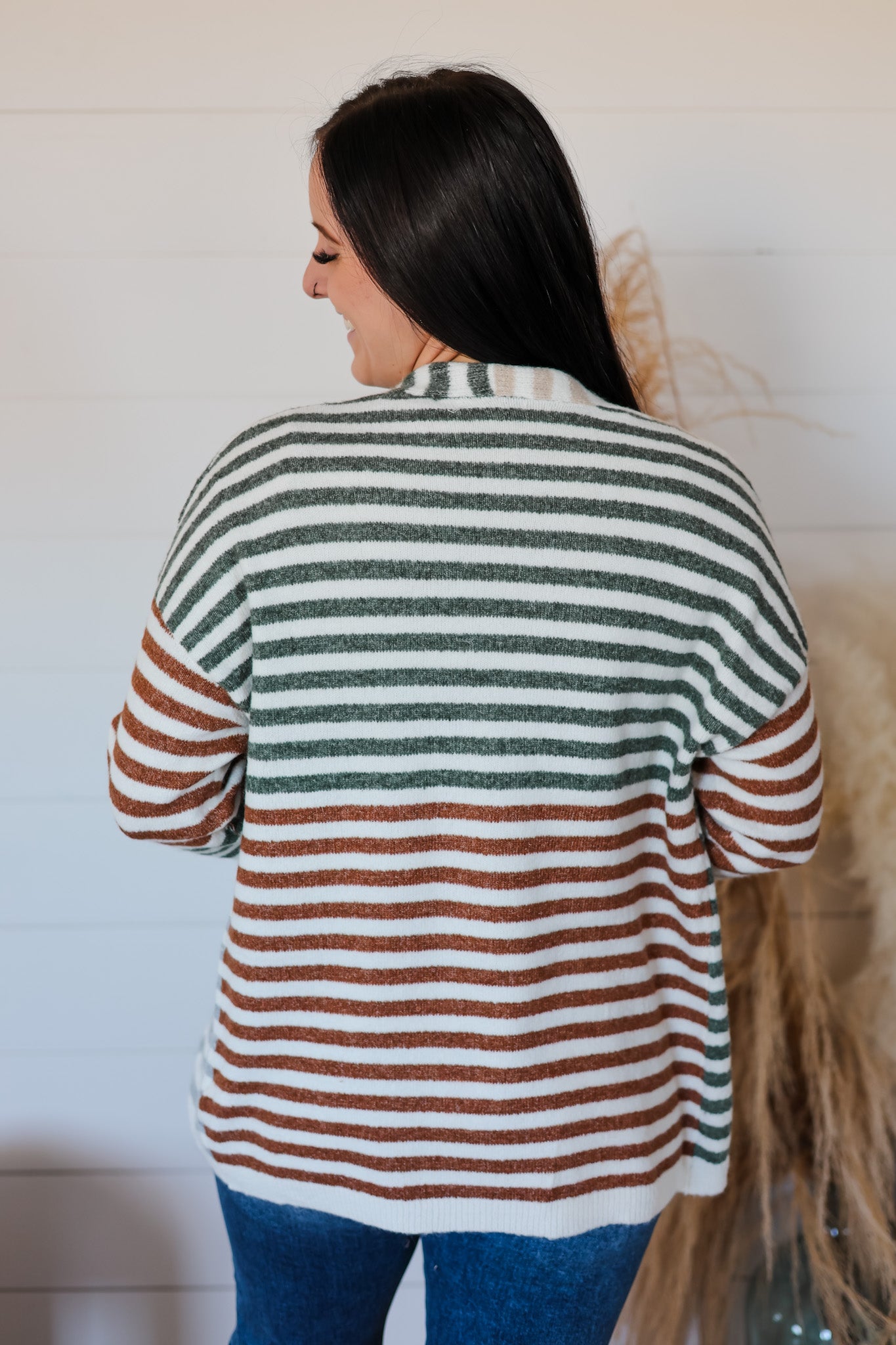 Layer up with personality in this vibrant striped cardigan that's equal parts cozy and chic. Featuring a relaxed open front and long sleeves, it's the perfect throw-on piece for effortless style. The multicolored stripes add a fun pop of color to any outfit, whether you're pairing it with basics or mixing patterns. Soft, comfortable, and endlessly versatile—your new favorite layering essential.