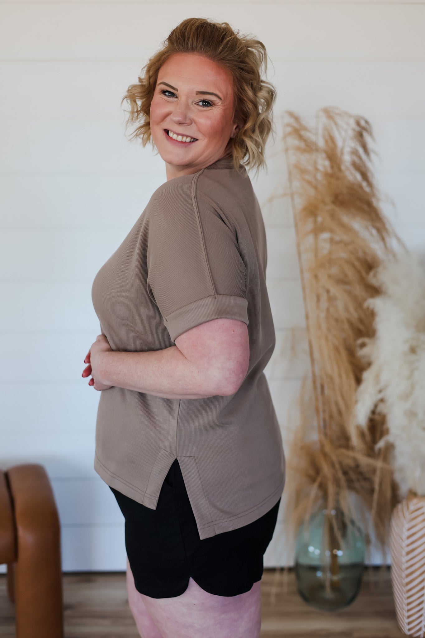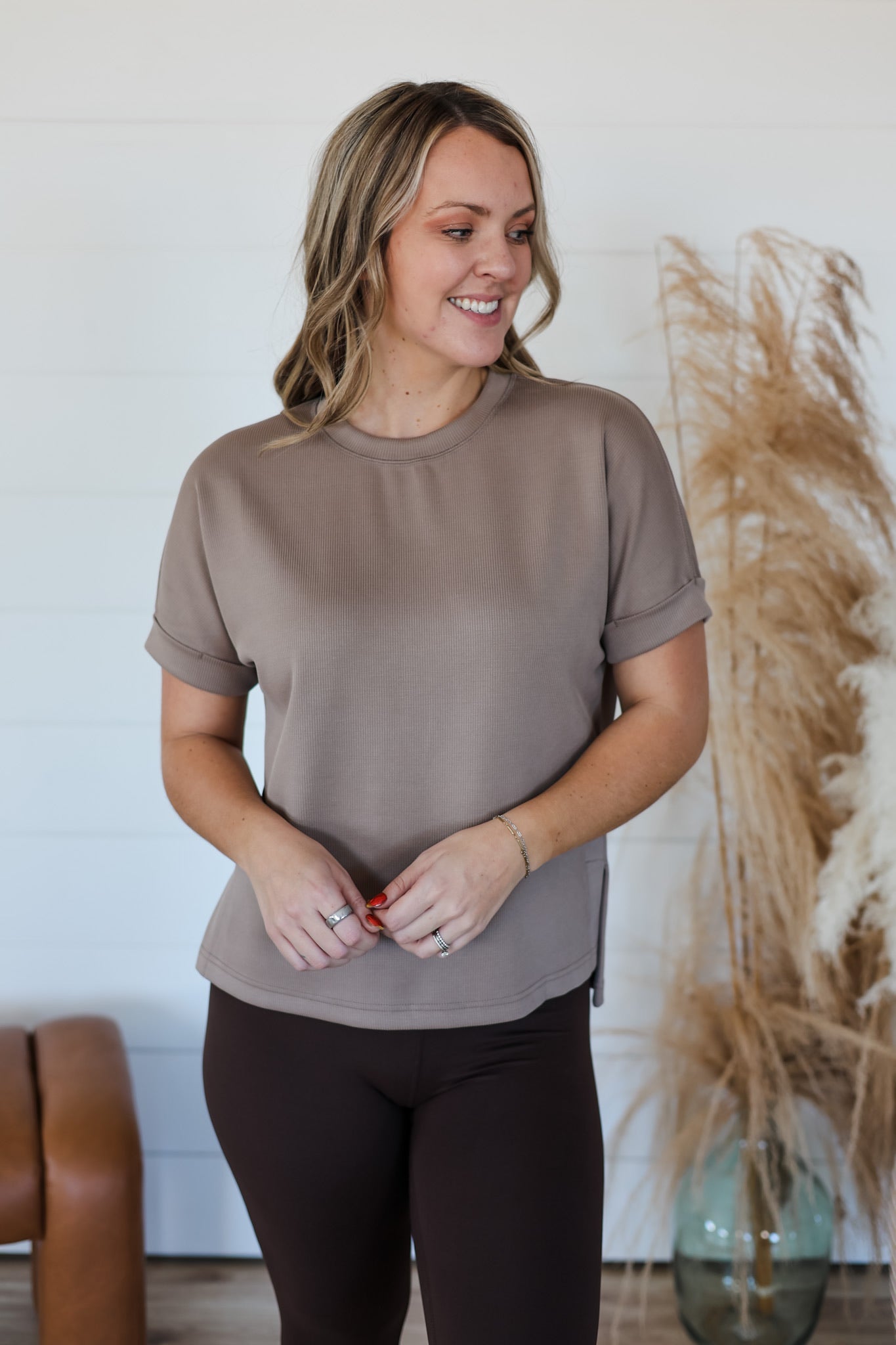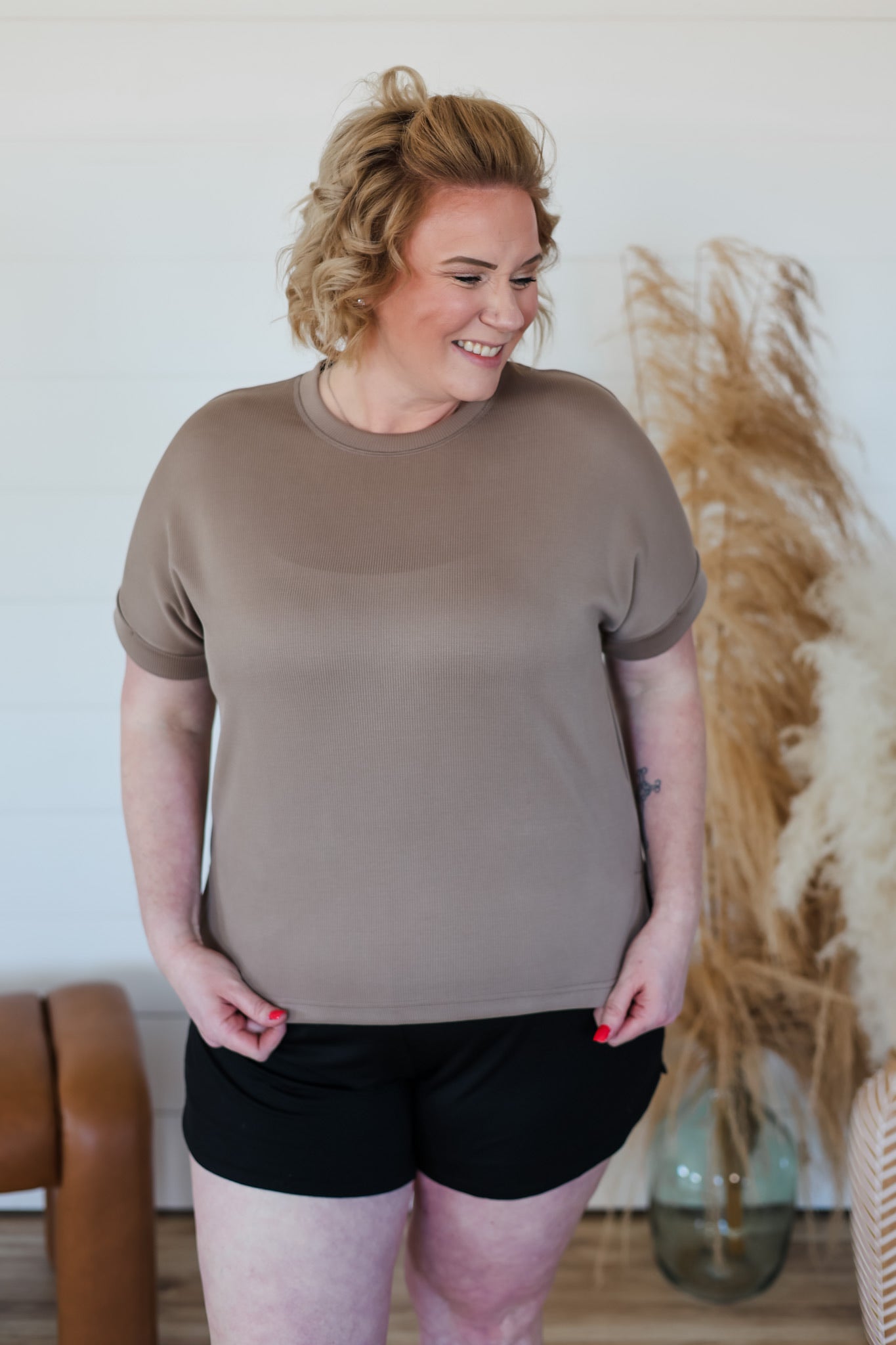Effortlessly cool and impossibly soft, the Better This Way Top is your new go-to for lounging in style. Crafted from buttery sand-washed rib fabric that feels like a dream against your skin, this relaxed-fit tee features a timeless crew neck, rolled sleeve cuffs, and subtle side slits with a playful high-low hem. The perfect excuse to embrace your off-duty vibe—pair it with our matching lounge shorts and call it a day.