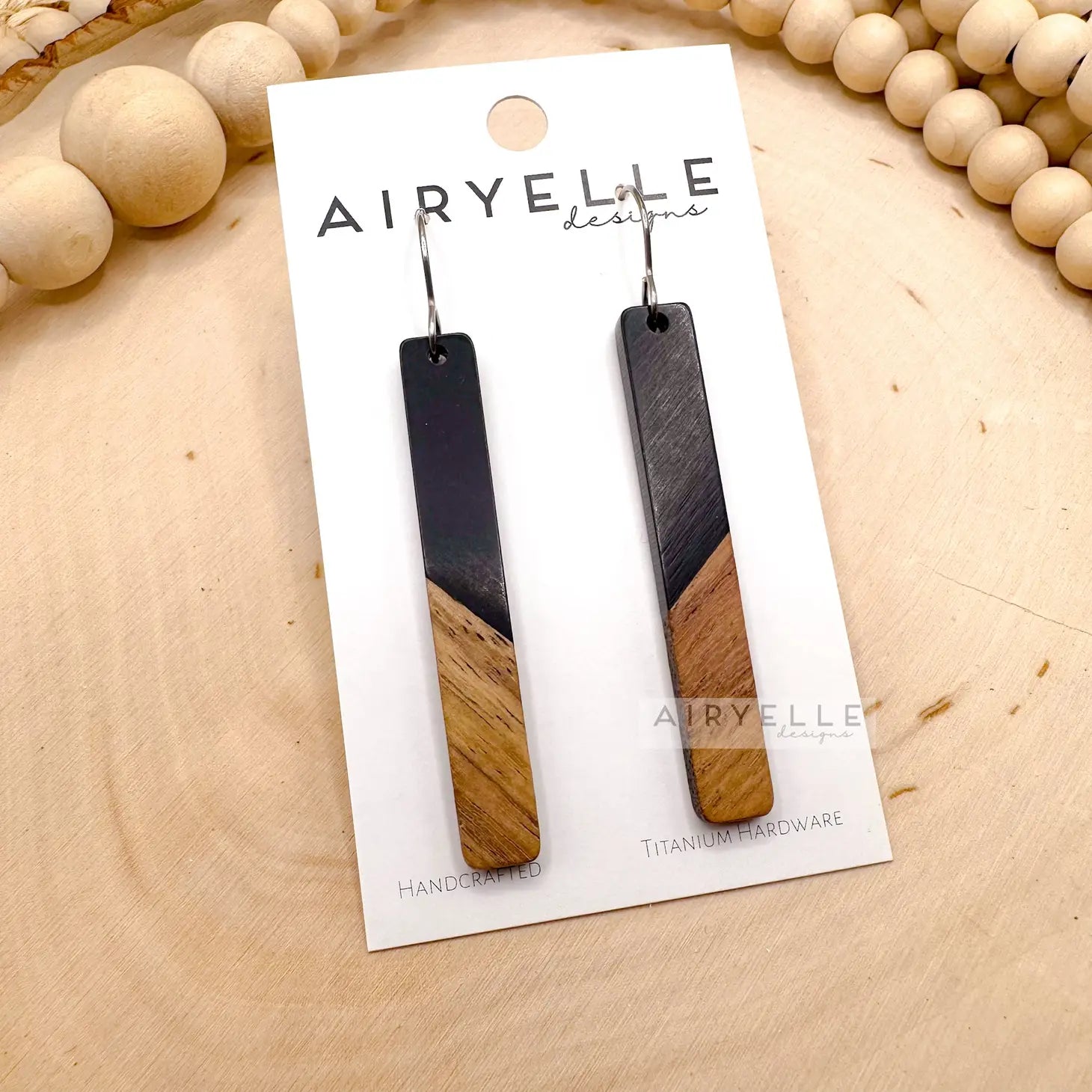 Materials: These stunning earrings are made from black resin and walnut stained wood. Nickel & lead free titanium hardware.