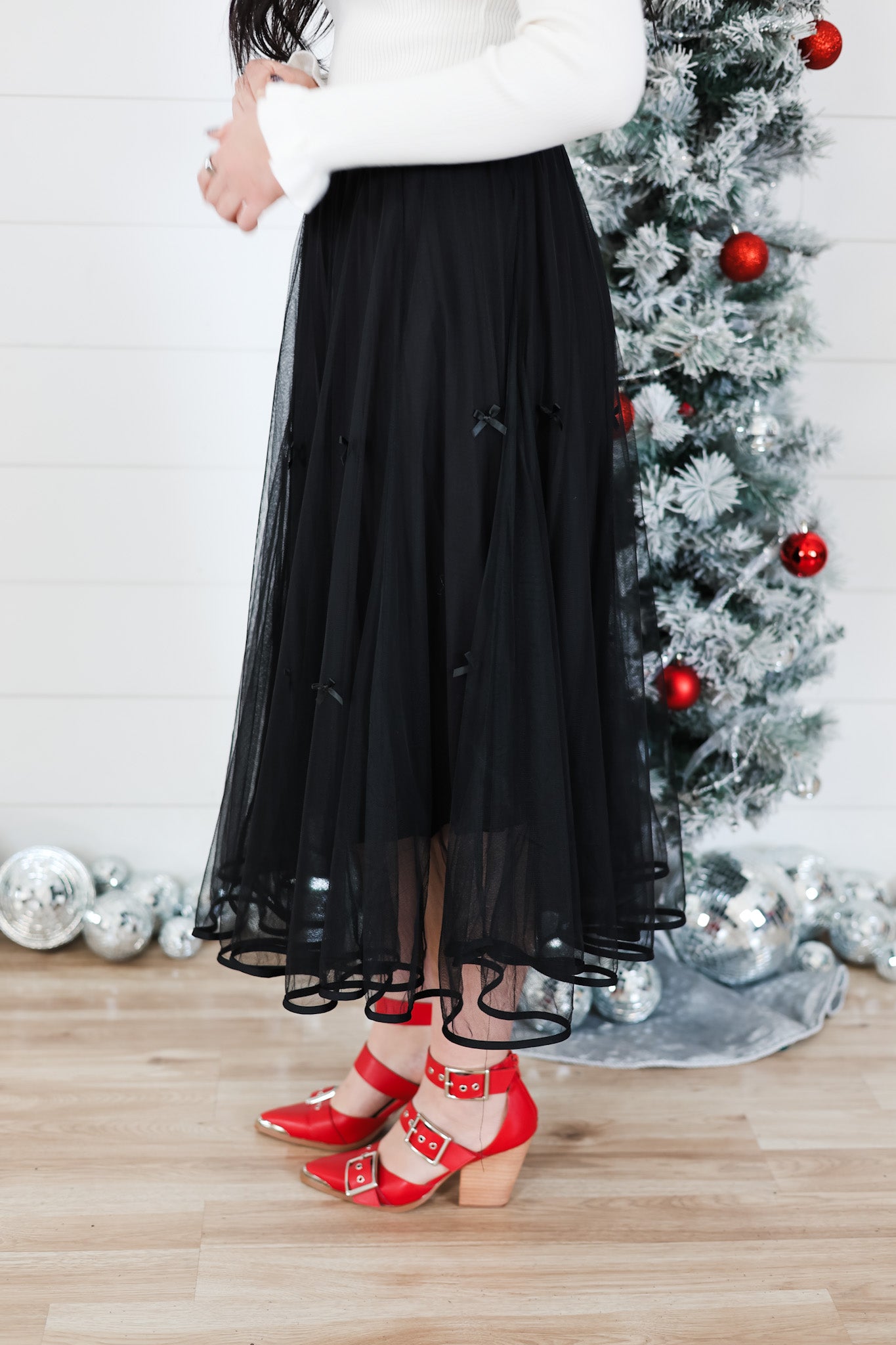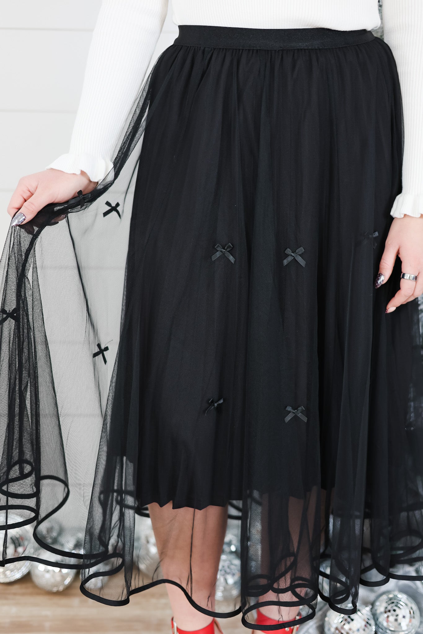 Twirl into fun with this delightful mesh layered skirt! Covered in adorable bow details that dance across every inch, it's a style statement that celebrates your playful side. The stretchy elastic waistband makes getting dressed effortless—just slip it on and you're ready to go. Perfect for adding a whimsical touch to any outfit, this skirt brings joy and movement to your wardrobe.