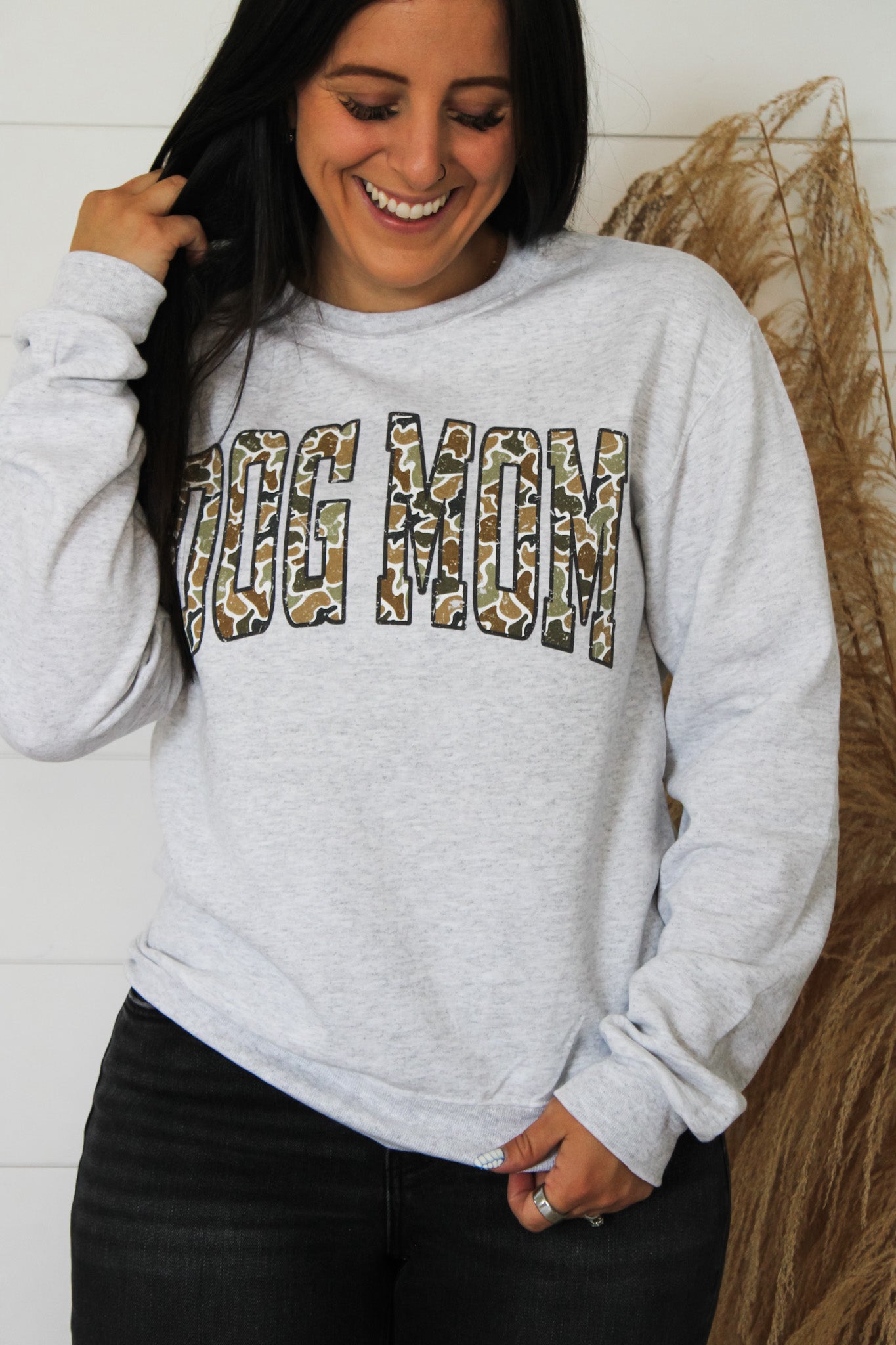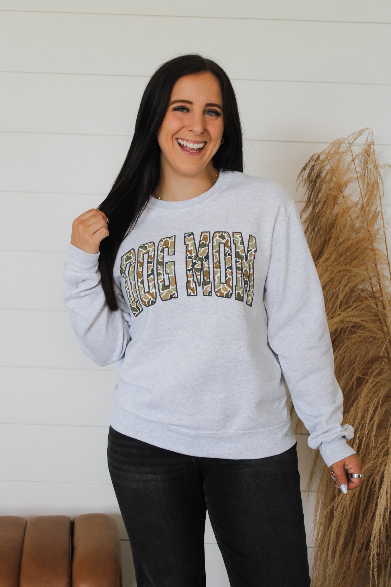 Introducing the Camo DOG MOM Crewneck. Stay cozy in this super soft, oversized crewneck. Perfect for those chilly mornings (with a cup of coffee, of course). Say goodbye to uncomfortable clothes and hello to ultimate comfort.