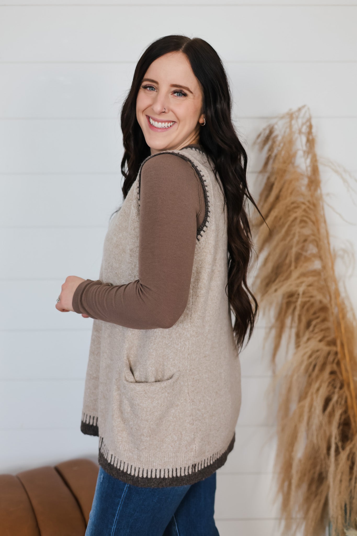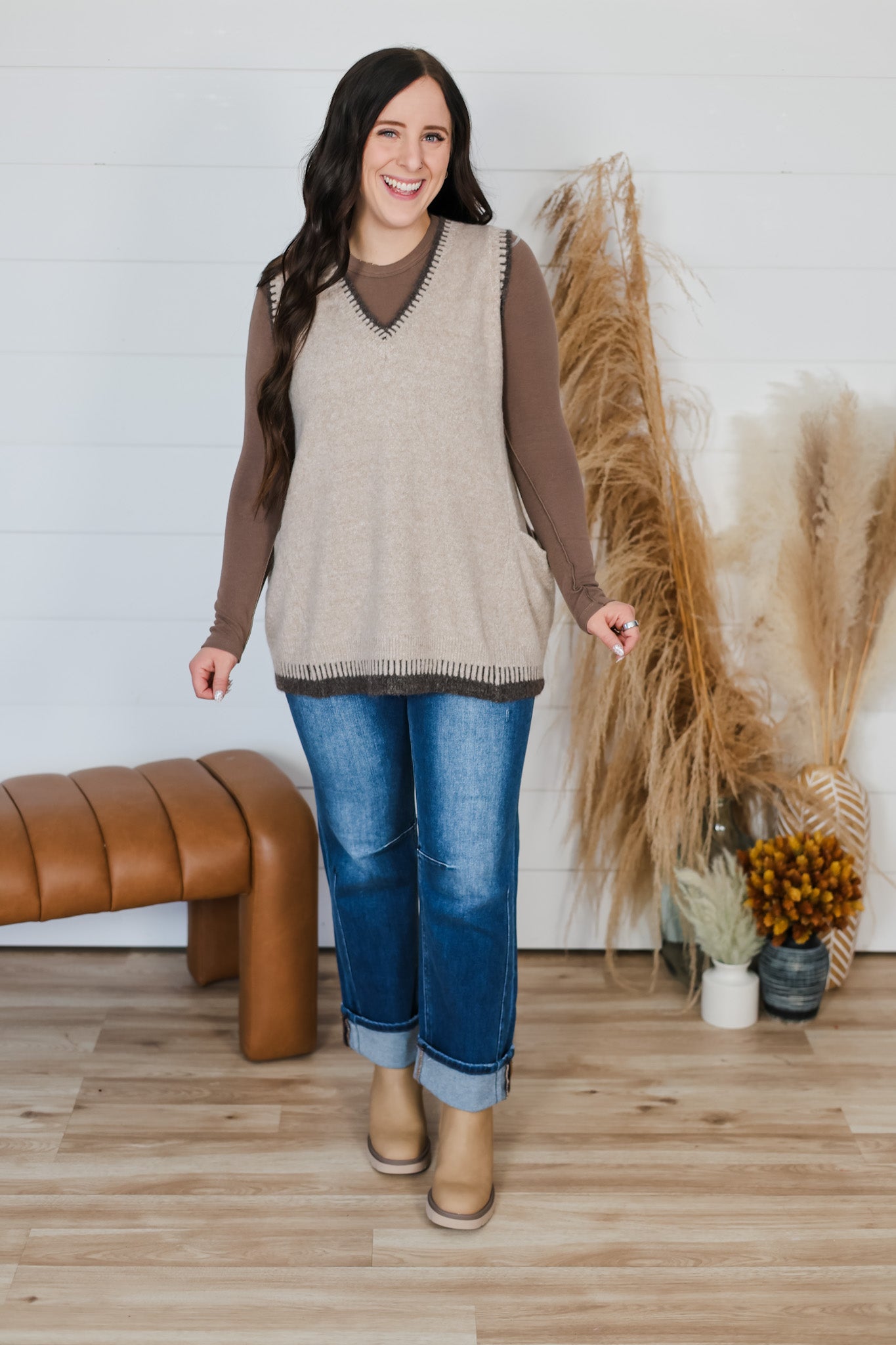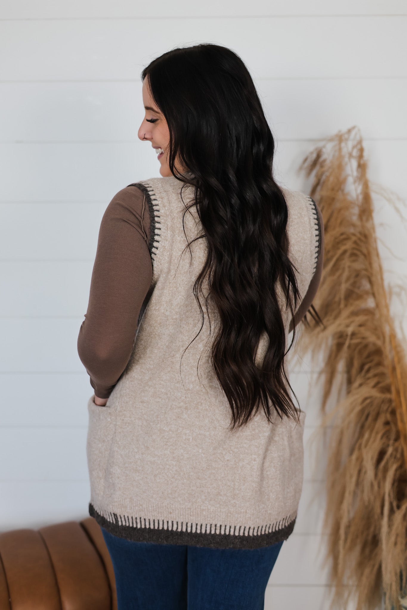 Layer this playful pullover sweater vest over your favorite tee for instant style. The charming V-neck features a delicate stitch finish that adds visual interest, while practical side pockets keep your essentials within reach. Perfect for transitional weather, this versatile piece brings cozy comfort with a touch of sophistication to any casual outfit.