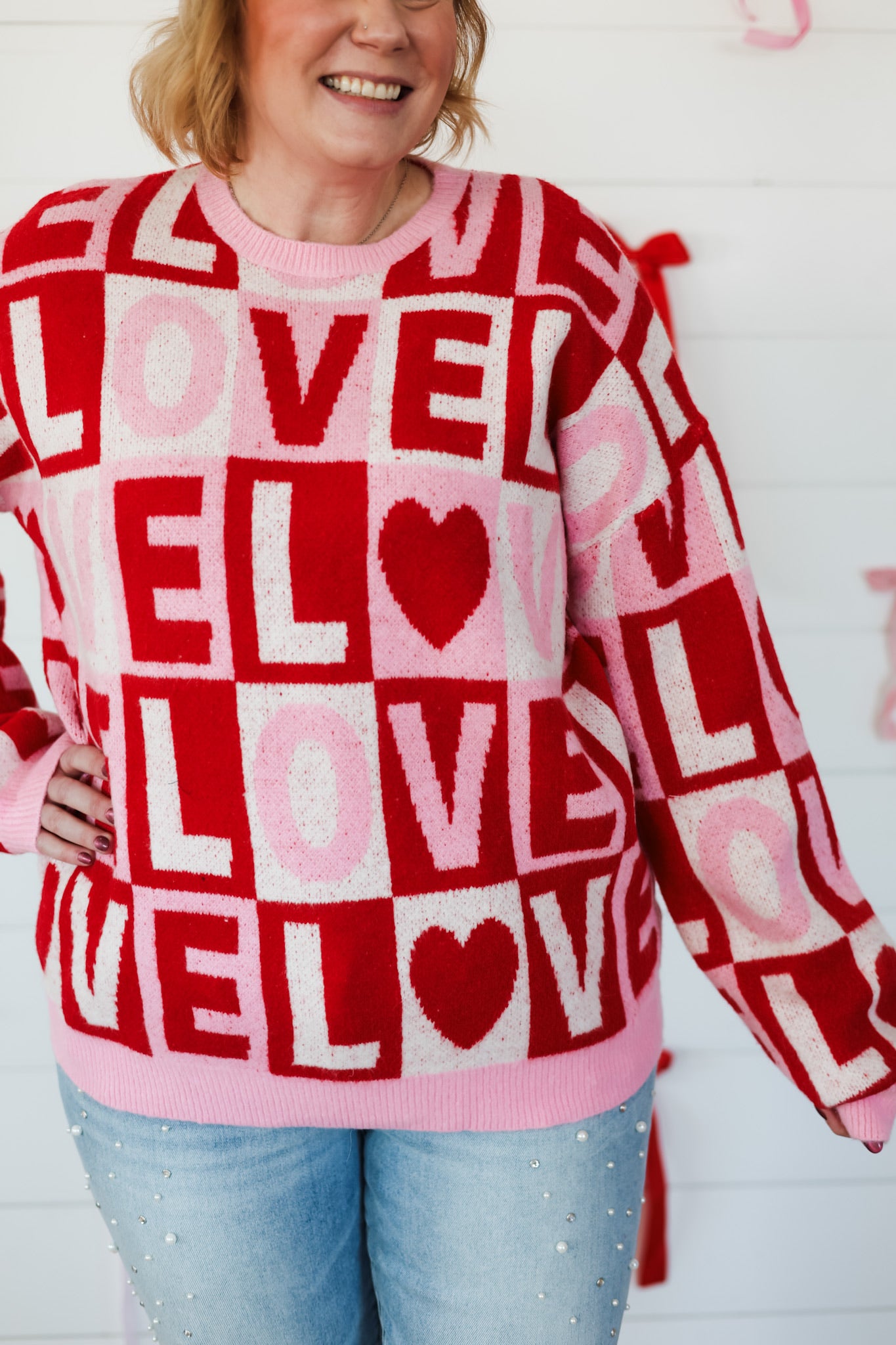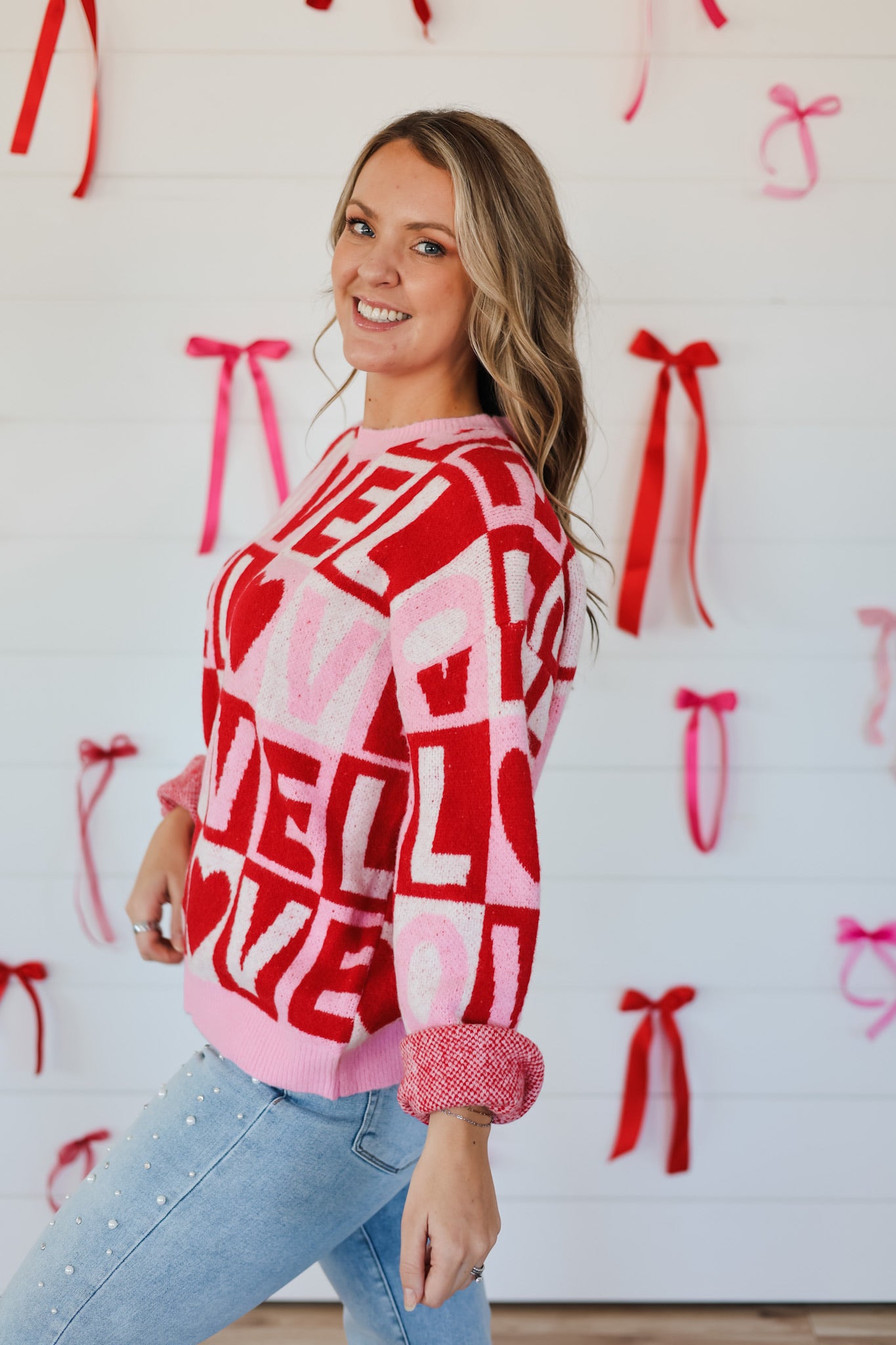 Wrap yourself in cozy charm with this delightful colorblock sweater that celebrates love in the sweetest way. Featuring a playful heart design with "love" lettering, this top blends comfort with personality—perfect for expressing your affectionate side. The thoughtful color blocking adds visual interest while keeping things effortlessly stylish. Whether you're treating yourself or gifting someone special, this sweater brings warmth and whimsy to any casual wardrobe.