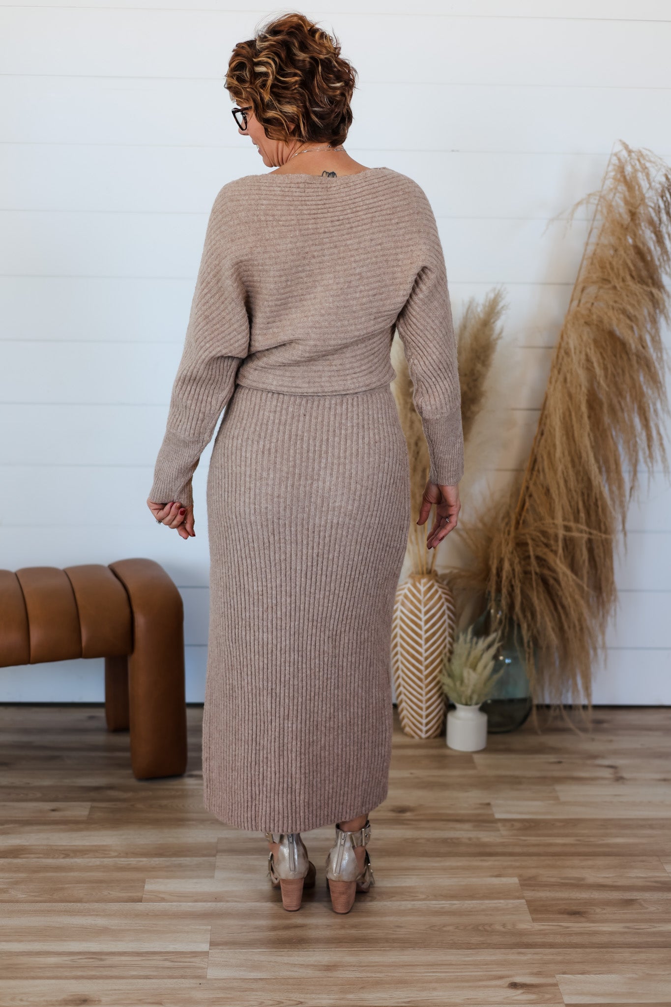 Slip into effortless elegance with this one-shoulder midi knit sweater dress. The asymmetrical neckline and cheeky side slit add modern flair, while the soft, cozy knit keeps you comfortable all day long. Perfect for layering over tights or styling solo, this versatile piece transitions seamlessly from casual coffee dates to evening outings. A wardrobe essential that proves comfort and style aren't mutually exclusive.