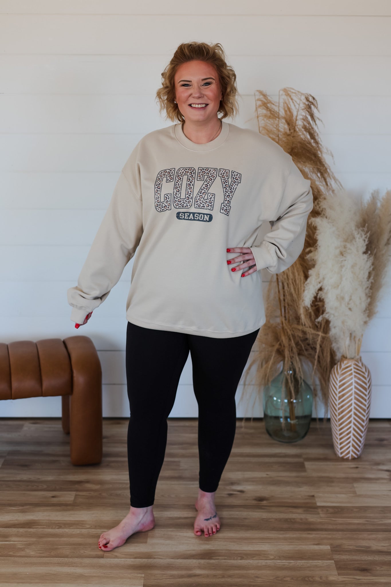 Perfect for those days when comfort is non-negotiable, this crewneck delivers all-day wearability without sacrificing style. The relaxed fit keeps you cozy through morning chaos and evening wind-downs alike. True to size for a classic fit, or size up if you're craving that extra roomy feel for maximum lounging potential. Your new go-to for looking effortlessly put-together while feeling like you're wrapped in a hug.