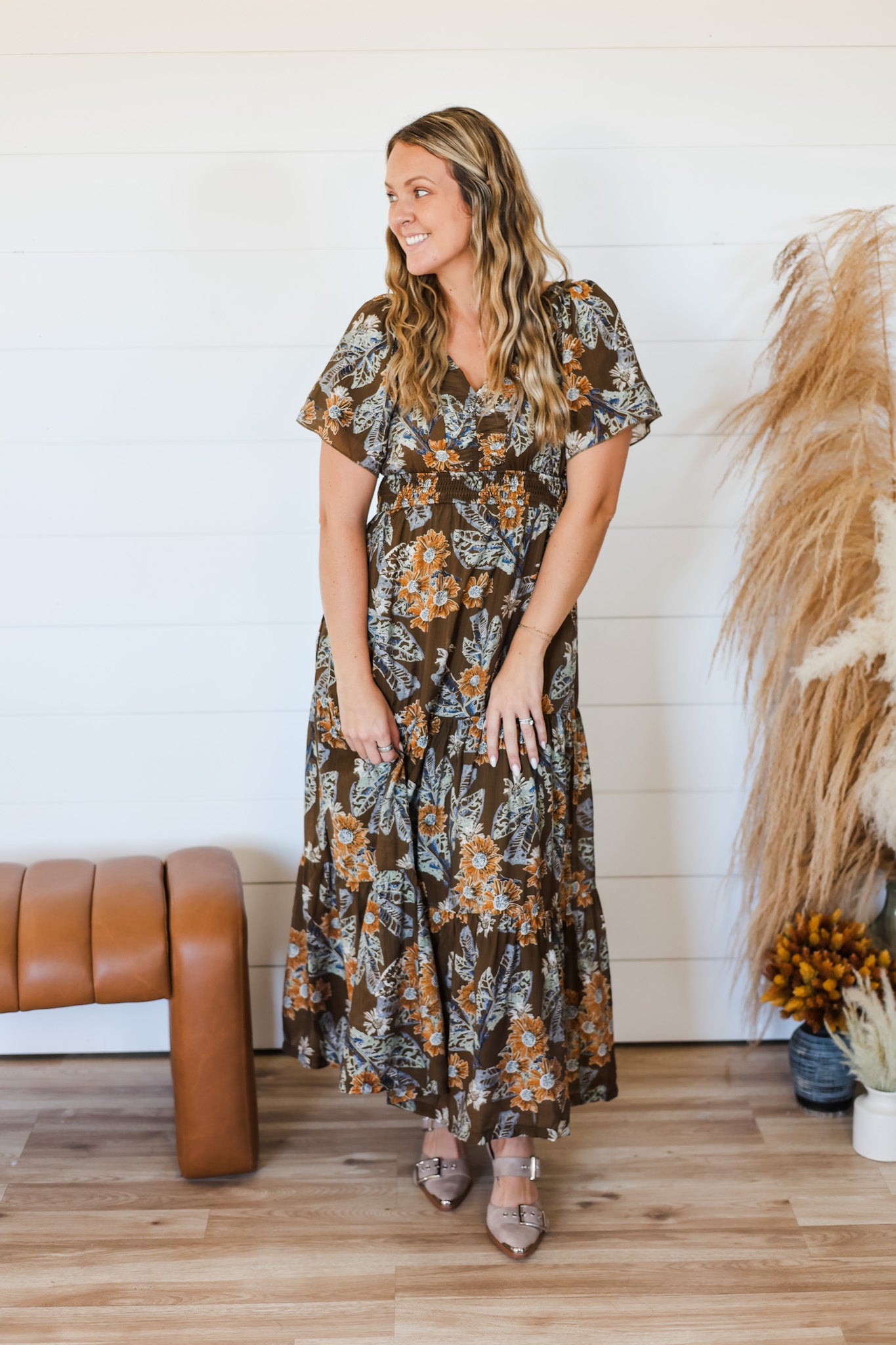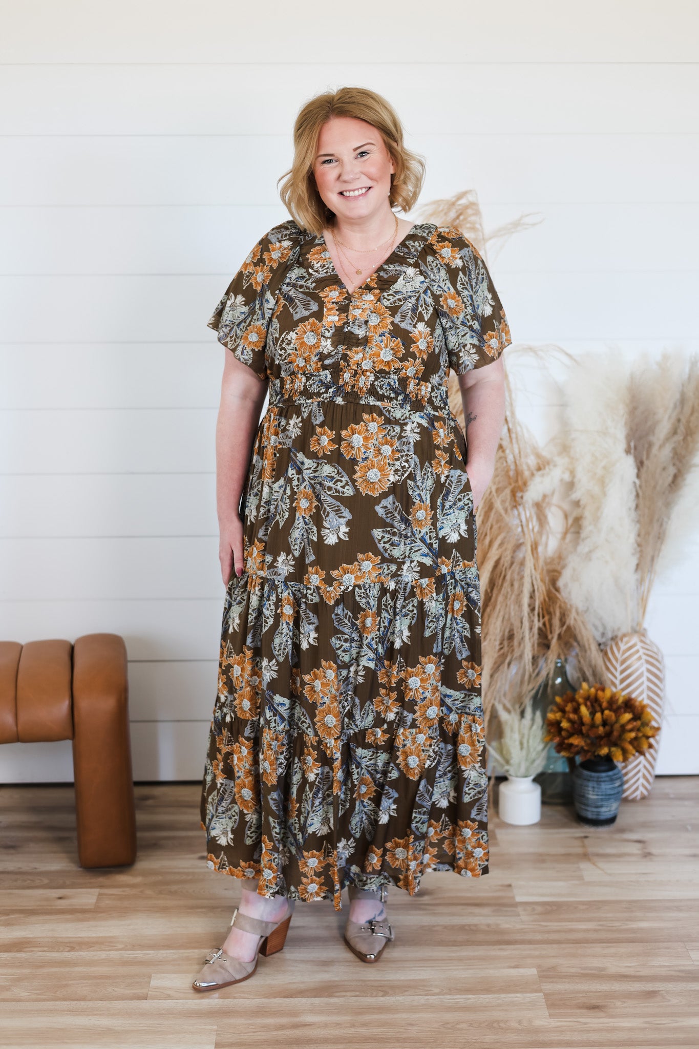 Embrace effortless charm in the Dancing With You Dress. This maxi length dress features a flattering elastic waist that moves with you, a playful V-neckline, and delicate flutter sleeves for a touch of whimsy. Finished with sweet ruffle details, it’s perfect for dancing the night away or a sunny day stroll.