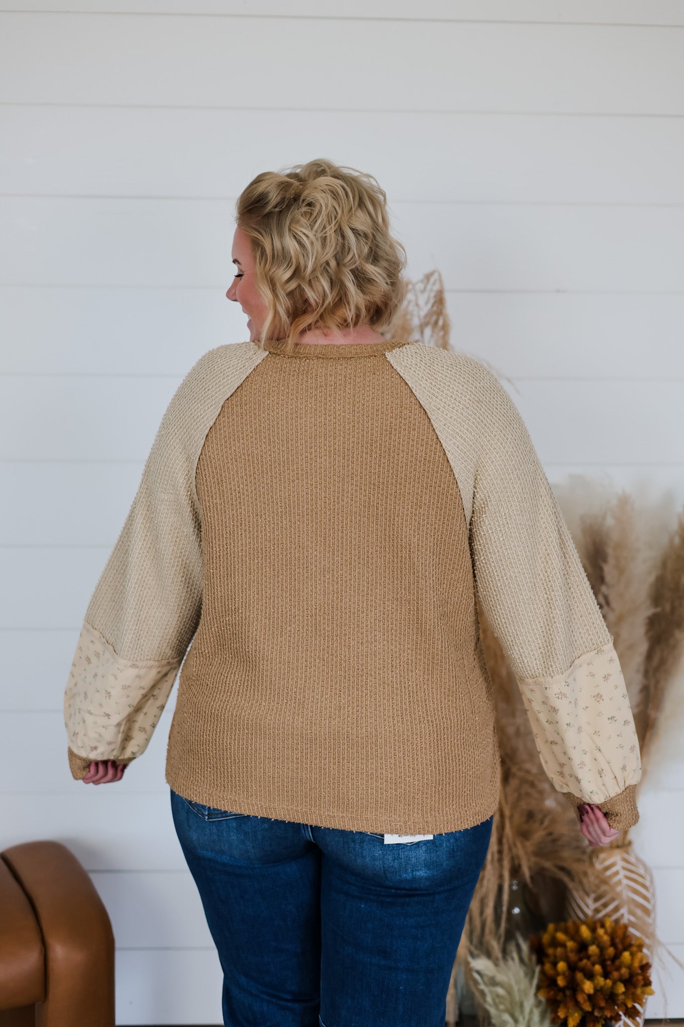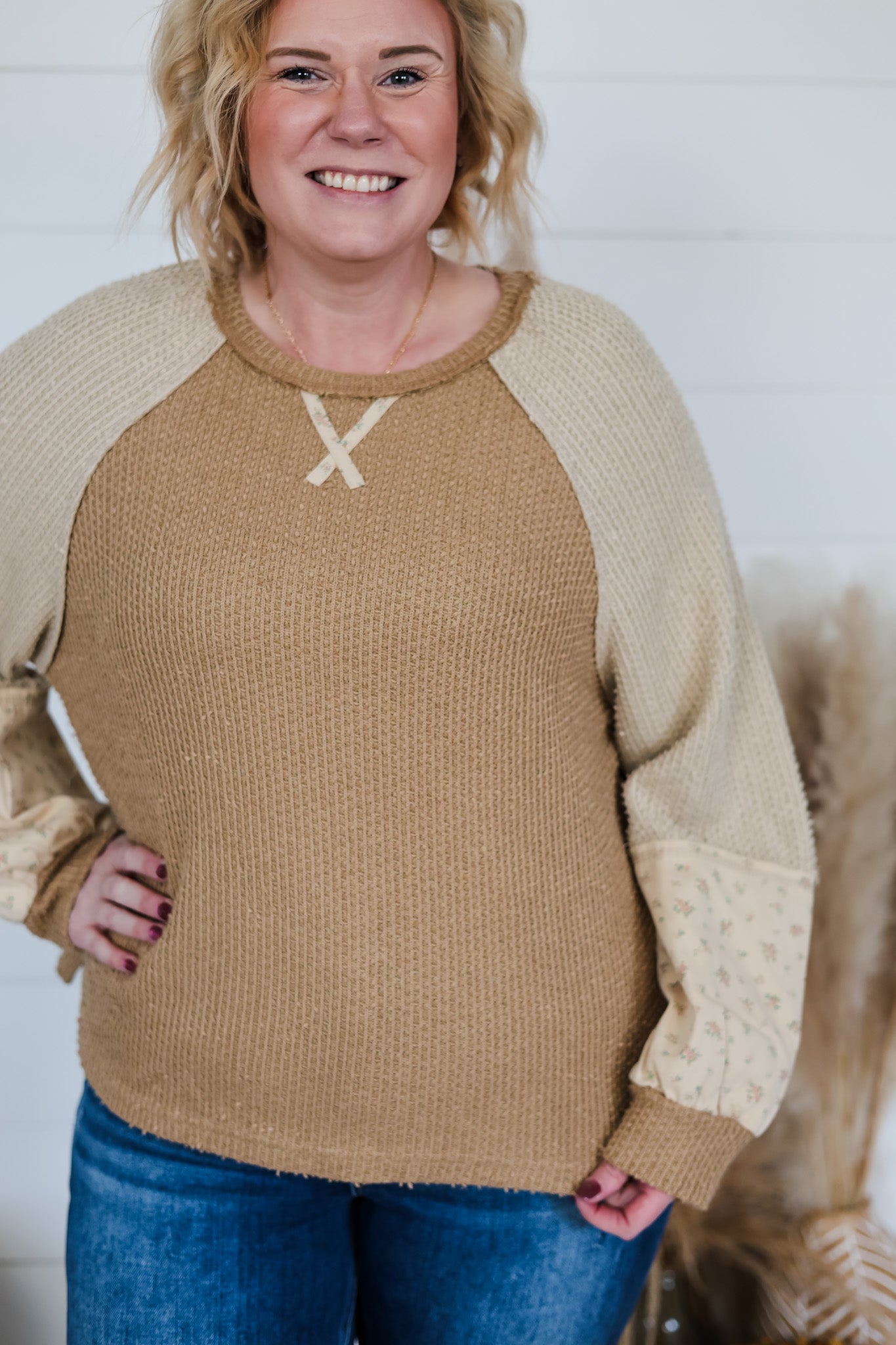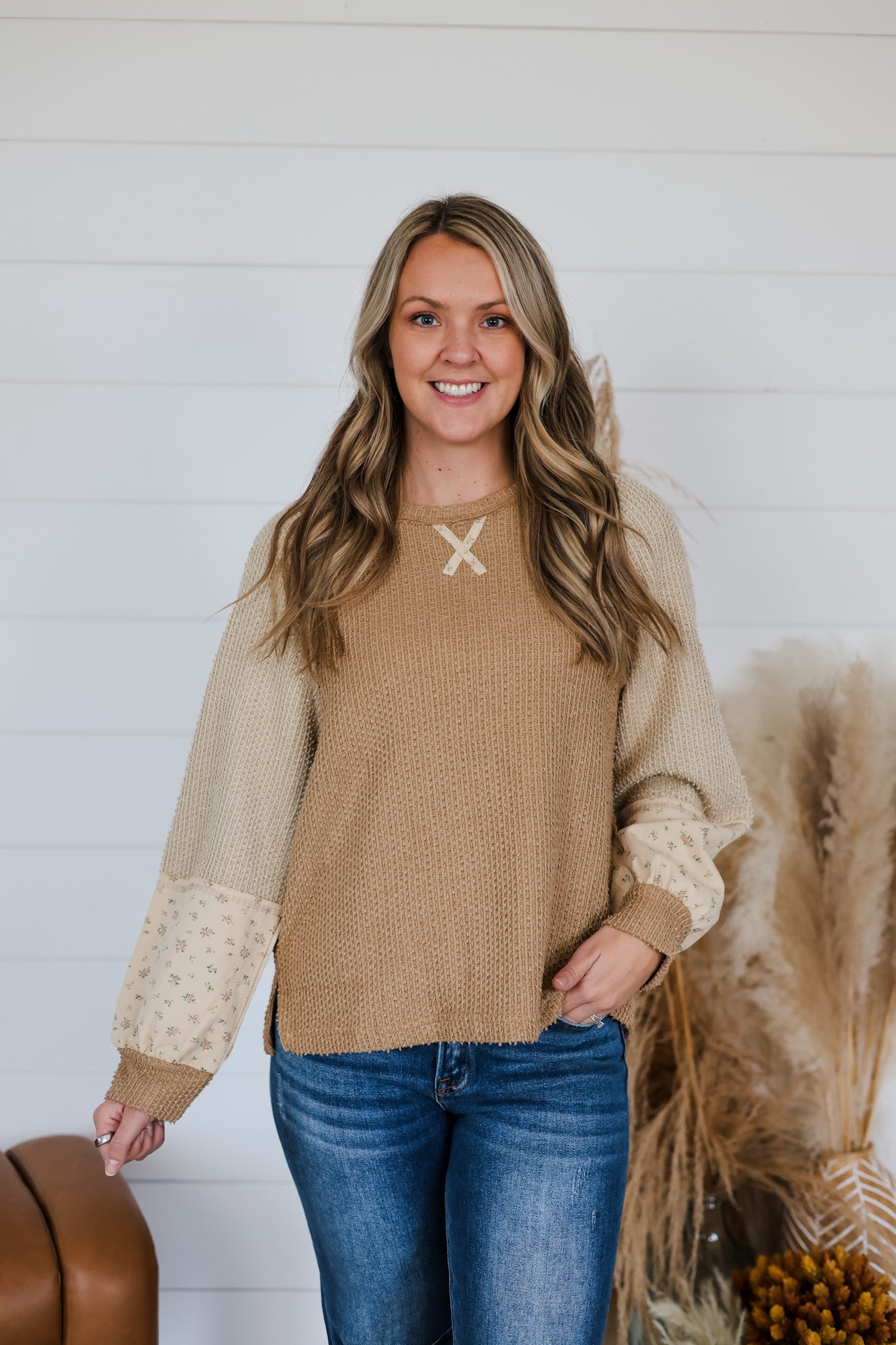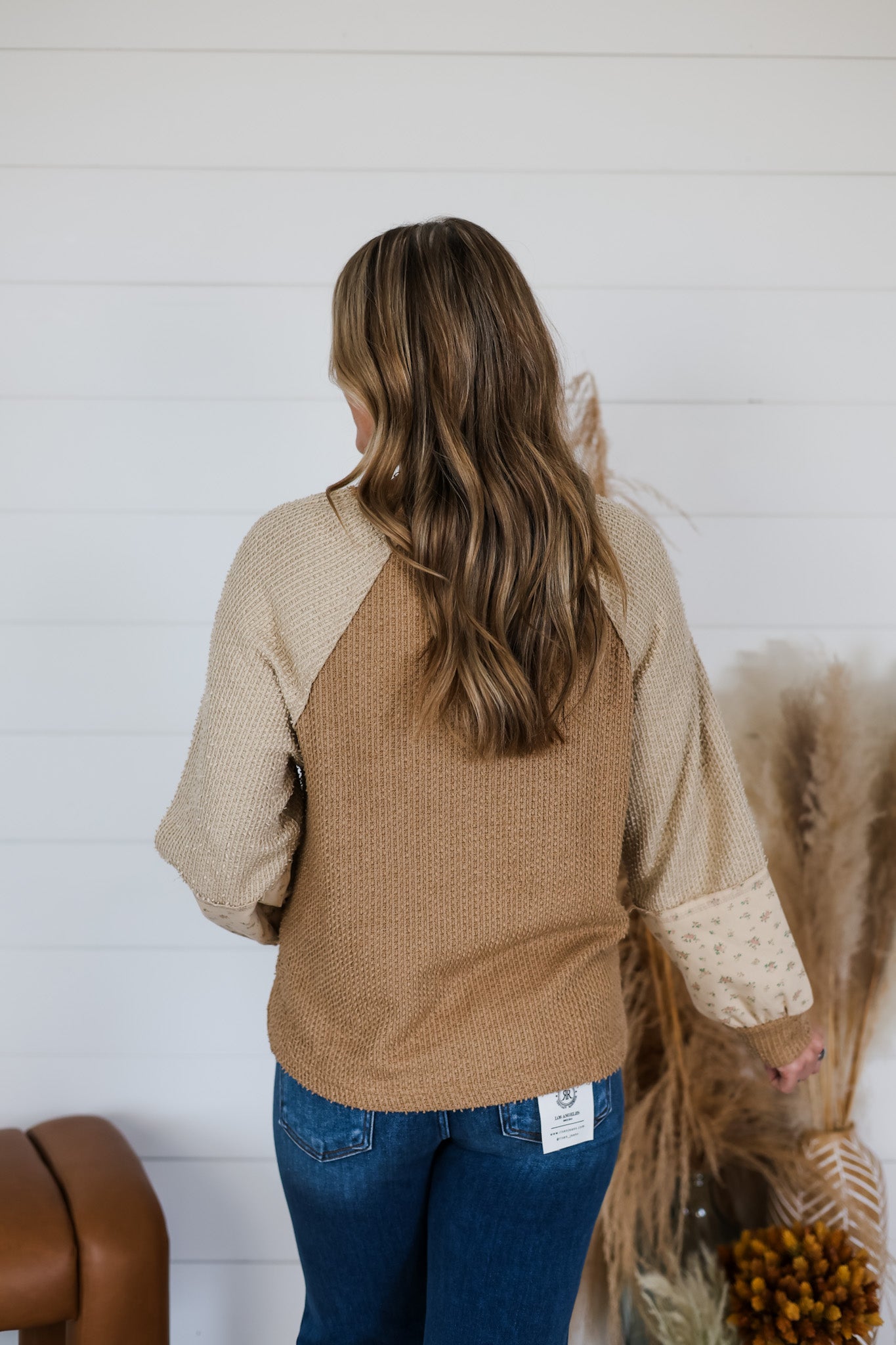 Throw on this playful raglan sleeve top and let the color-blocked design do the talking. Featuring a charming floral print, cozy textured knit fabric, and those effortlessly cool raw edge details, it's got personality for days. The long sleeves and round neckline keep things classic, while the side slits add just the right amount of sass. Perfect for casual days when you want to look put-together without trying too hard.