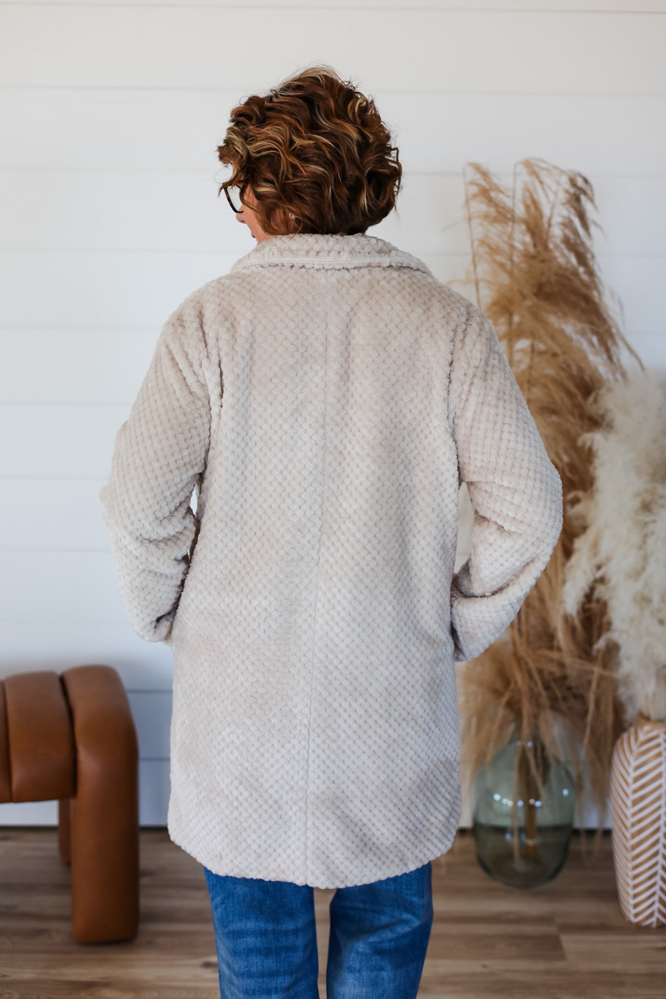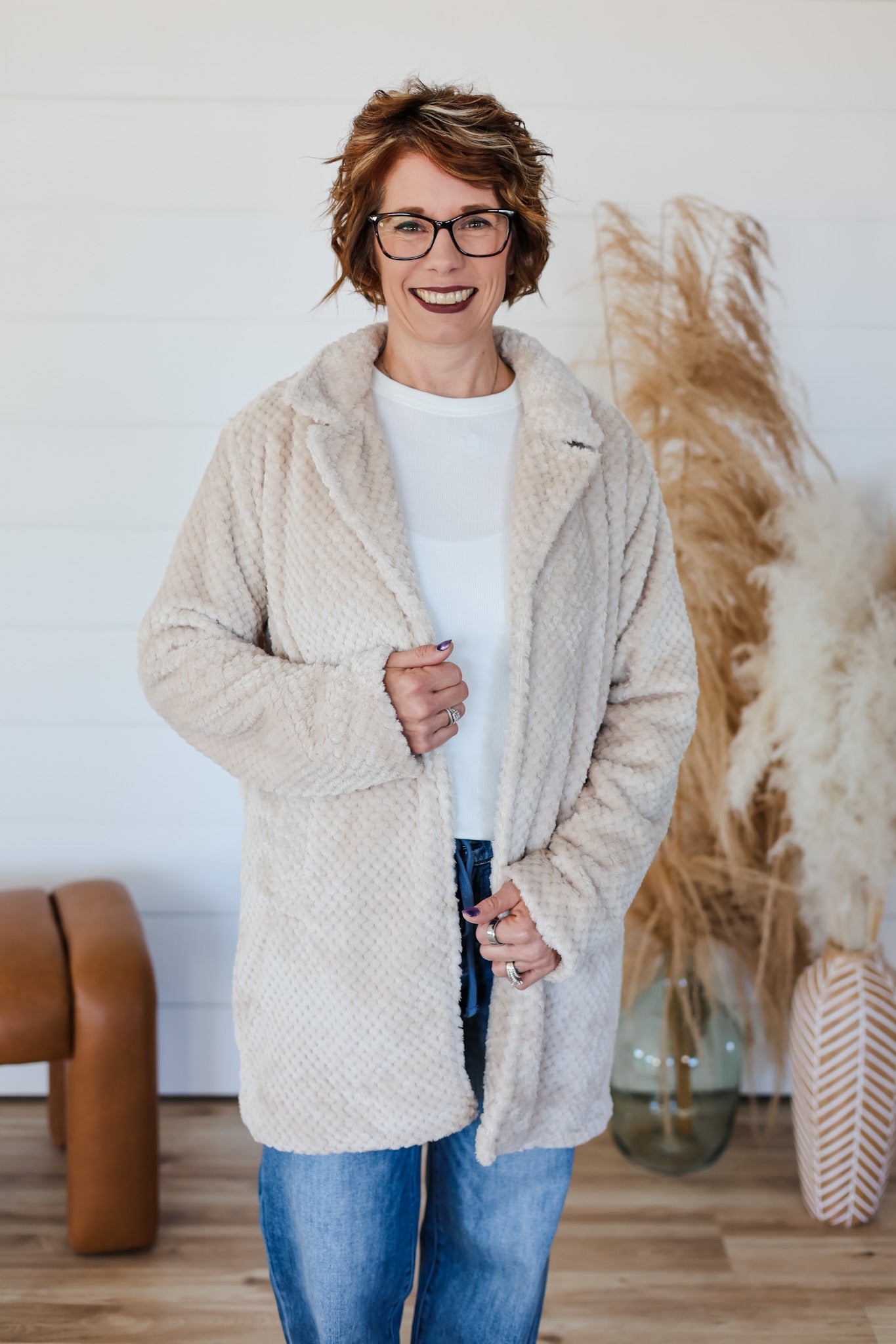 Wrap yourself in luxury that's cruelty-free with this textured faux fur drape coat. Featuring a sumptuous, touchable surface and an effortlessly chic silhouette, it's the perfect statement piece for elevating any outfit. The generous drape creates a flattering, flowing look that works whether you're heading to brunch or a night out. Soft, stylish, and wonderfully wearable—because looking fabulous should feel just as good as it looks.