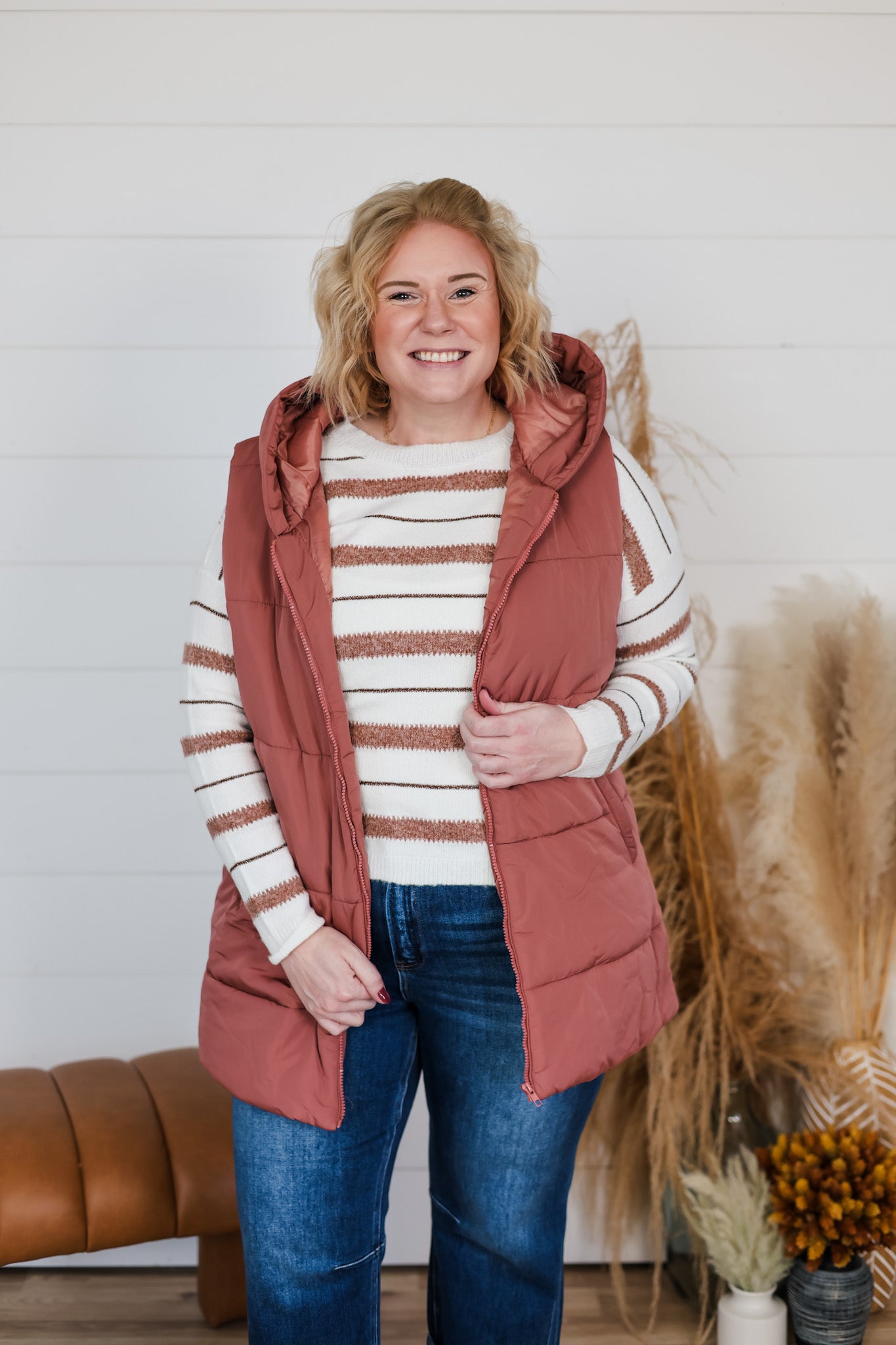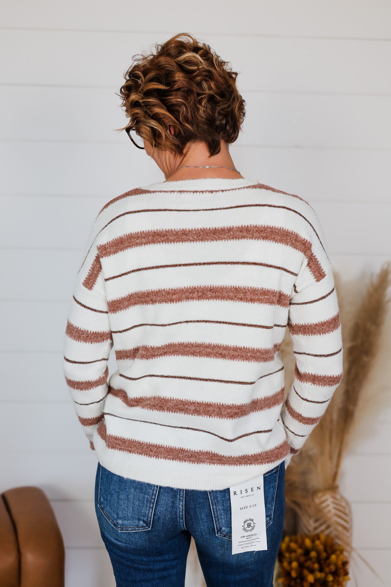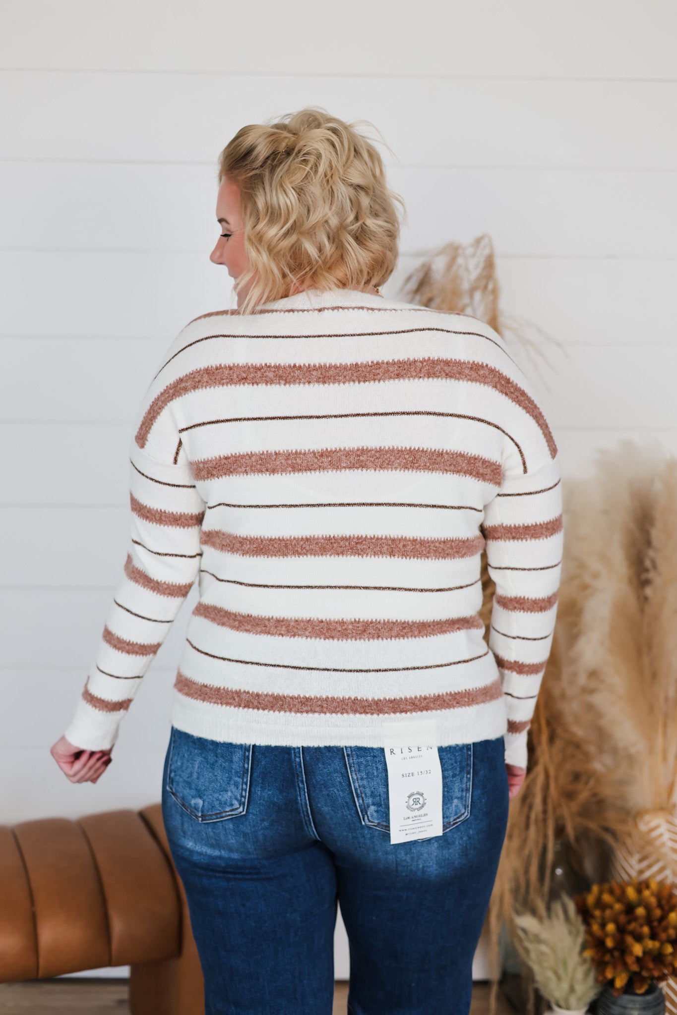 Effortlessly chic and endlessly versatile, the Down To It Top is your new go-to layer for every season. This crew neck pullover features classic stripes and long sleeves that work overtime—dress it up with tailored trousers or keep it casual with your favorite jeans. Cozy enough for lounging, polished enough for the office, this striped sweater proves that timeless style never goes out of style. Perfect for building a wardrobe that actually works as hard as you do.