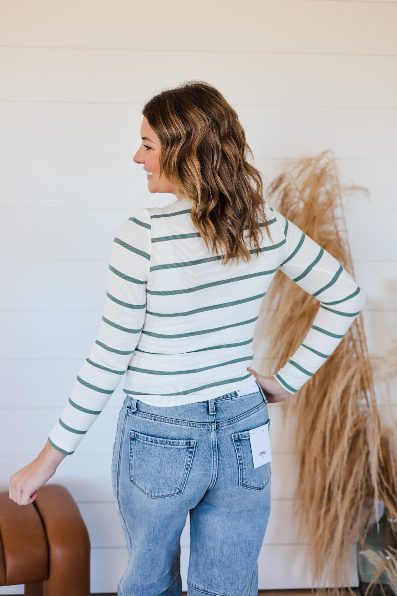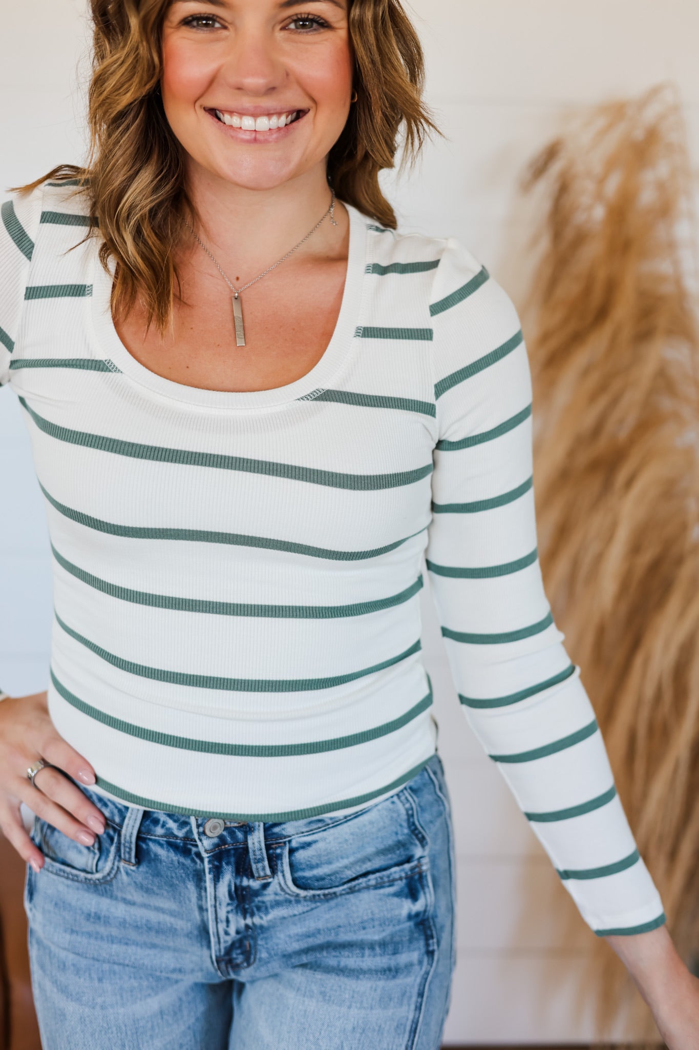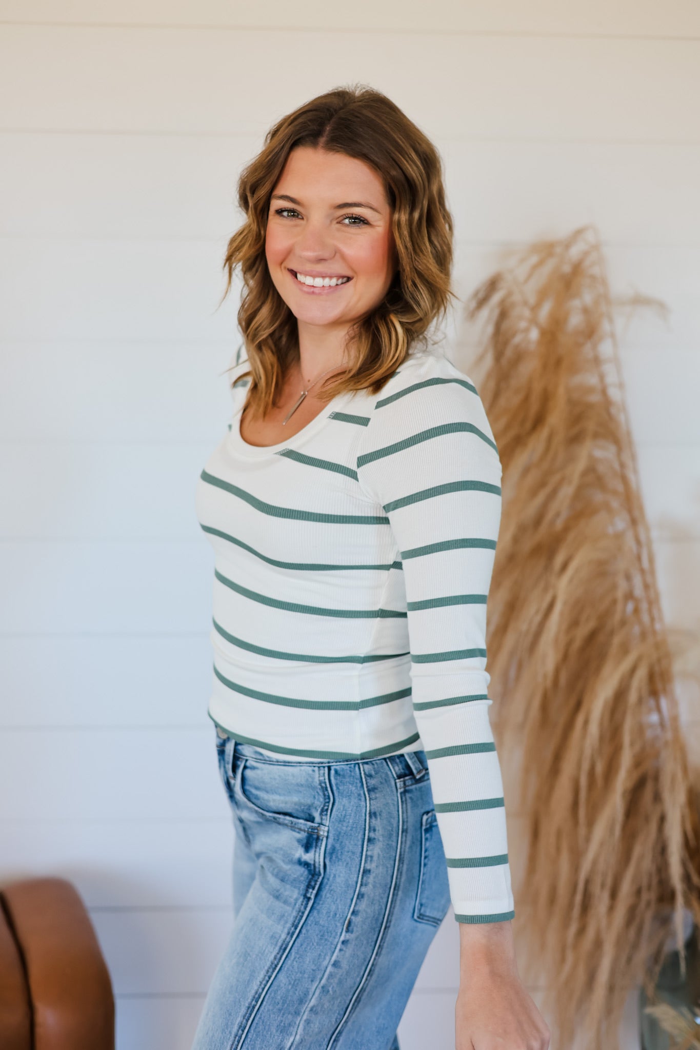 Slip into comfort with the End Of The Day Top—your new go-to for effortless style. This classic ribbed striped tee features a flattering scoop neck and long sleeves in a super soft, stretchy fabric that moves with you. Perfect for lounging, running errands, or layering, it's the versatile piece every wardrobe needs. Simple, cozy, and always in rotation.
