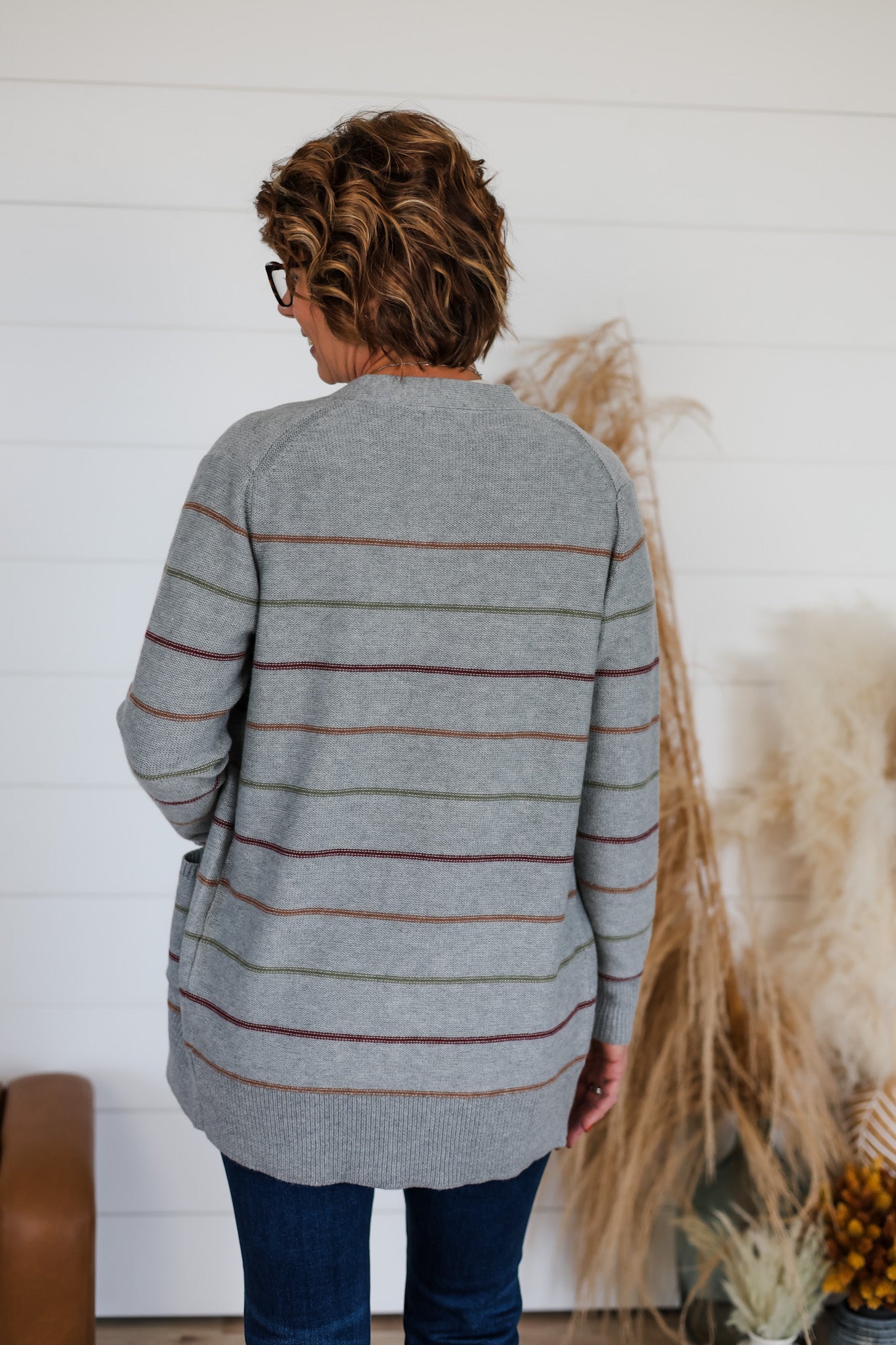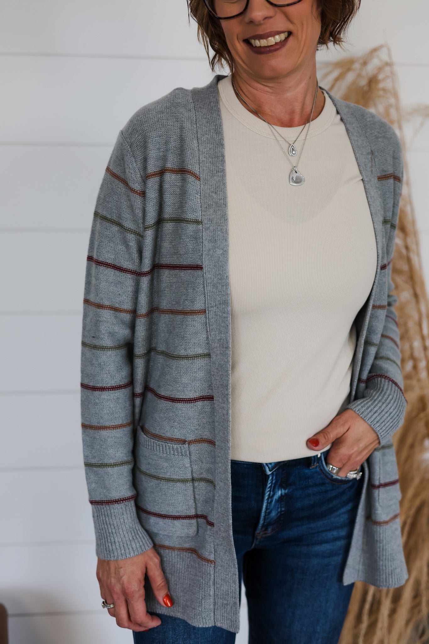 The Eyes Wide Open Cardigan is your new go-to layer for effortless style! This classic knit features a charming striped pattern that pairs with everything in your closet. Slip it on over your favorite tee or dress it up—the relaxed fit and below-the-hip length keep things comfy and flattering. Ribbed hems and cuffs lock in warmth, while handy patched pockets add both function and flair. Perfect for spring strolls, fall adventures, or cozy winter days, this open-front essential is the wardrobe staple you didn't know you needed. Long sleeves, endless possibilities!