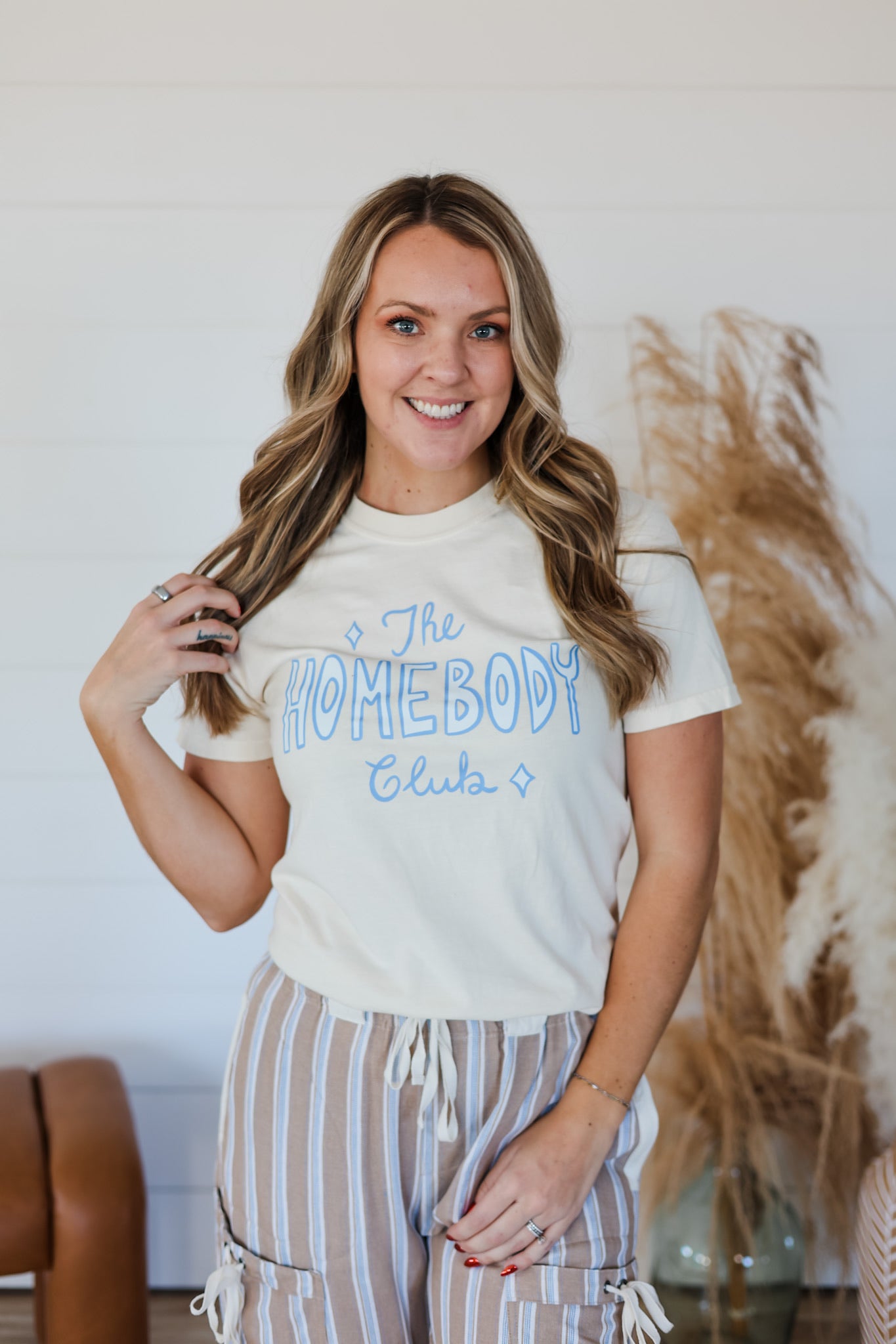 Join the club with this ultra-soft Comfort Colors tee that's basically a membership card to all-day coziness. Designed for those who believe comfort is non-negotiable, this tee features a relaxed fit and buttery-soft fabric that only gets better with every wash. Whether you're lounging at home, running errands, or just vibing with your crew, this top delivers the kind of comfort that makes you never want to change. Homebody approved and proudly worn.