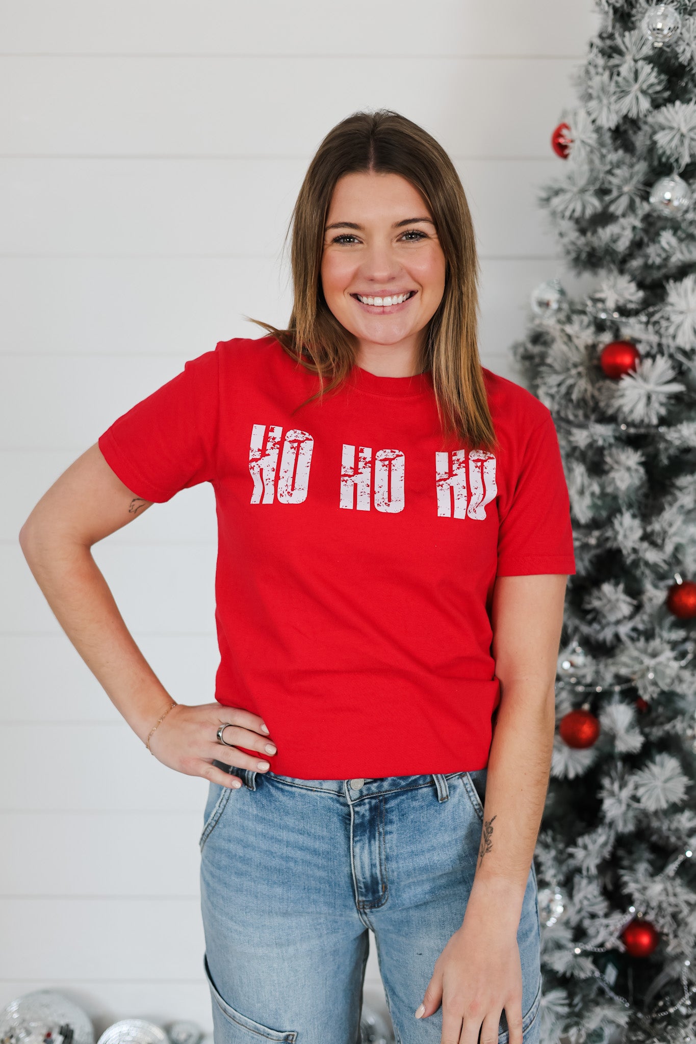 Spread holiday cheer with this festive graphic tee featuring cheerful "Fa La La" lettering that captures the spirit of the season. Perfect for casual celebrations, family gatherings, or anyone ready to embrace the joy of the holidays. The playful design brings instant festive flair to your everyday wardrobe, making it an ideal choice for December festivities or gift-giving. Comfortable and fun, this top lets your holiday spirit shine bright.