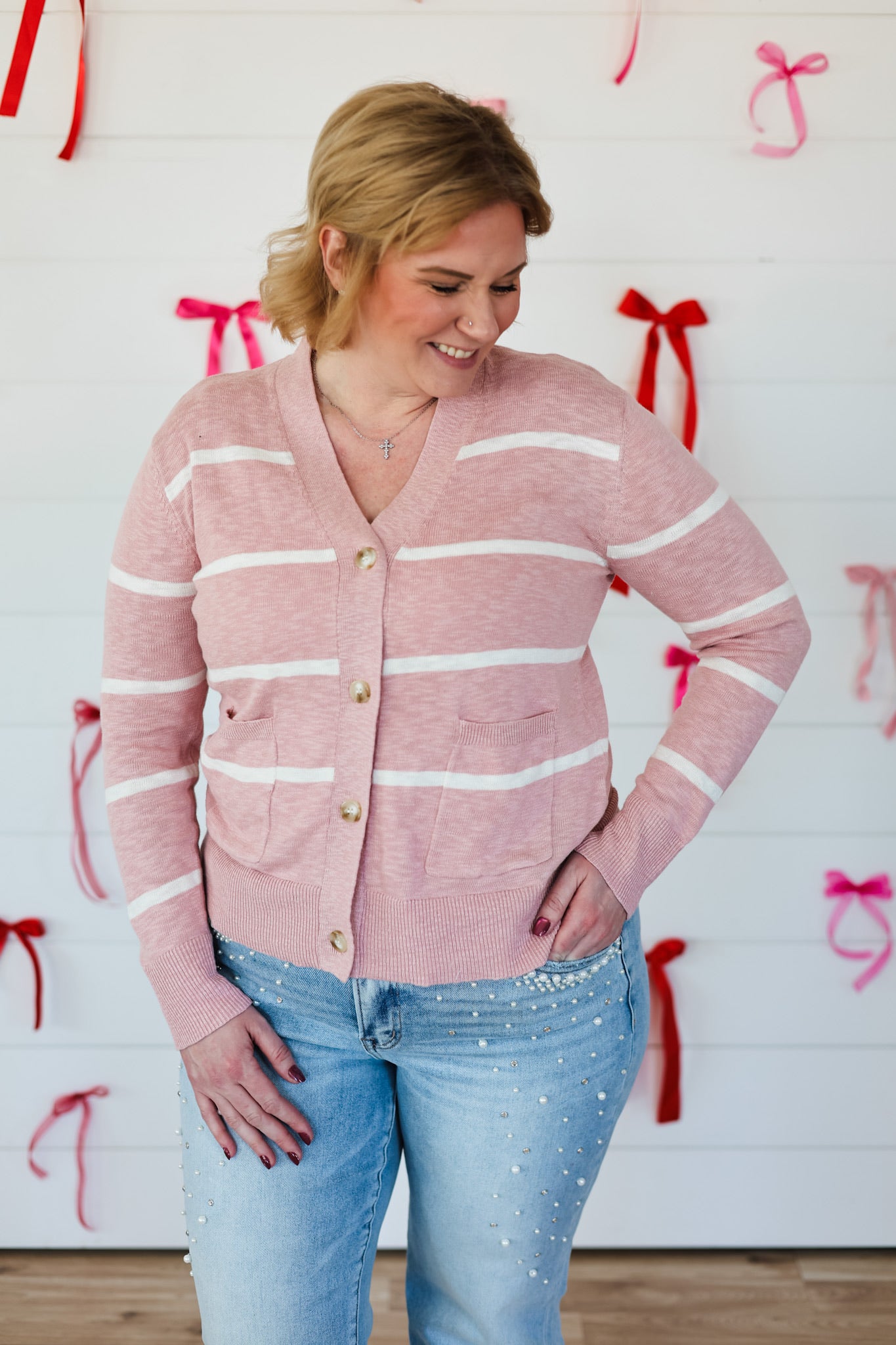 Throw on this oversized v-neck cardigan and instantly elevate your vibe. Crafted from lightweight stripe fabric, it's the perfect layer for those "I'm put-together but make it effortless" moments. Drape it over your favorite tee, cinch it with a belt, or leave it loose—this versatile piece does it all. Comfortable enough for everyday wear, stylish enough to turn heads. Your new go-to for looking casually chic.