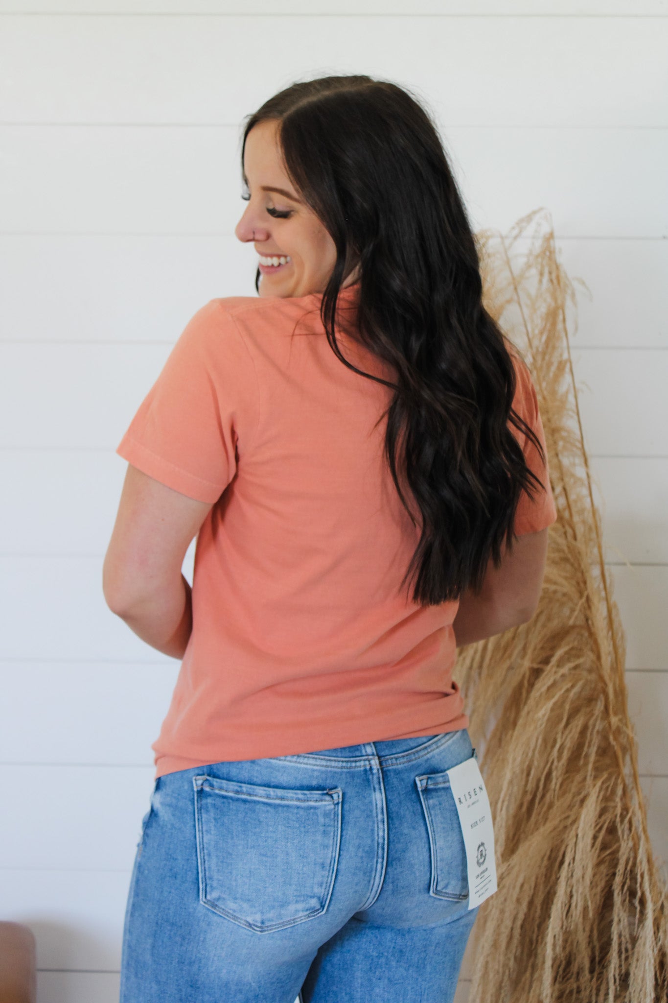- Emma is wearing her regular size SMALL.