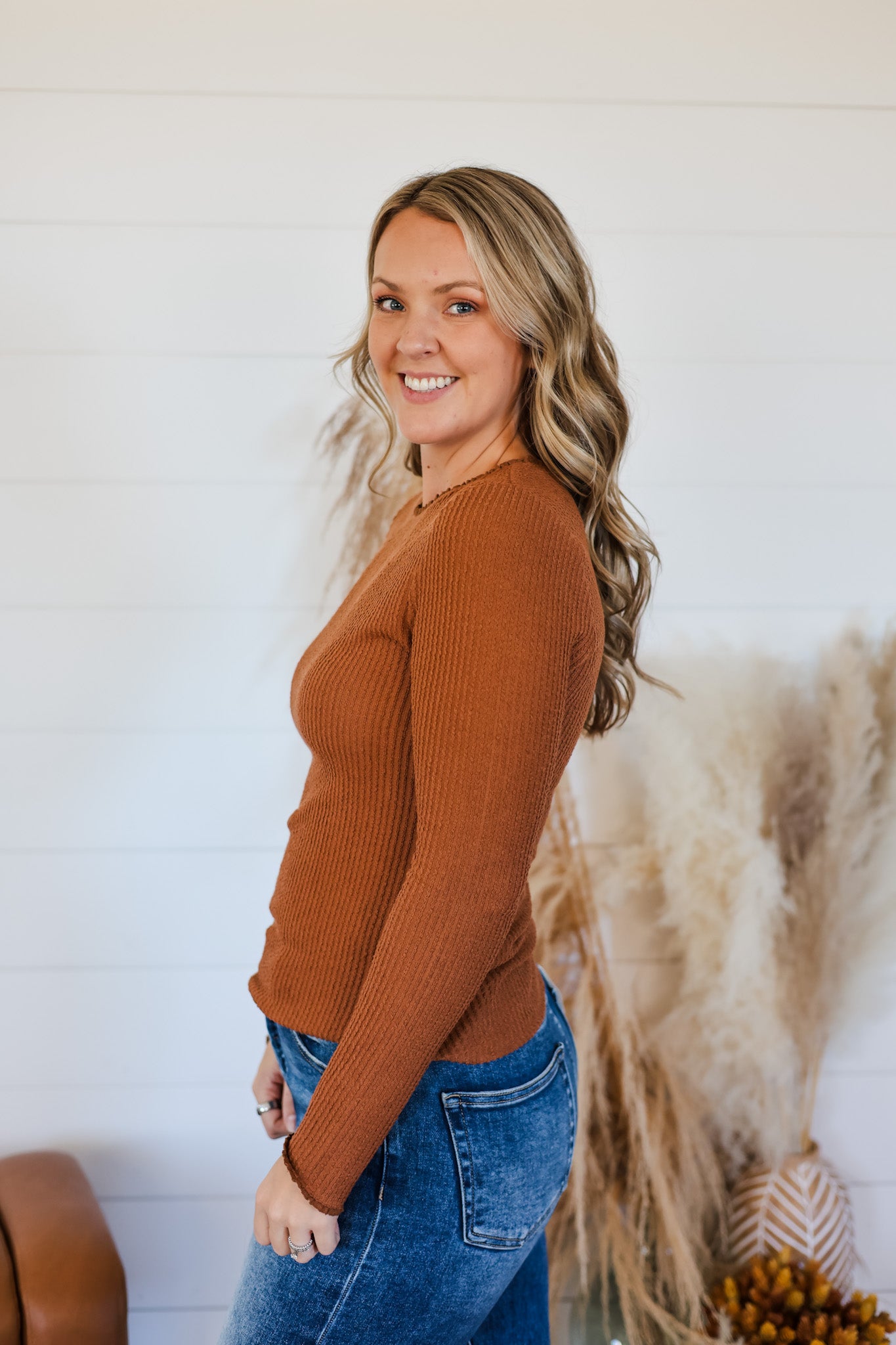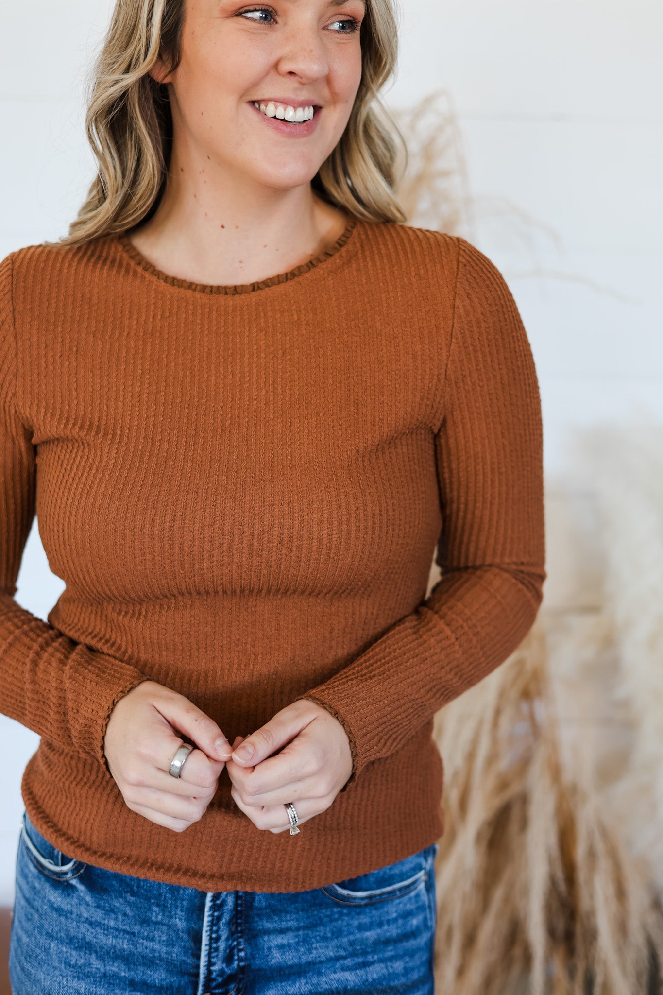 Meet the Fill Your Space Top—your new go-to for effortless style! This playful long-sleeve beauty features a textured ribbed knit that adds dimension and visual interest, while delicate lace trim at the neckline brings a touch of feminine charm. The classic round neck keeps things versatile, making it perfect for layering or wearing solo. Whether you're dressing up for a night out or keeping it casual, this top fills every moment with comfort and confidence.
