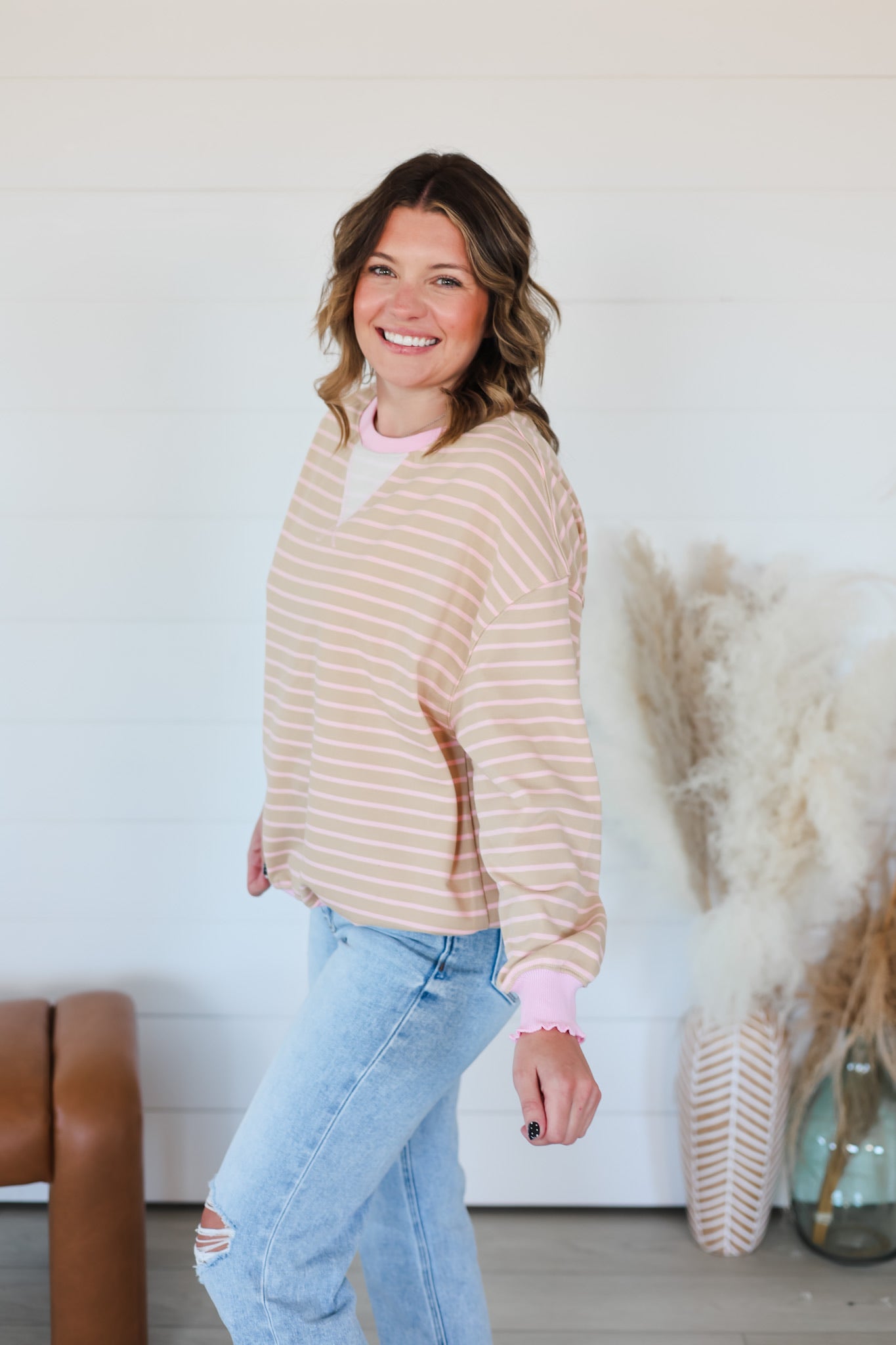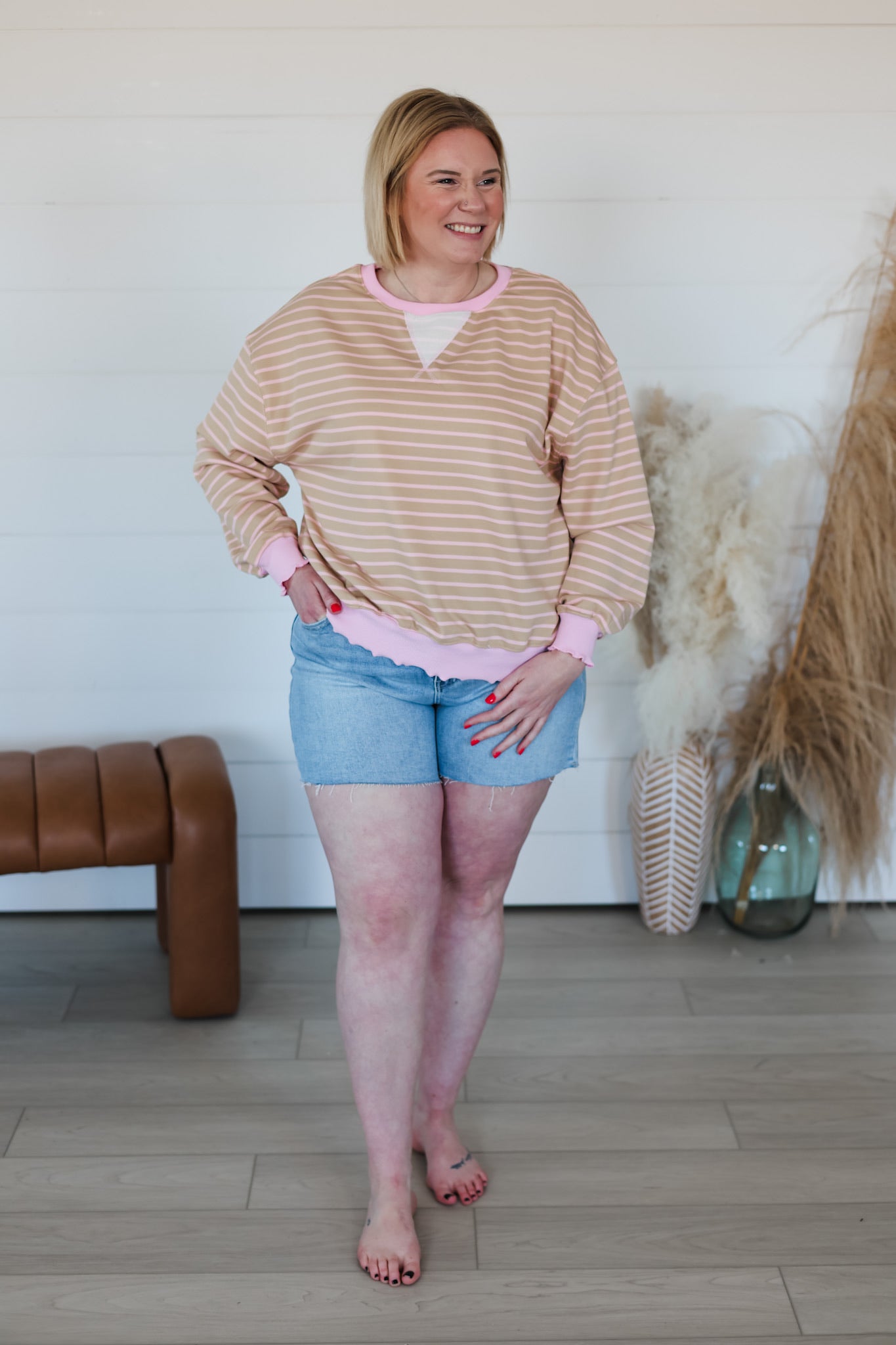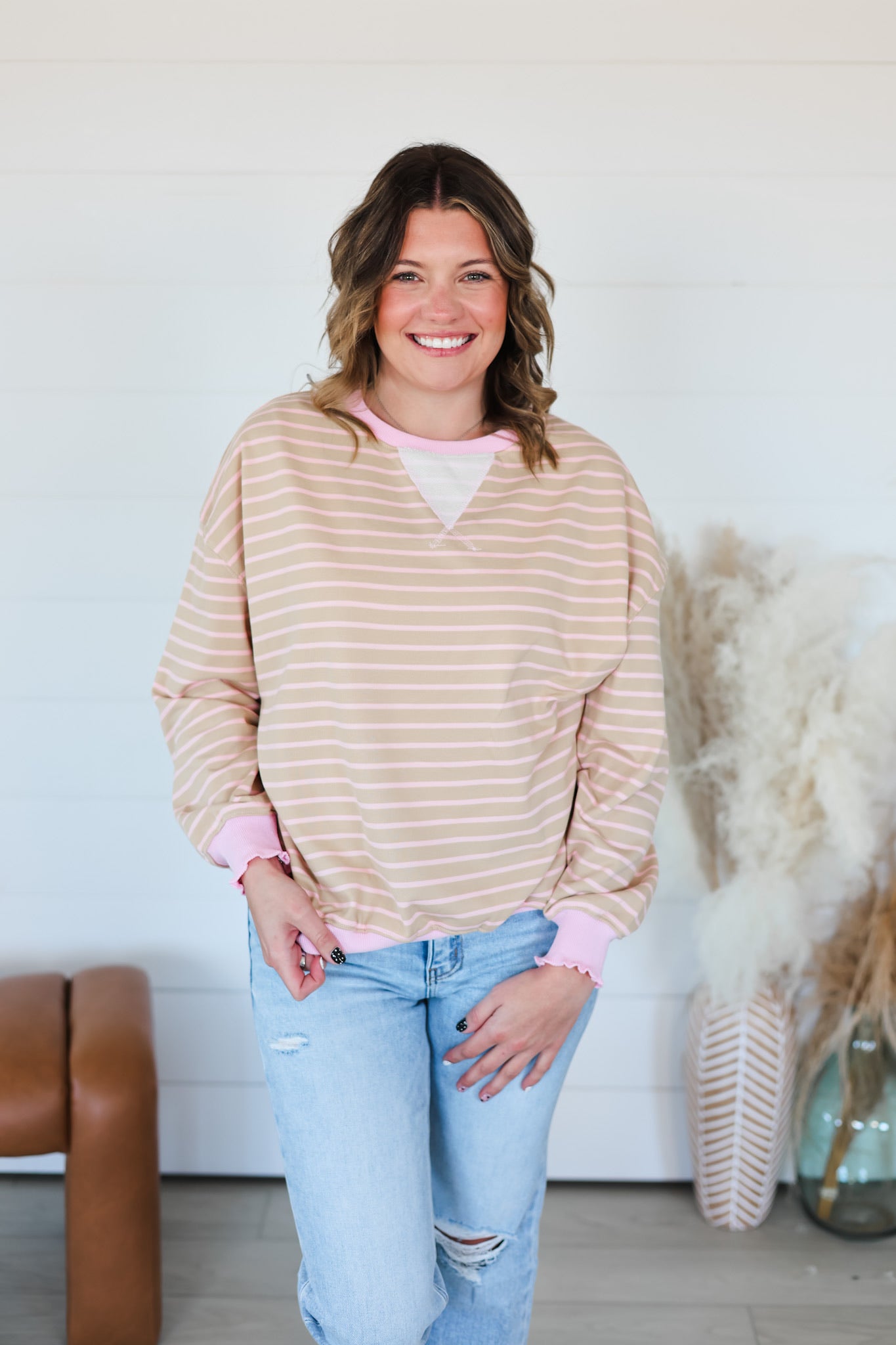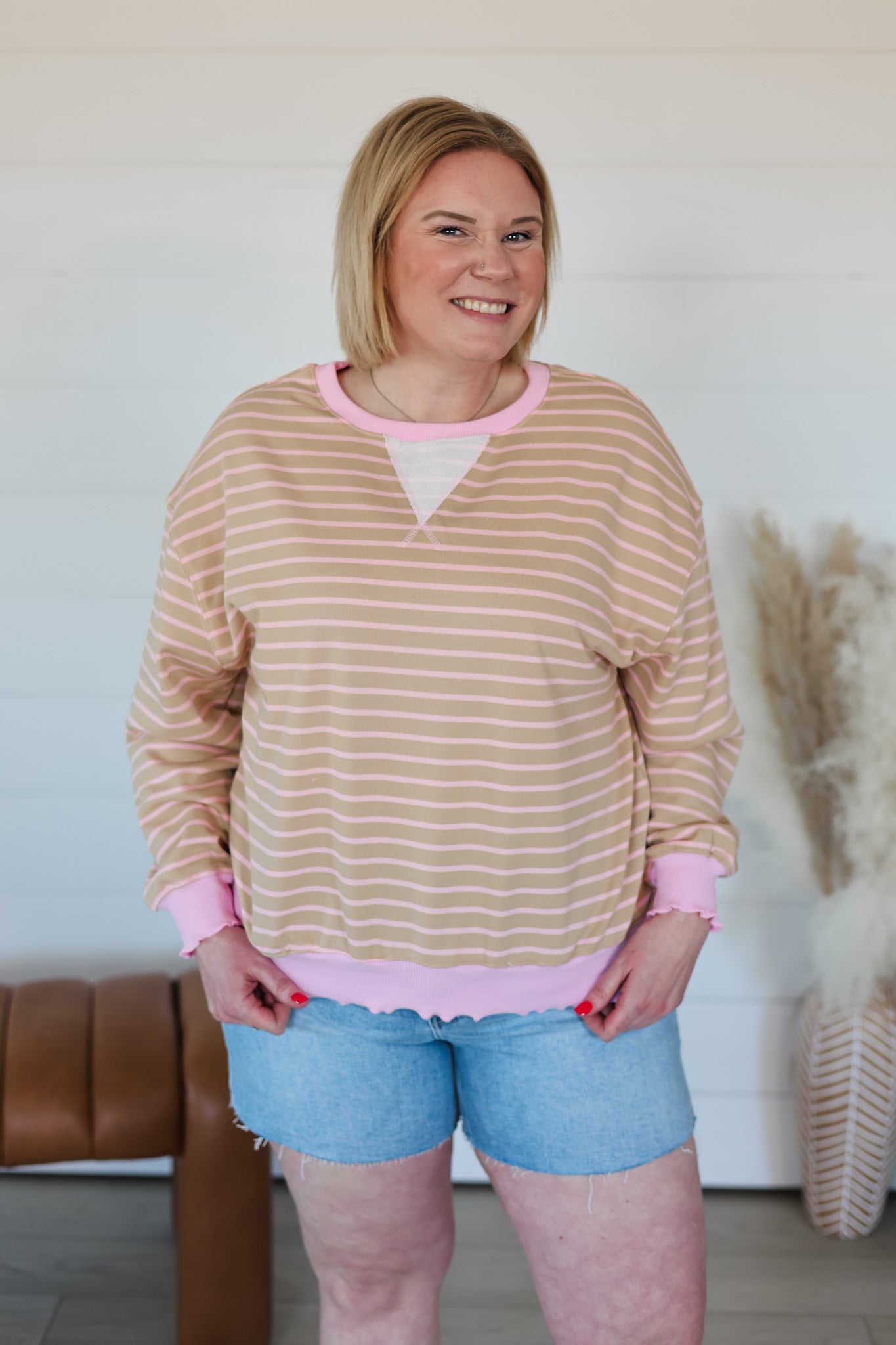 Meet your new favorite layering piece—a striped knit long sleeve top that refuses to blend in. The charming cabbage hem detail adds a delightful twist that catches the eye and sparks joy. Soft, cozy knit fabric wraps you in comfort while the classic stripes keep things effortlessly chic. Whether you're dressing it up or keeping it casual, this top brings a dash of personality to every outfit. Style it your way and watch heads turn.