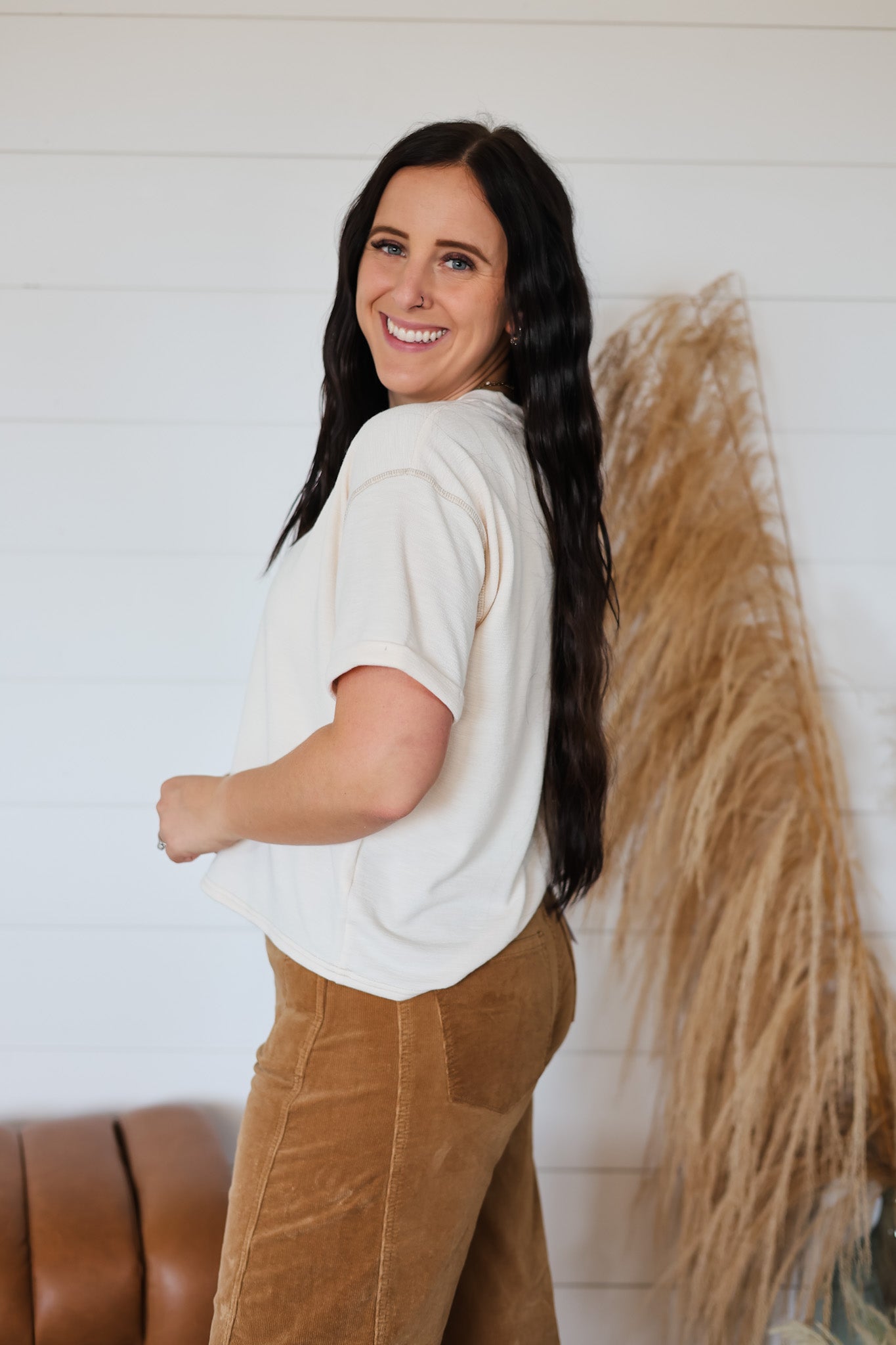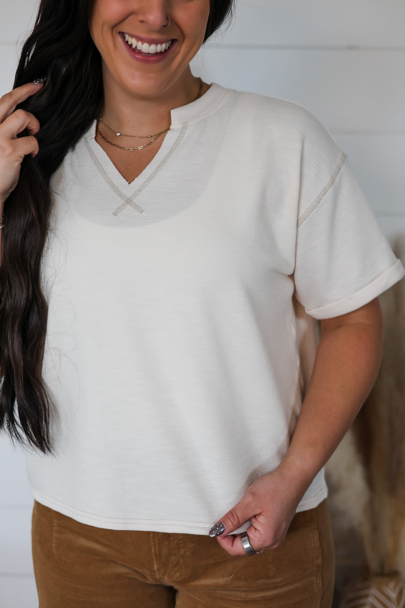 Embrace cozy vibes with the Find Your People Top, featuring playful contrast stitching that adds an unexpected pop of style. Its relaxed drop shoulder silhouette and cuffed sleeves create an effortlessly cool look, perfect for laid-back days or casual hangouts. Soft knit fabric keeps you comfy while making a fun fashion statement wherever you go.