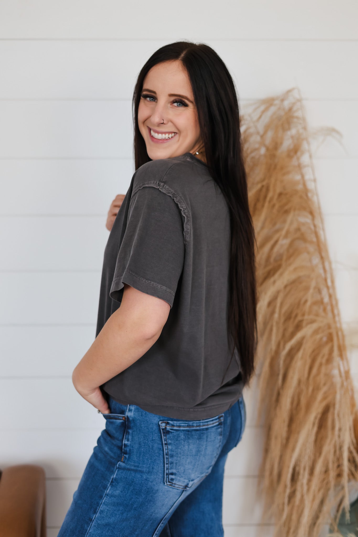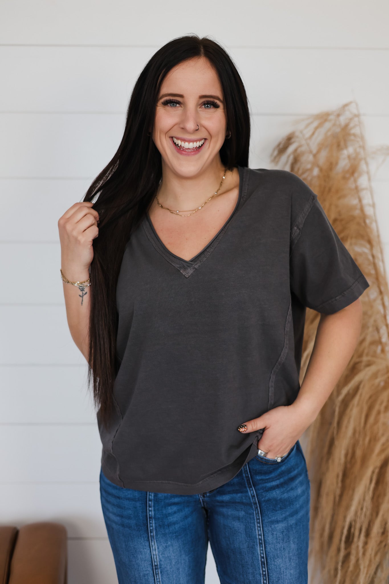 Effortlessly chic and undeniably comfy, the Forever In Love Top is your new wardrobe essential. This washed raw edge V-neck features a relaxed short sleeve silhouette that's perfect for layering or wearing solo. The soft knit fabric moves with you, while those trendy raw edges add just the right amount of edge to keep things interesting. Dress it up with tailored trousers or keep it casual with your favorite jeans—this versatile piece does it all.