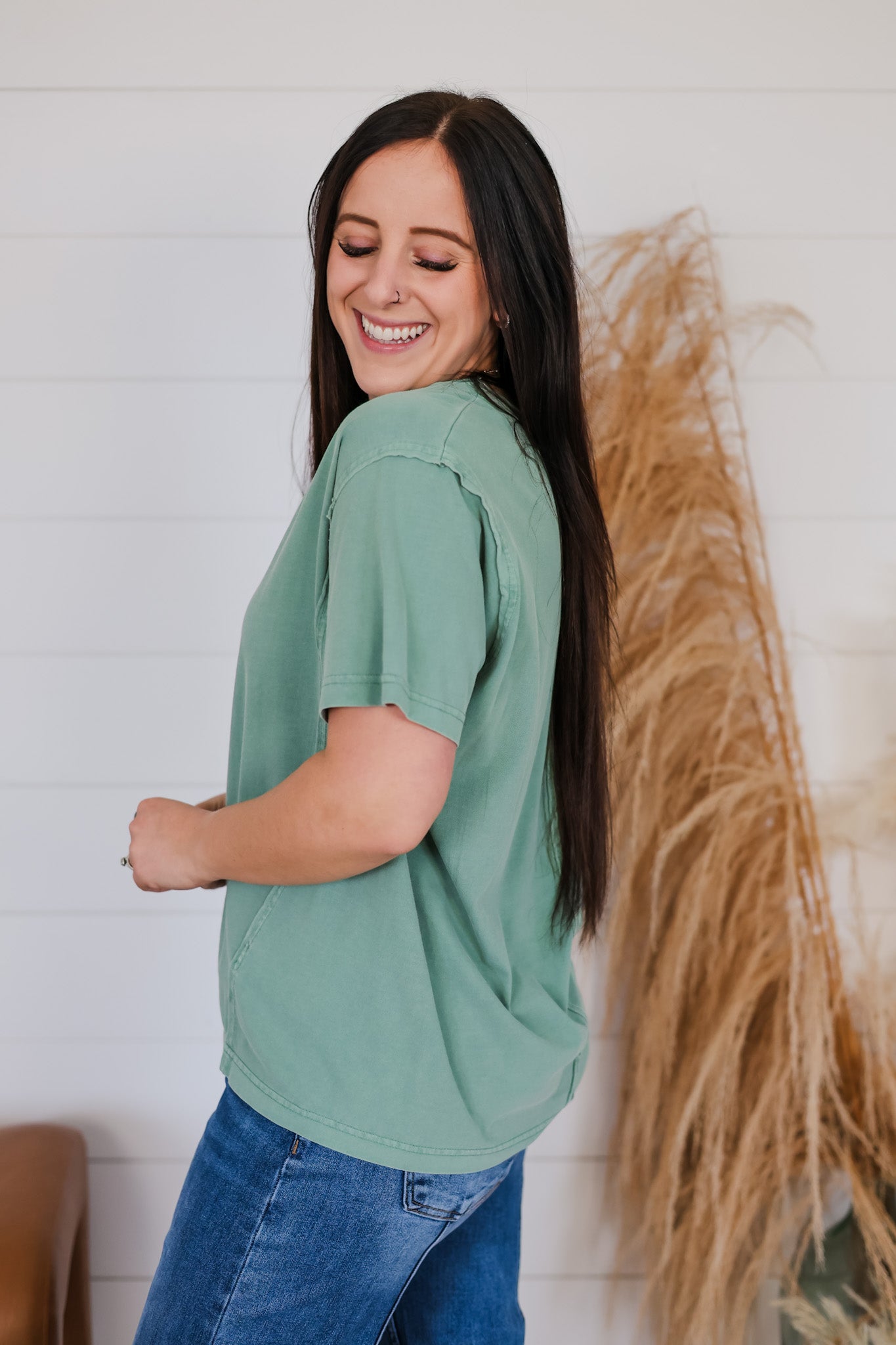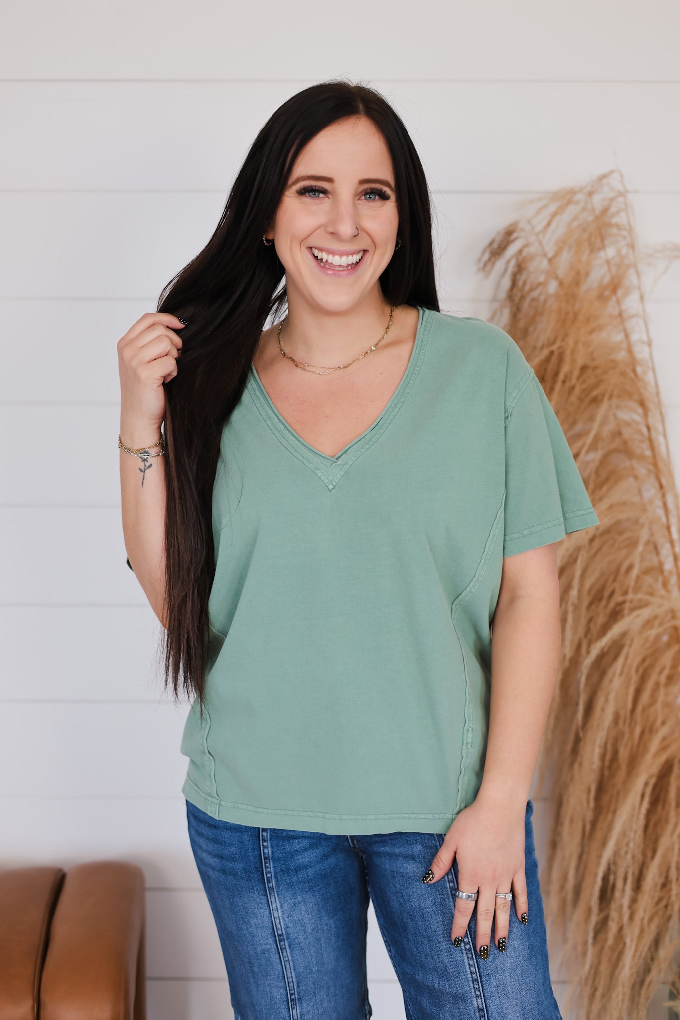 Effortlessly chic and undeniably comfy, the Forever In Love Top is your new wardrobe essential. This washed raw edge V-neck features a relaxed short sleeve silhouette that's perfect for layering or wearing solo. The soft knit fabric moves with you, while those trendy raw edges add just the right amount of edge to keep things interesting. Dress it up with tailored trousers or keep it casual with your favorite jeans—this versatile piece does it all.