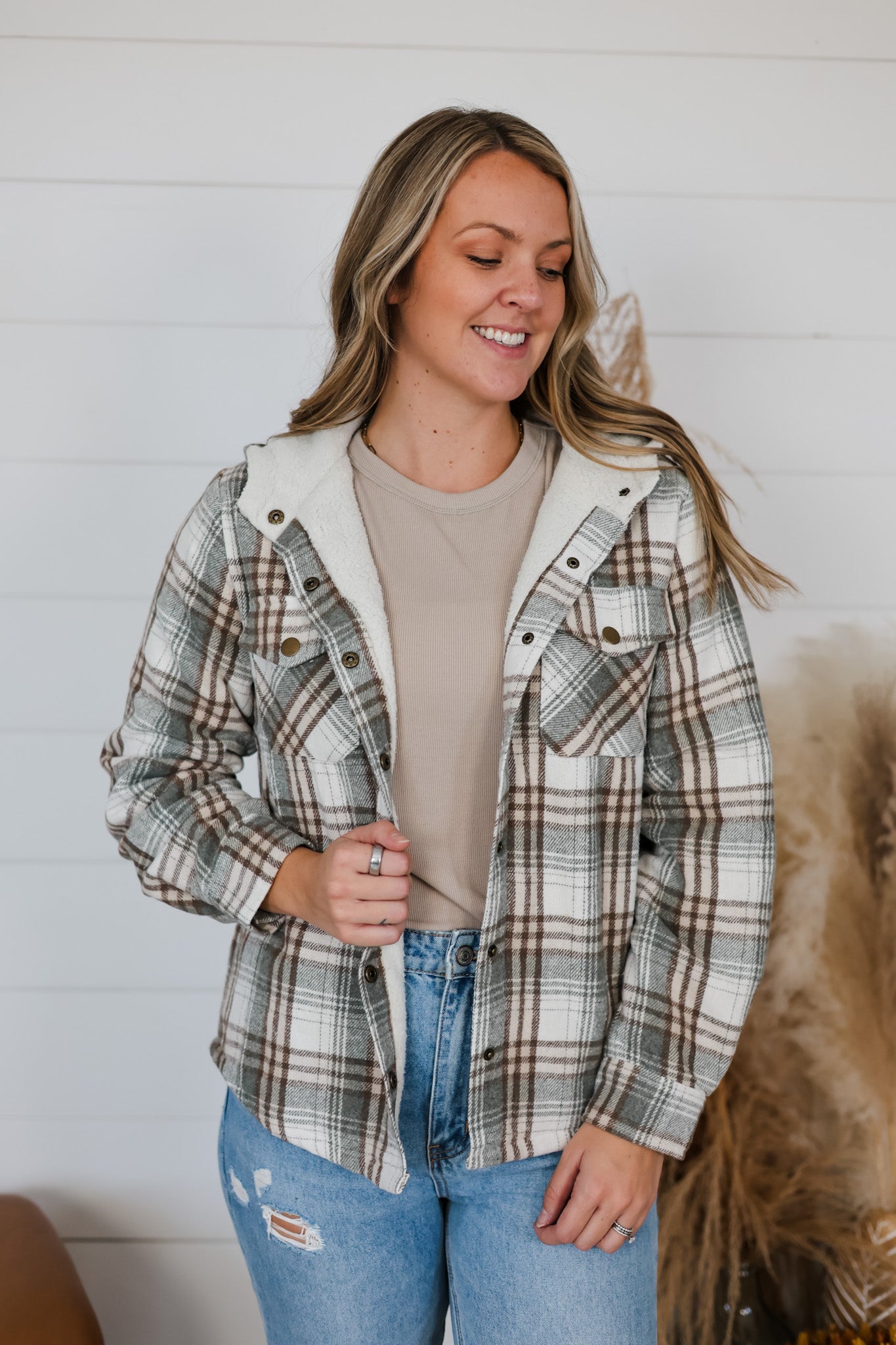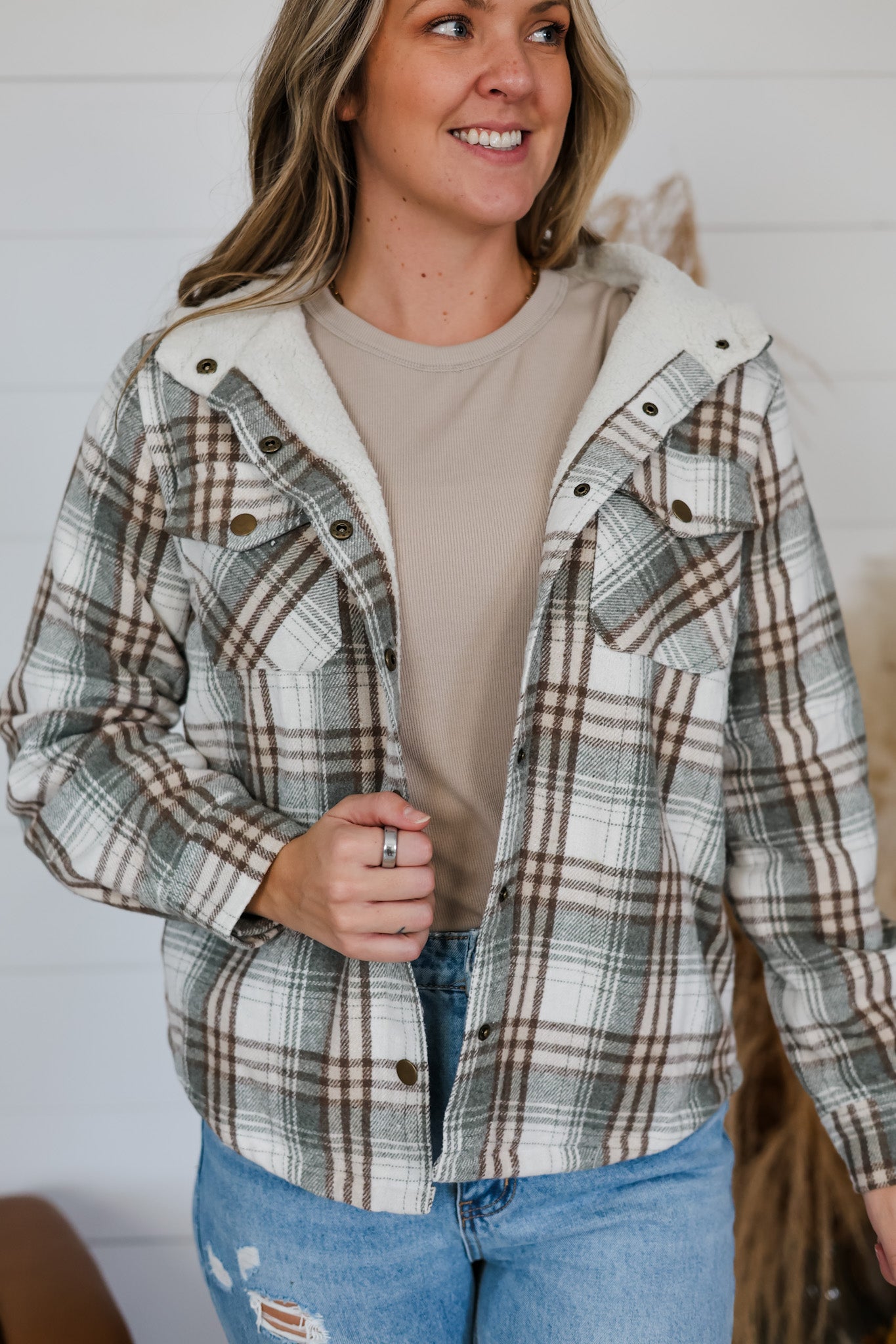 Layer up in style with this cozy sherpa-lined jacket that's ready for anything. Featuring convenient snap buttons down the front and practical chest pockets, it's the perfect throw-on piece for casual adventures. The soft sherpa lining keeps you warm without the bulk, while long sleeves provide extra coverage. Whether you're heading out for coffee or a weekend getaway, this versatile jacket pairs effortlessly with your favorite outfits and brings that "just right" comfort factor to every occasion.