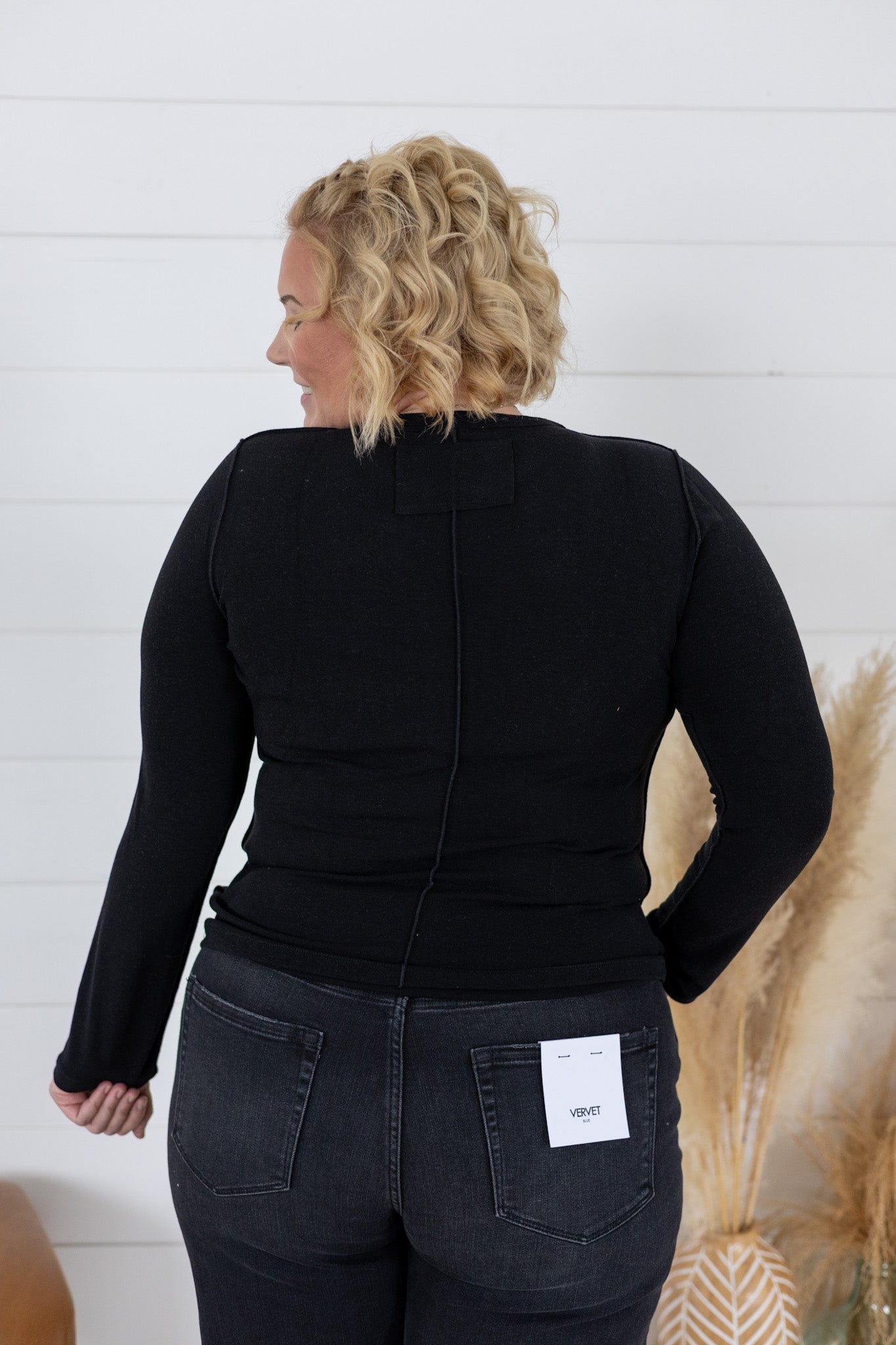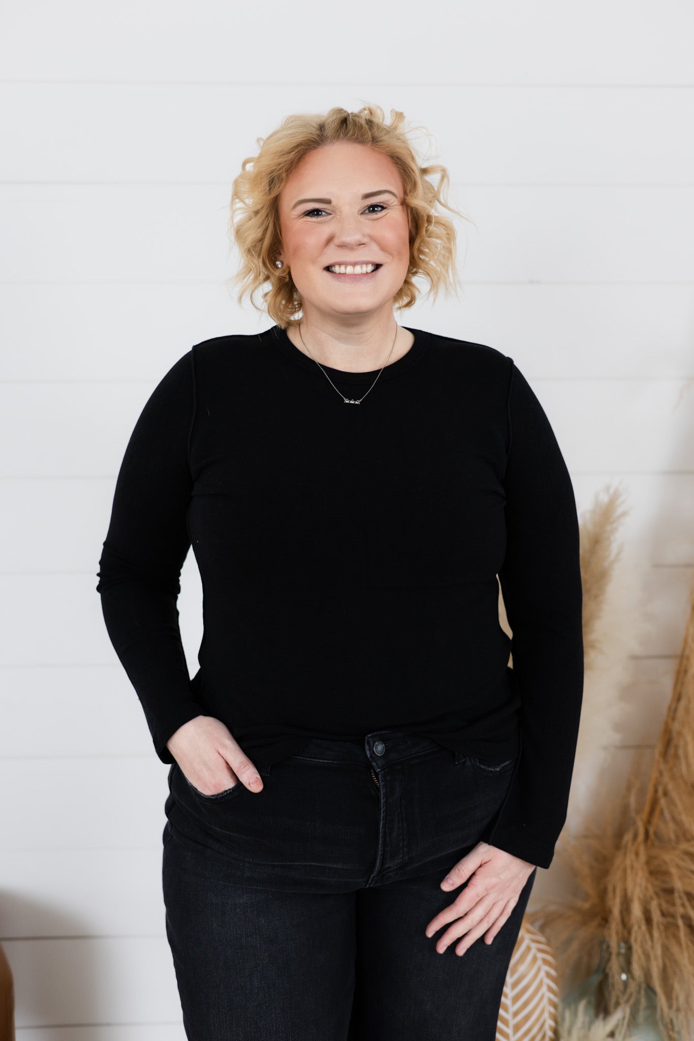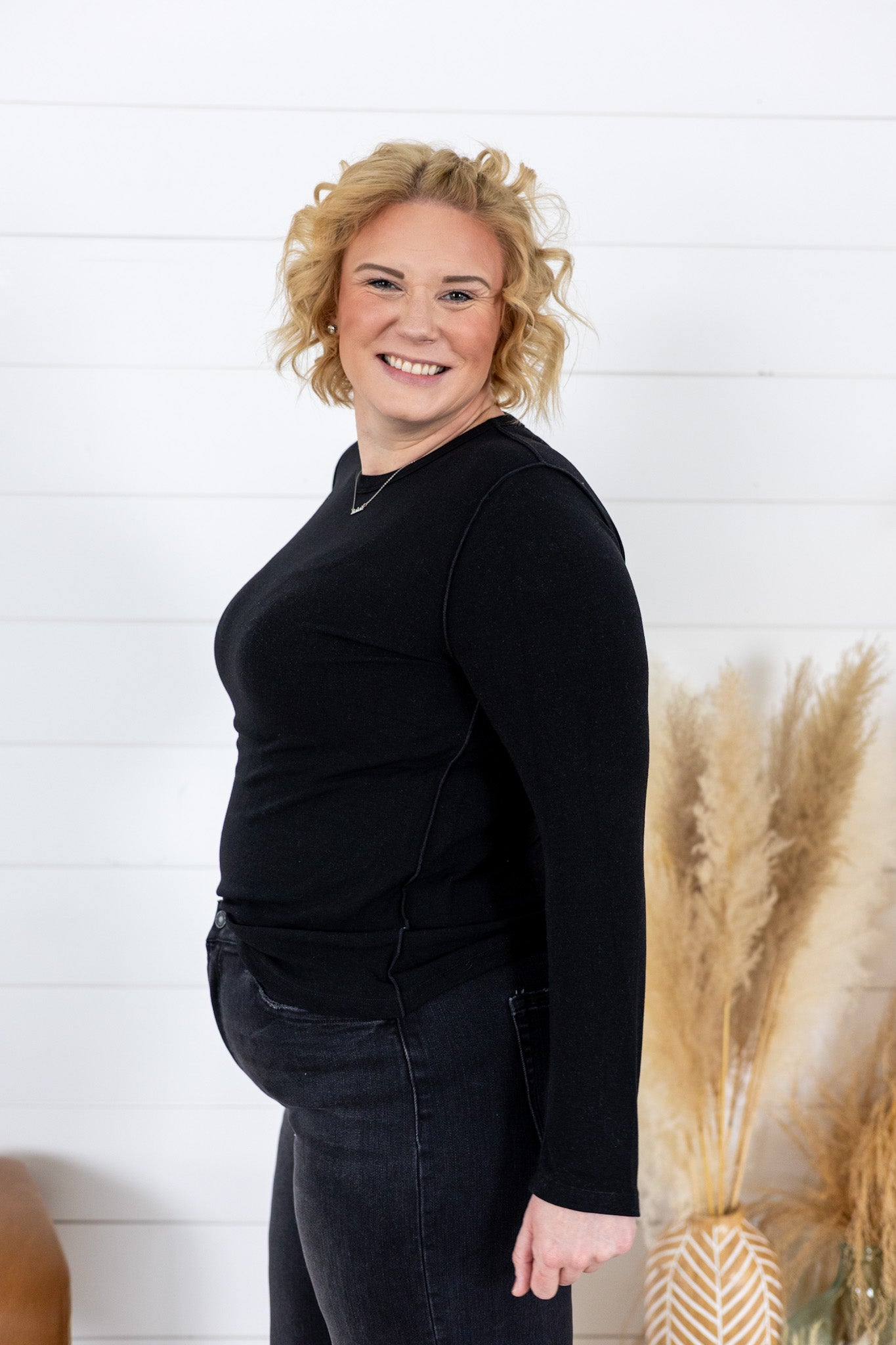 The Good Intentions Top is your new wardrobe essential—a timeless crew neck long sleeve that means business. Crafted with precision out seam detailing, this solid basic delivers understated sophistication with a playful edge. Perfect for layering or wearing solo, it's the kind of piece that works as hard as you do. Whether you're dressing up or keeping it casual, this versatile top pairs with everything and asks nothing in return except maybe a little love in the wash.