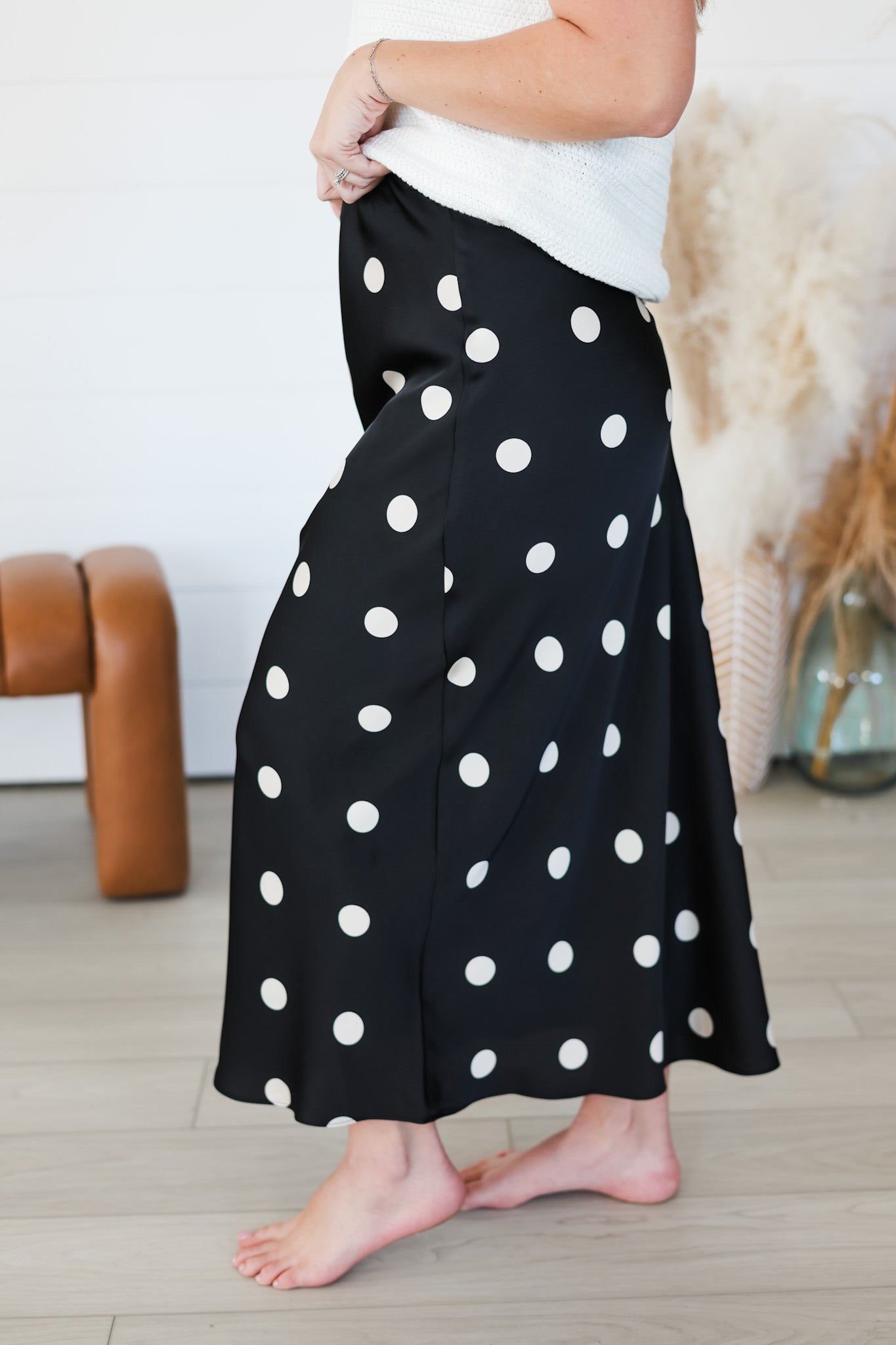 Have a blast in this whimsical polka dot skirt that's as fun to wear as it is to look at. The stretchy elastic waist hugs your curves comfortably while making getting dressed effortless—just slip it on and go. Perfect for adding a pop of personality to any outfit, this playful piece celebrates your lighthearted side with timeless dot-pattern charm.