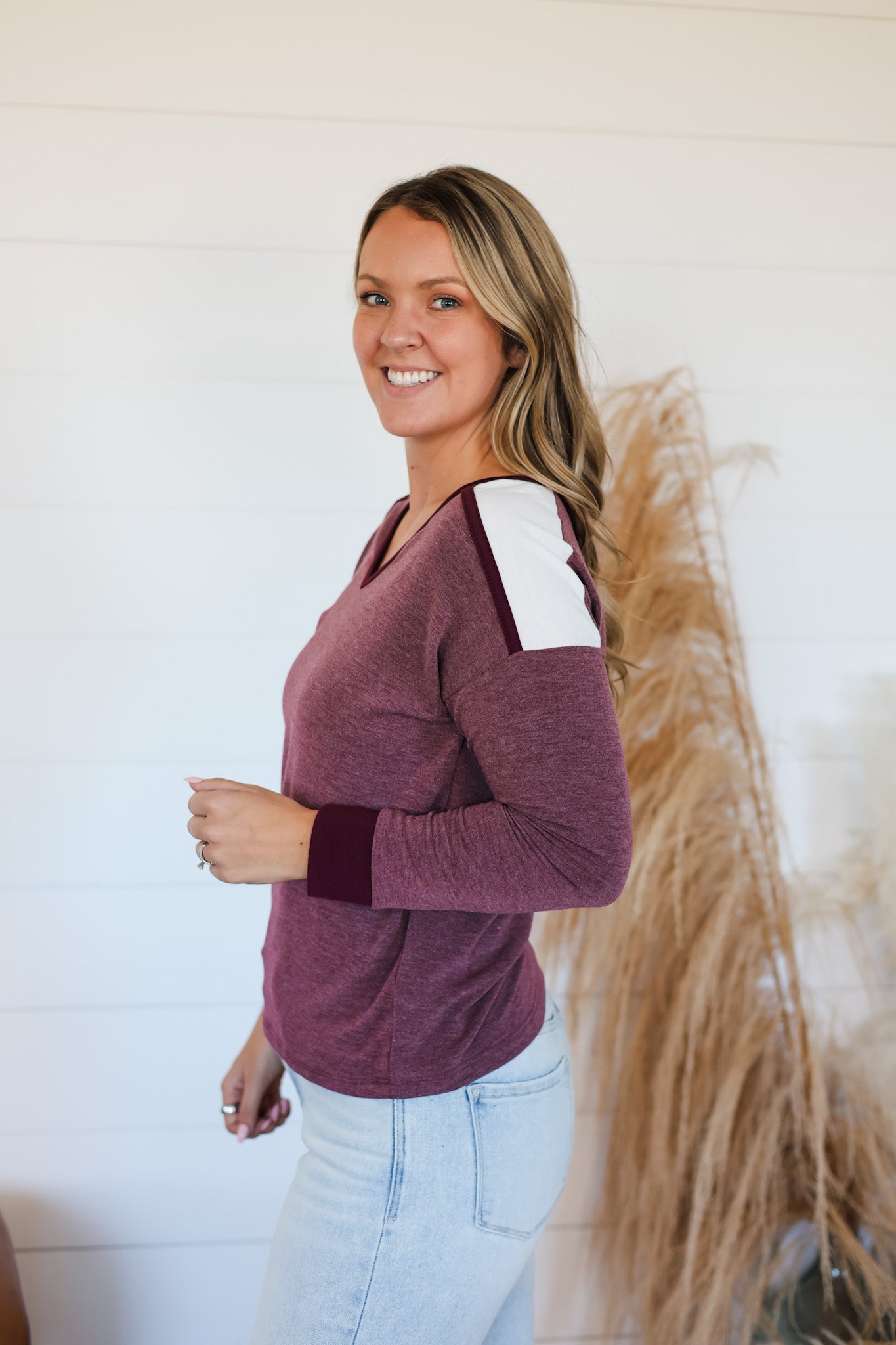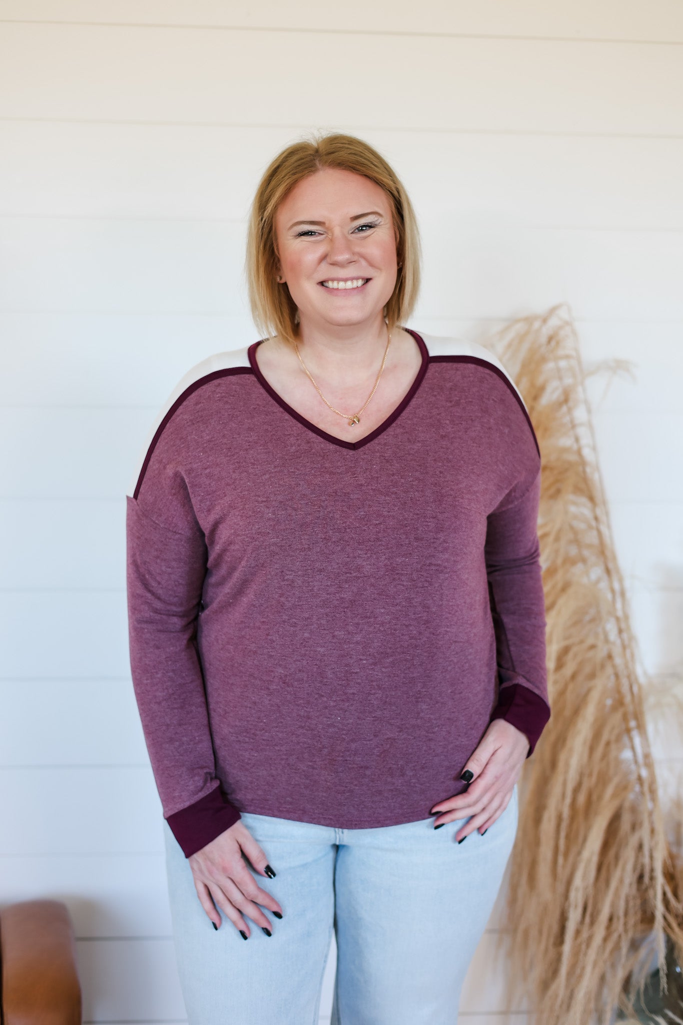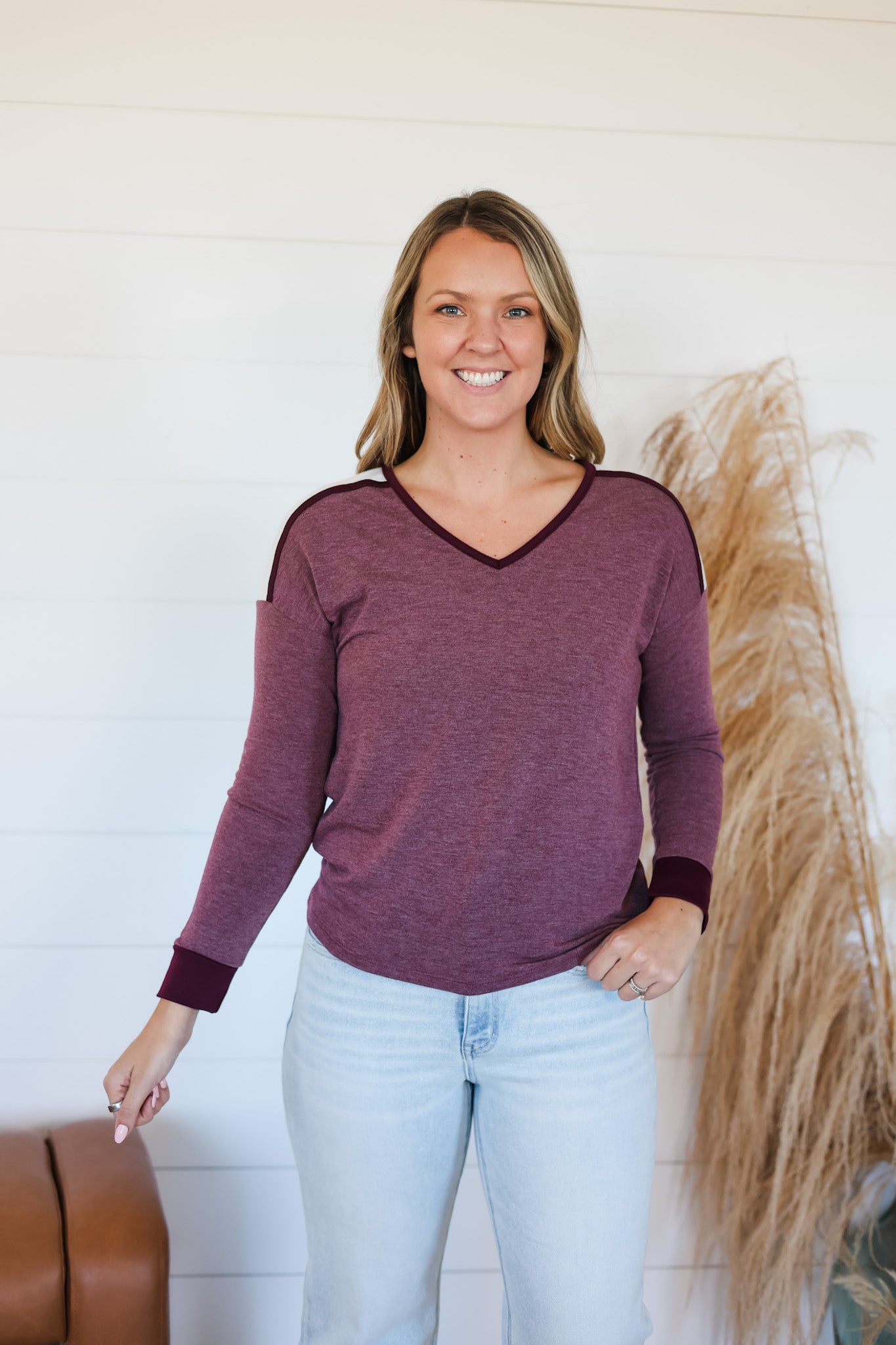Meet your new favorite layering essential—the Have It All Top. This playful long-sleeve features a trendy colorblock design and a flattering V-neck, perfect for adding a pop of style to any outfit. Crafted from irresistibly soft fabric, it’s comfy enough to wear all day and easy to layer under jackets or sweaters. Whether dressed up or down, this top lets you have it all—comfort, style, and versatility.