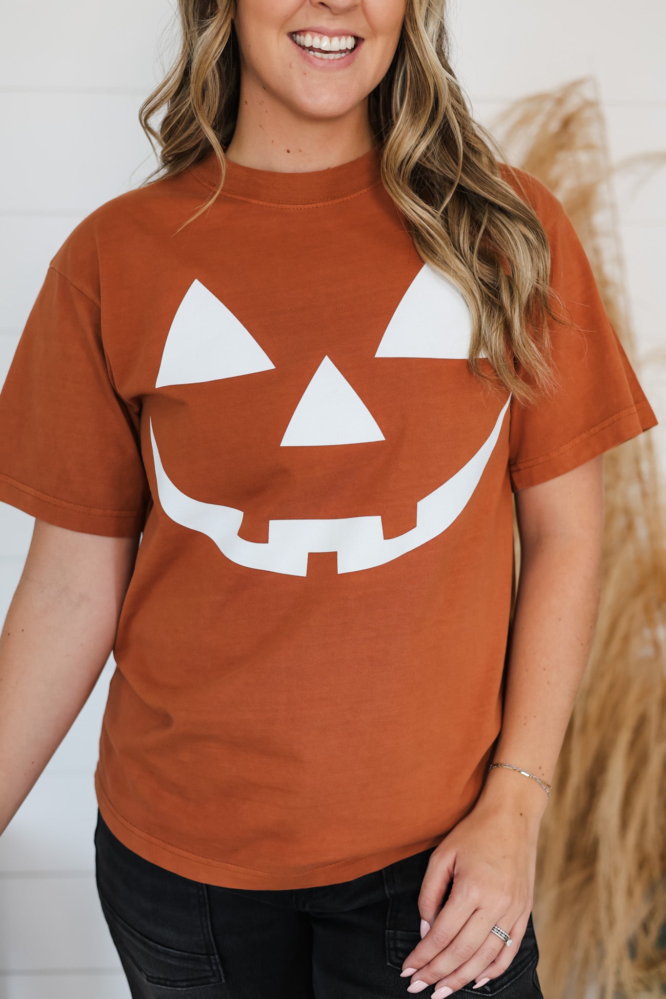 Celebrate the spooky season in style with the Here For The Pumpkins Top. This oversized graphic tee features a fun carved pumpkin face detail that adds a cheeky Halloween vibe to your outfit. Its relaxed fit keeps you comfy while you enjoy all the fall festivities, making it perfect for pumpkin patches, cozy nights, or casual hangouts with friends. Embrace the playful spirit of autumn with a tee that’s as festive as it is comfortable.