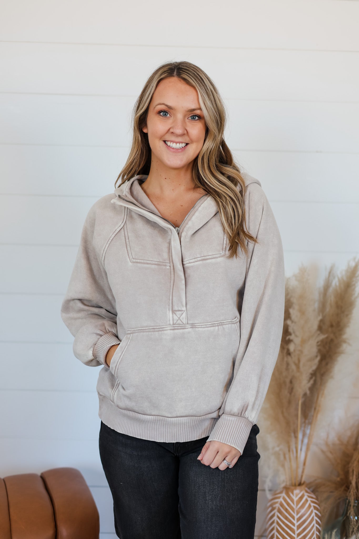 Unleash your inner wild child with our How About It Top - an acid wash fleece oversized 1/4 zip kangaroo hoodie. Stay cozy and make a statement with this unique piece. Just zip it up and let your rebel side shine, because who says you can't be comfortable and fearless at the same time?!