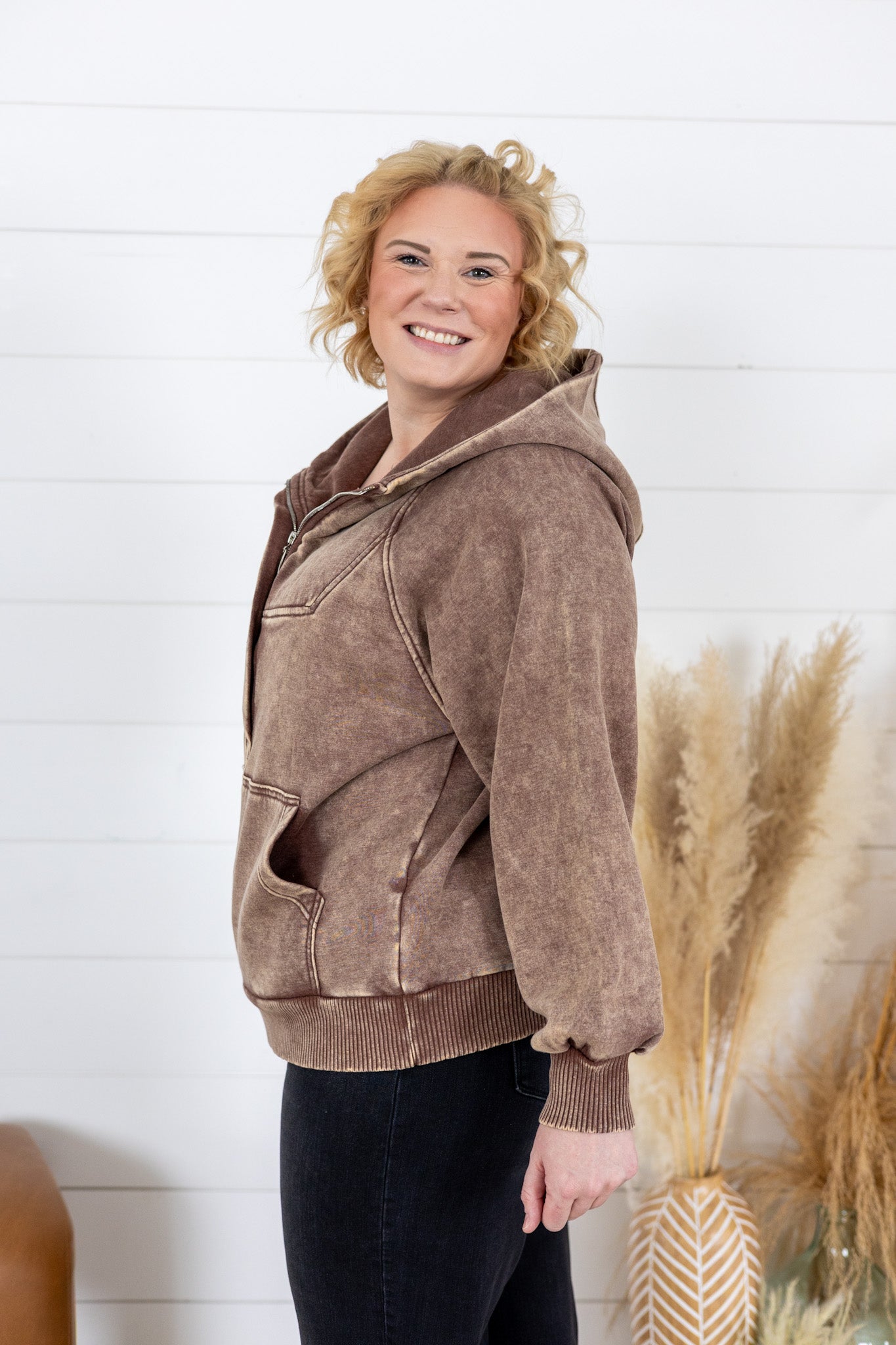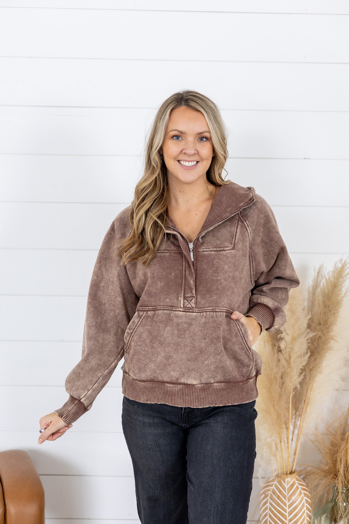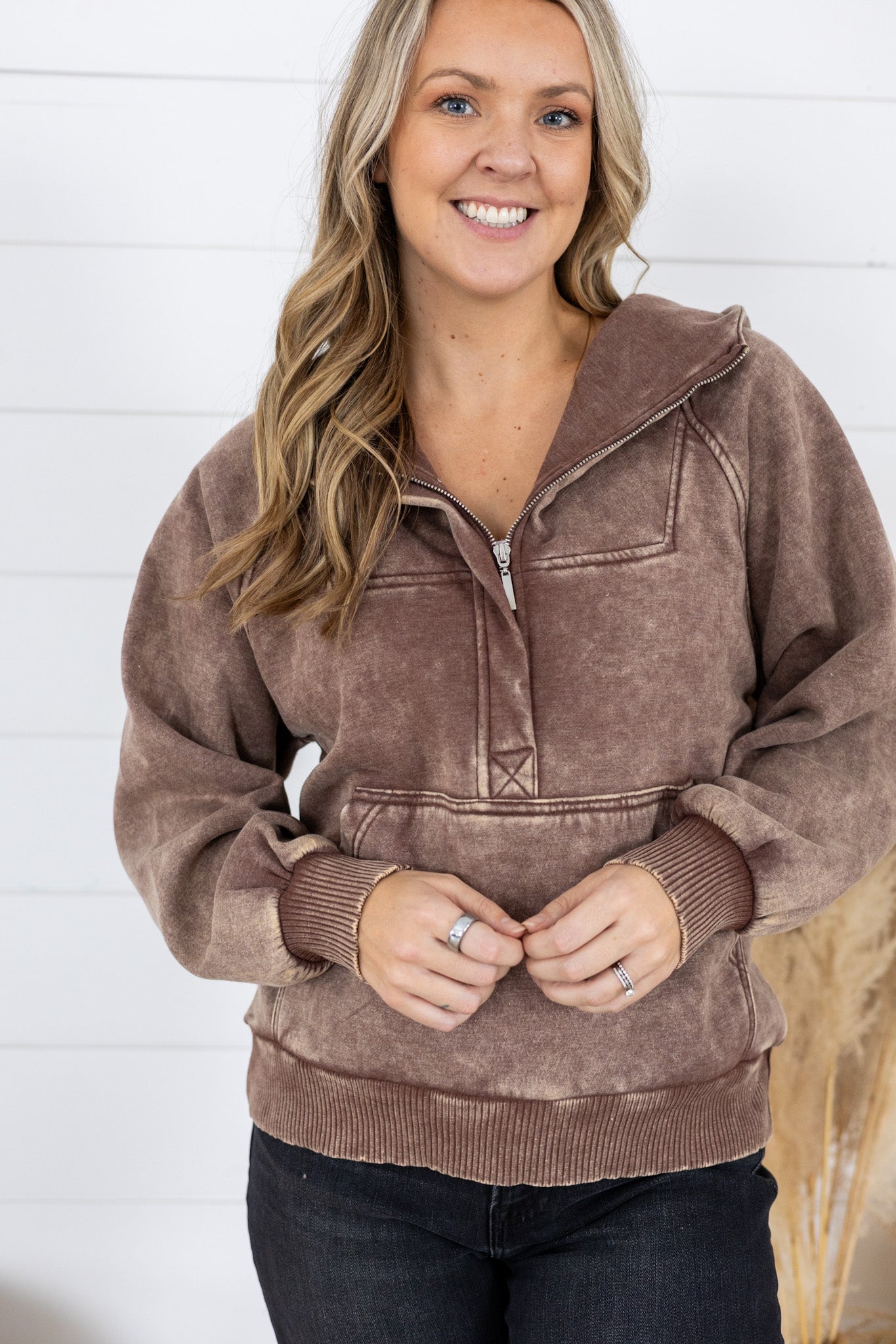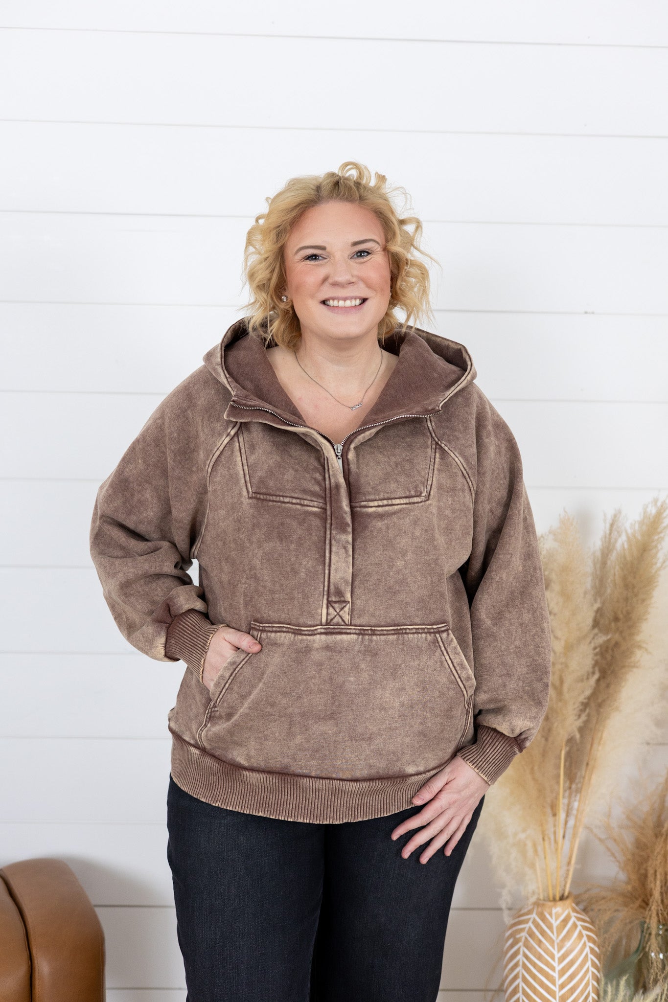 Unleash your inner wild child with our How About It Top - an acid wash fleece oversized 1/4 zip kangaroo hoodie. Stay cozy and make a statement with this unique piece. Just zip it up and let your rebel side shine, because who says you can't be comfortable and fearless at the same time?!