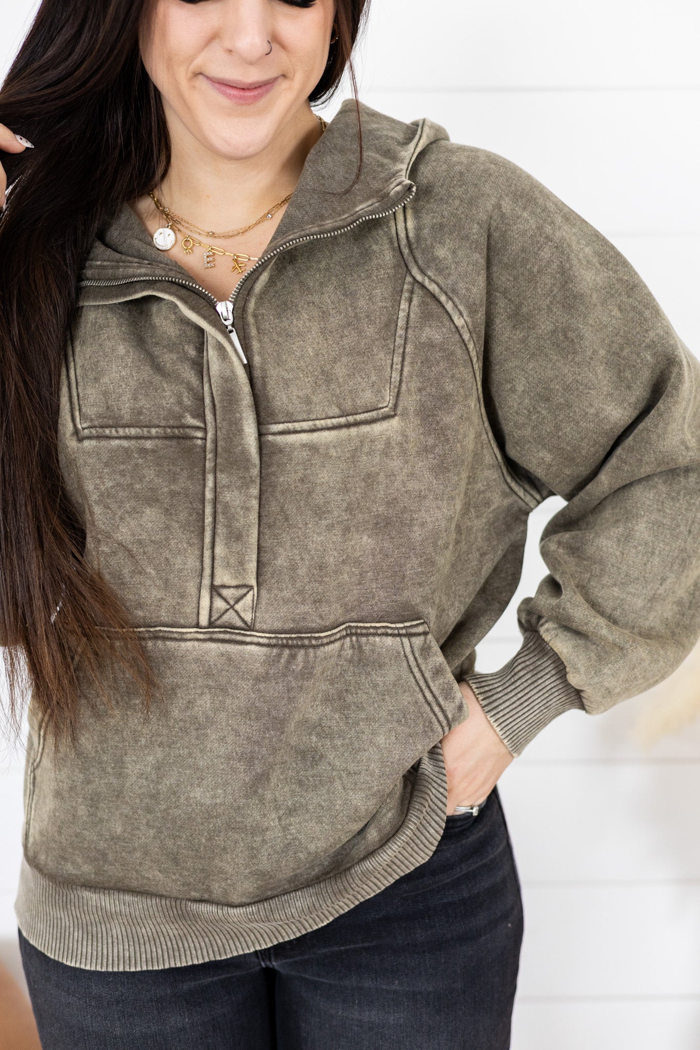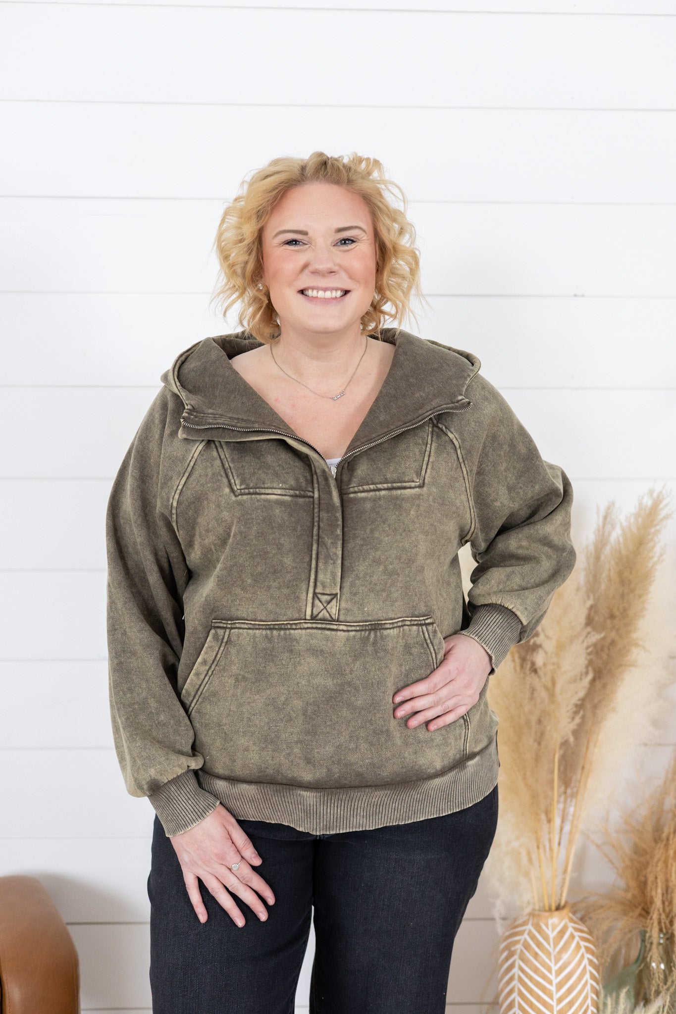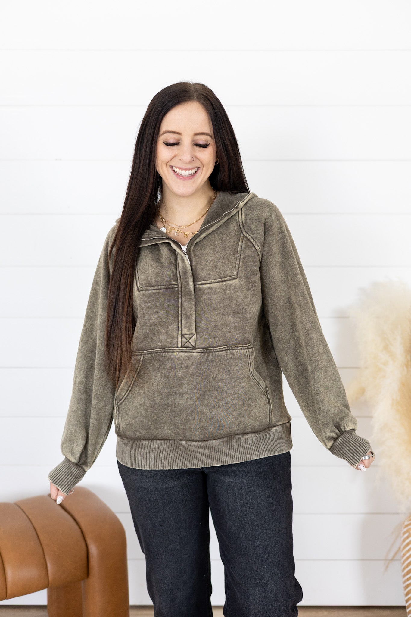 Unleash your inner wild child with our How About It Top - an acid wash fleece oversized 1/4 zip kangaroo hoodie. Stay cozy and make a statement with this unique piece. Just zip it up and let your rebel side shine, because who says you can't be comfortable and fearless at the same time?!