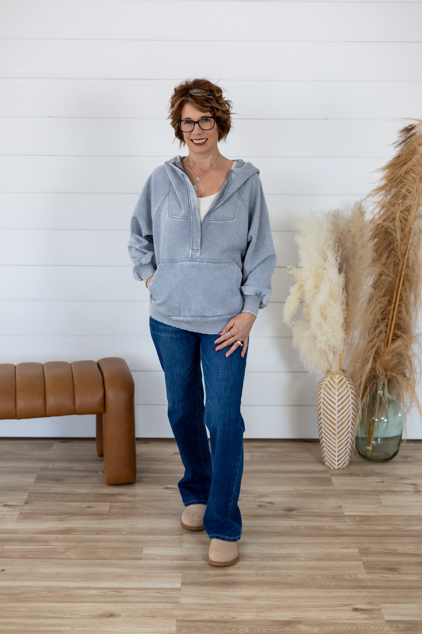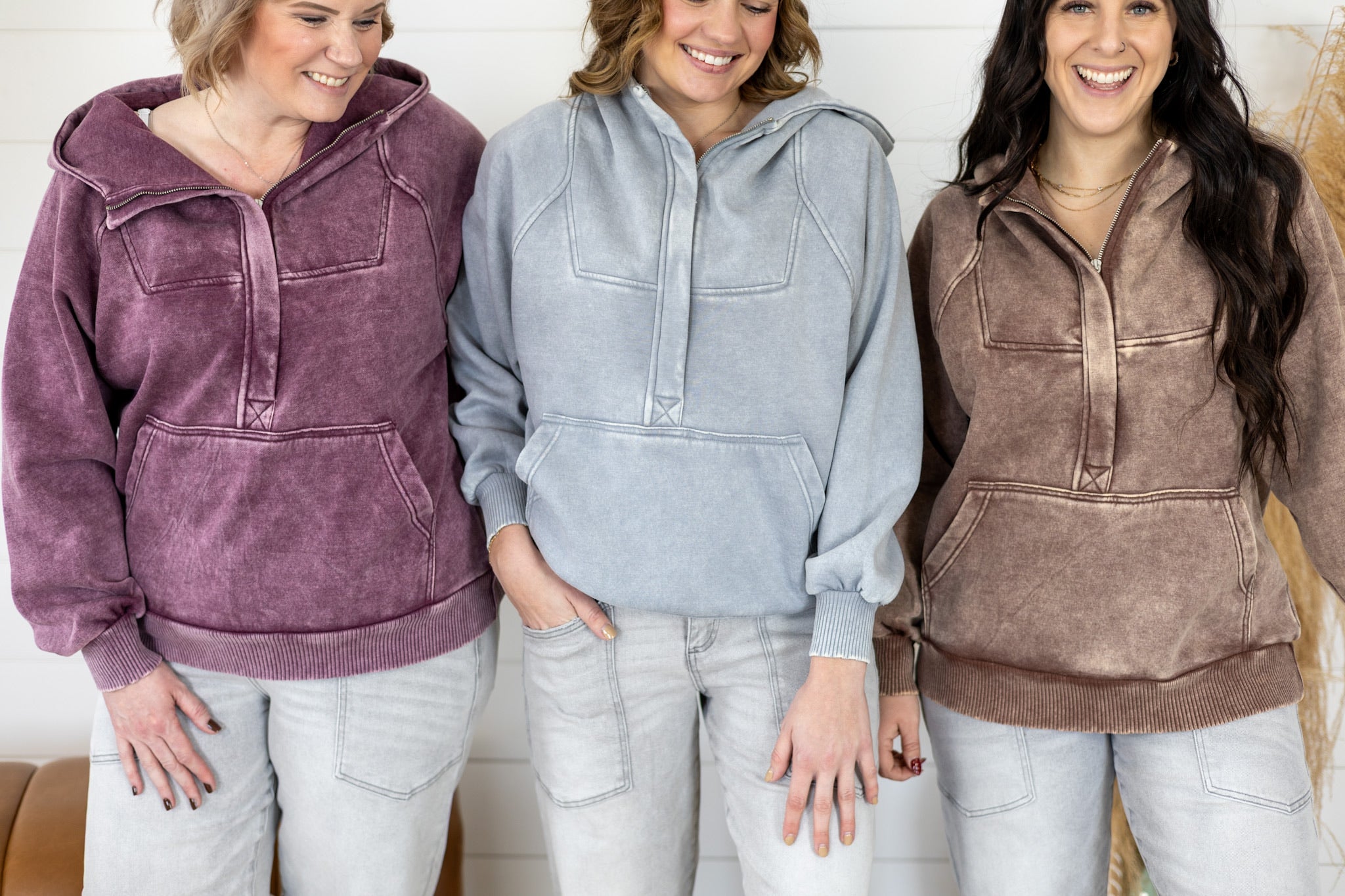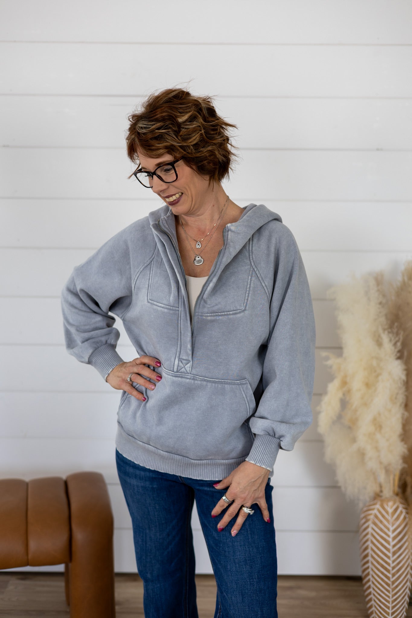 Unleash your inner wild child with our How About It Top - an acid wash fleece oversized 1/4 zip kangaroo hoodie. Stay cozy and make a statement with this unique piece. Just zip it up and let your rebel side shine, because who says you can't be comfortable and fearless at the same time?!