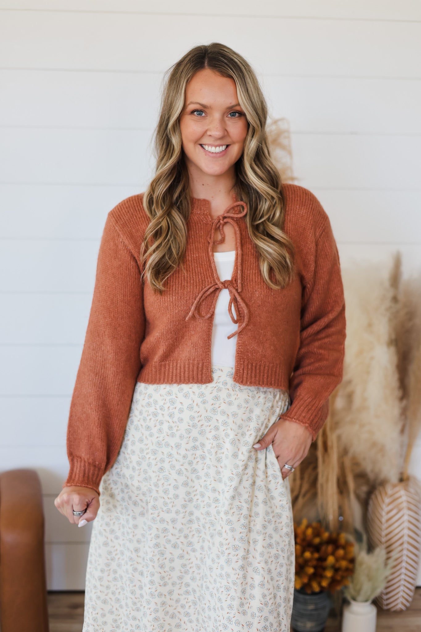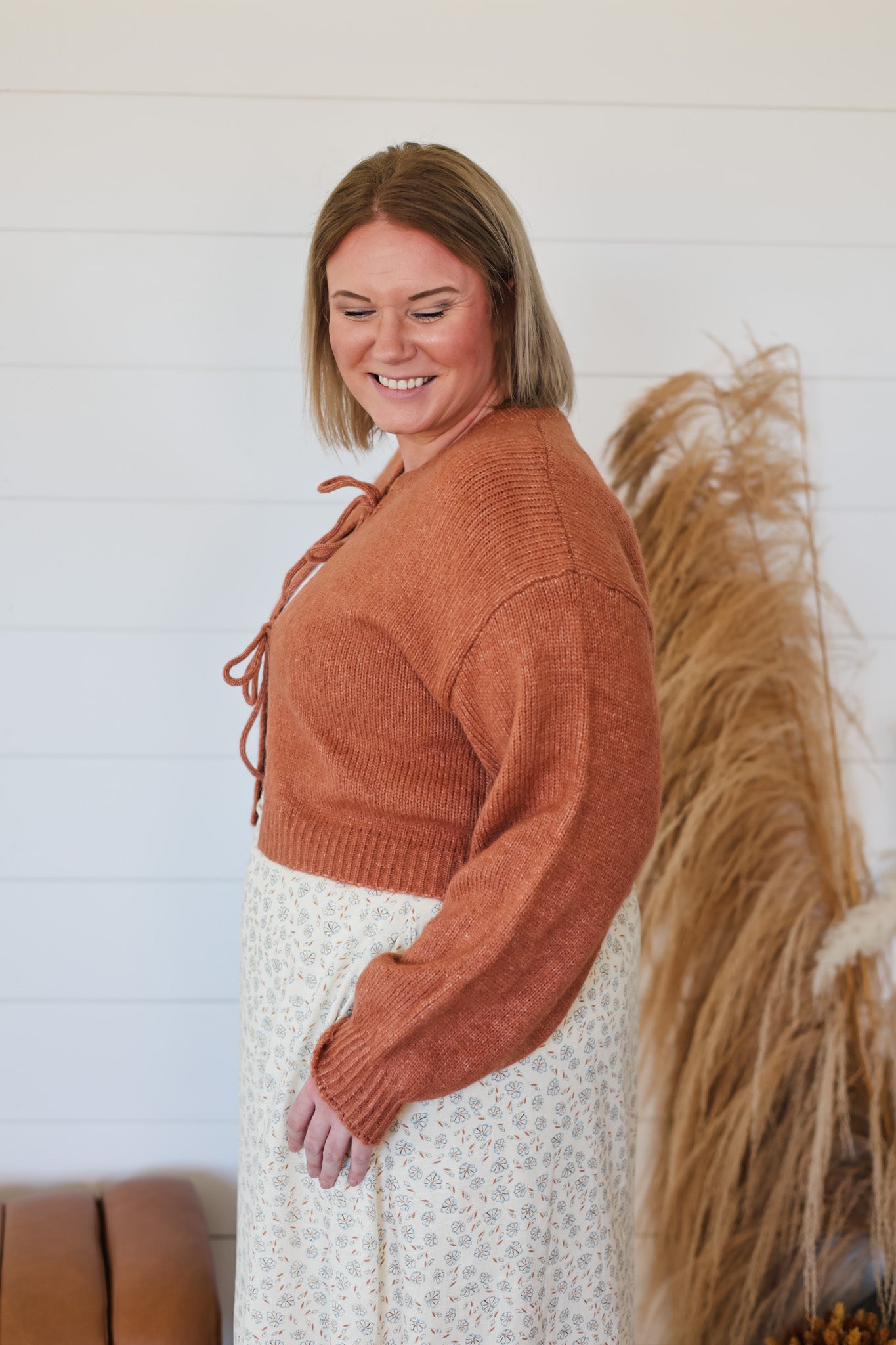 This playful bow front cropped sweater top adds a fun twist to your casual wardrobe. Featuring a charming bow detail that draws attention to the front and a trendy cropped length, it’s perfect for pairing with high-waisted jeans or skirts. Soft, cozy knit fabric keeps you comfortable while showcasing your stylish side with a flirty, fresh vibe.