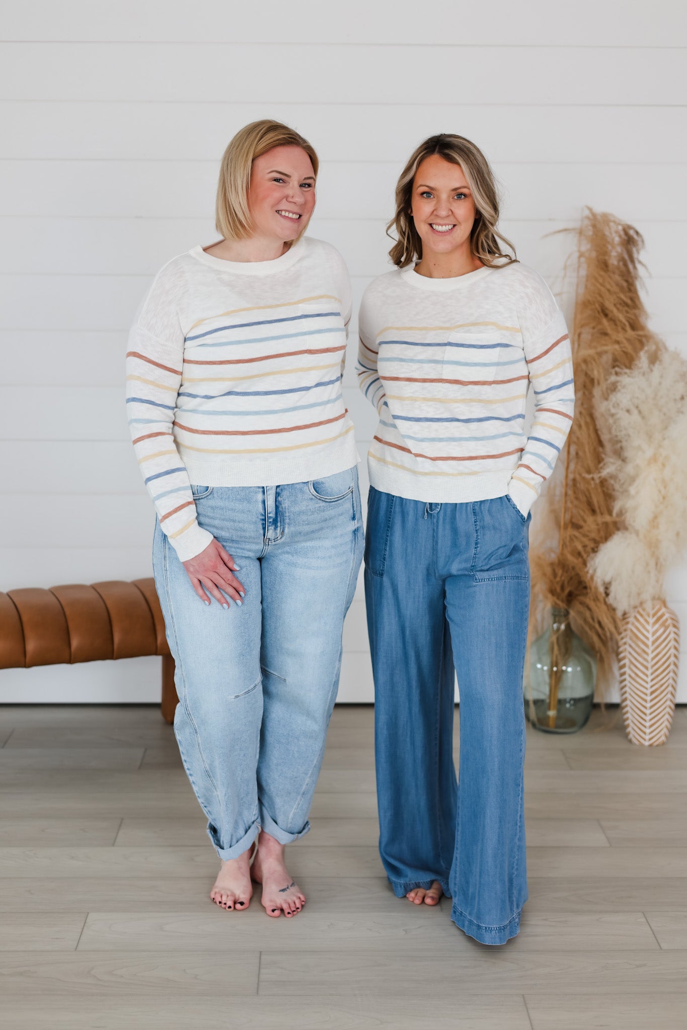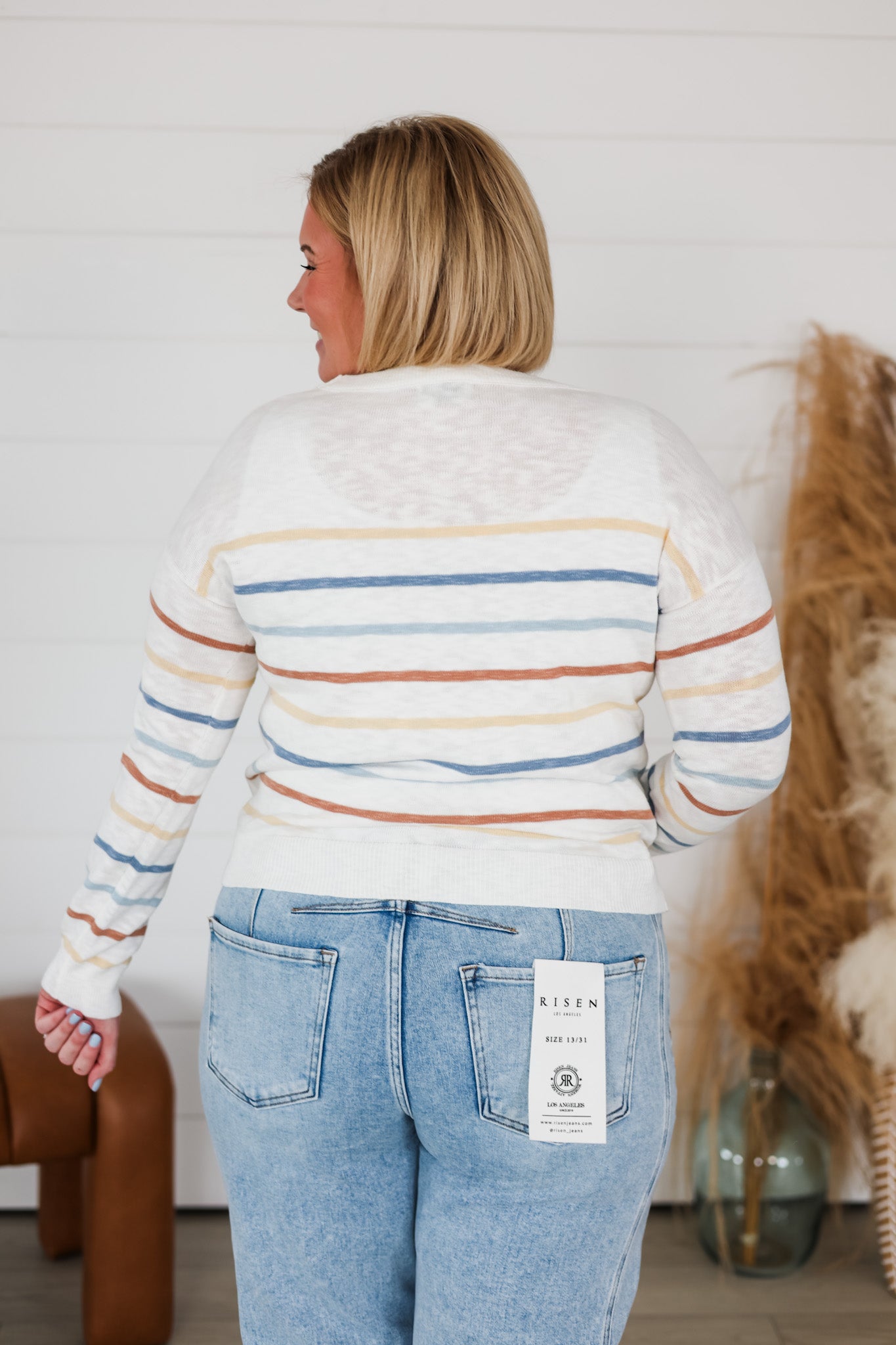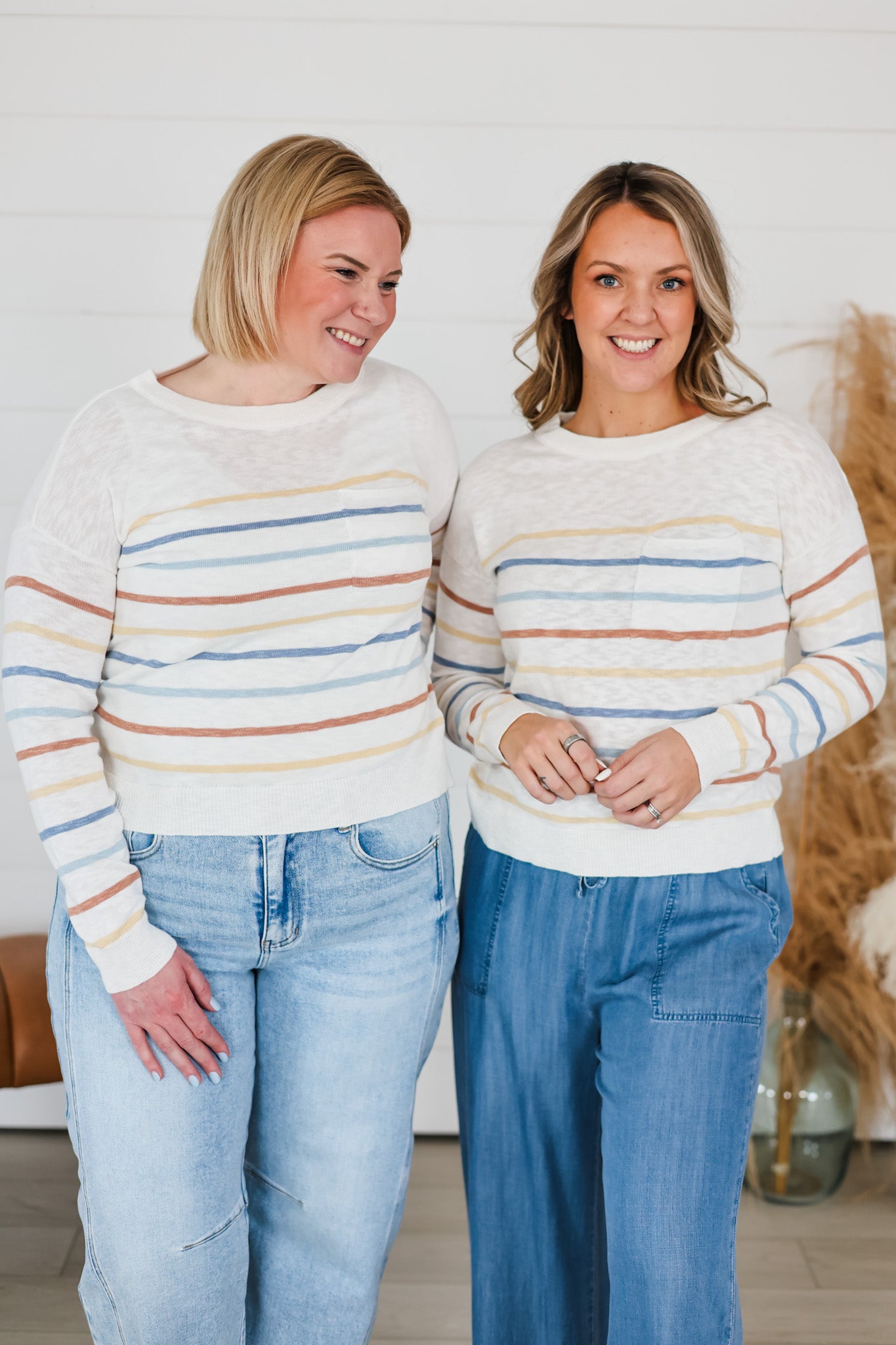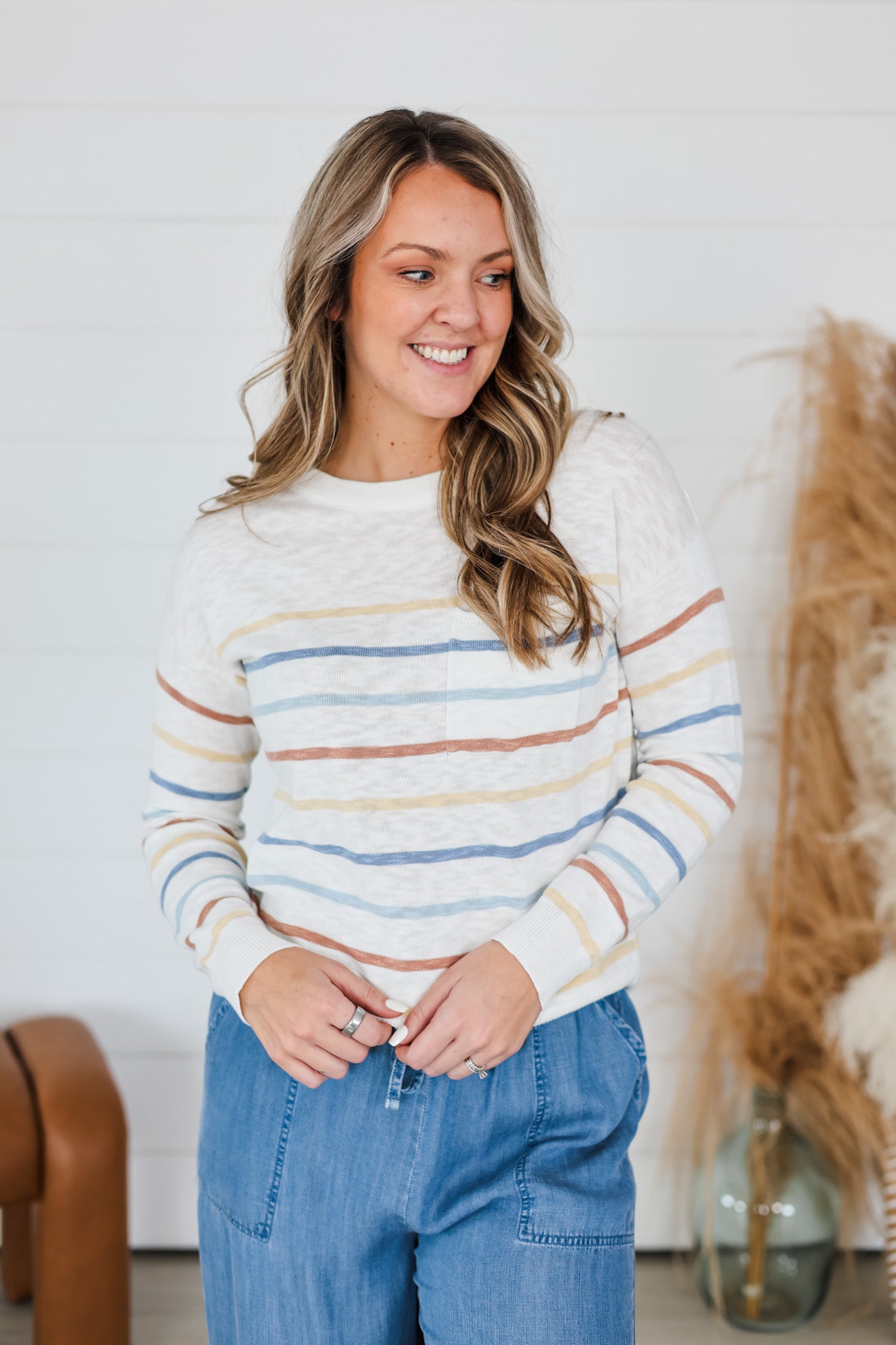 Layer up with effortless style in this striped slub sweater top. Soft, textured fabric drapes beautifully while the multi-color stripes add instant personality to any outfit. Perfect for casual days or dressing up with your favorite bottoms. The relaxed fit keeps things comfortable without sacrificing that put-together vibe. Whether you're running errands or meeting friends, this versatile piece is your go-to for looking good with zero fuss.