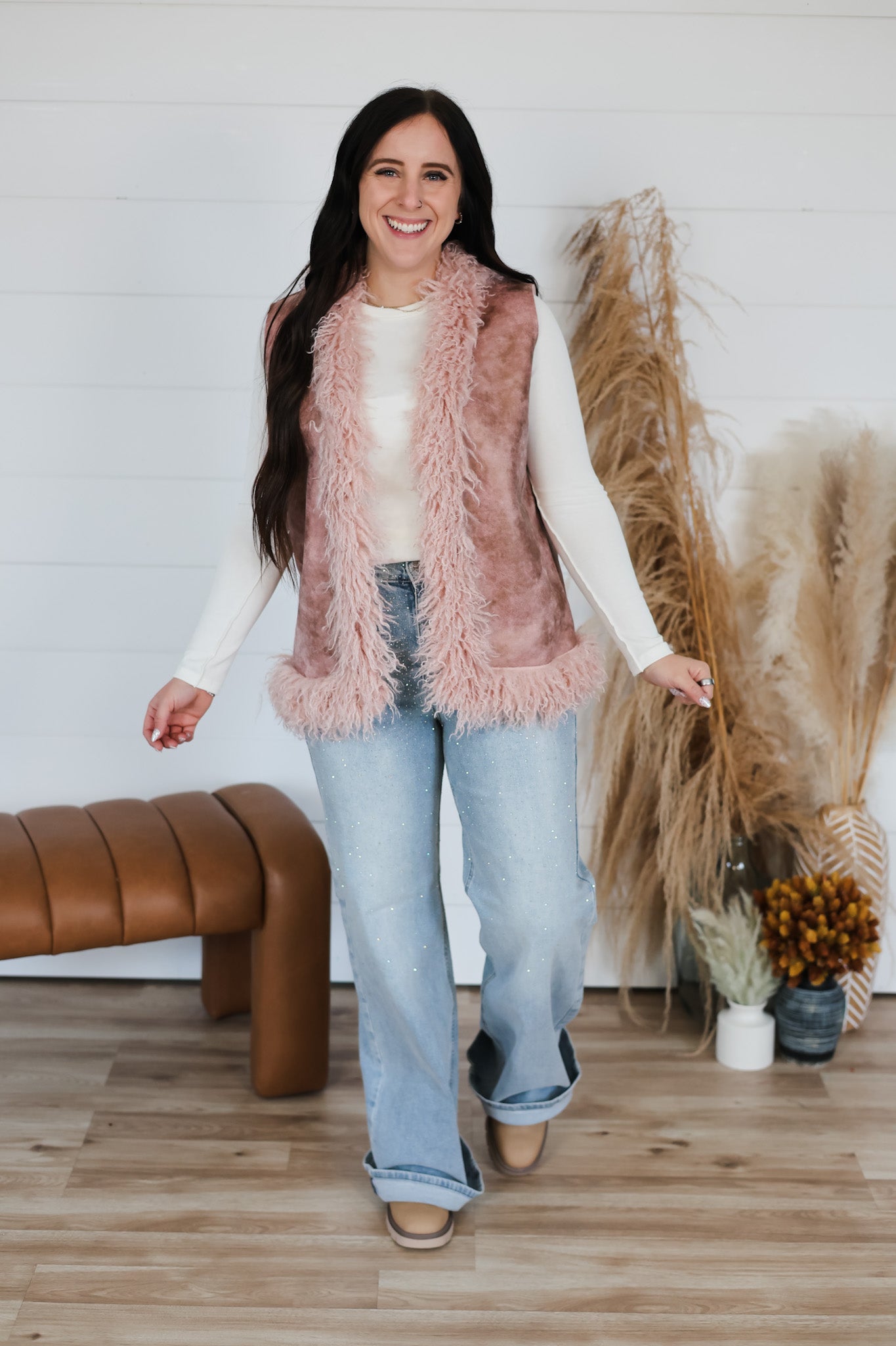Layer up with effortless boho vibes in this cozy sherpa suede vest! The open front design lets you style it your way—throw it over anything for instant warmth and texture. Tunic length keeps things relaxed and flattering, while the plush faux fur lining adds that luxe touch without the fuss. Perfect for those days when you're in no rush to look put-together, because comfort and cool style go hand in hand.