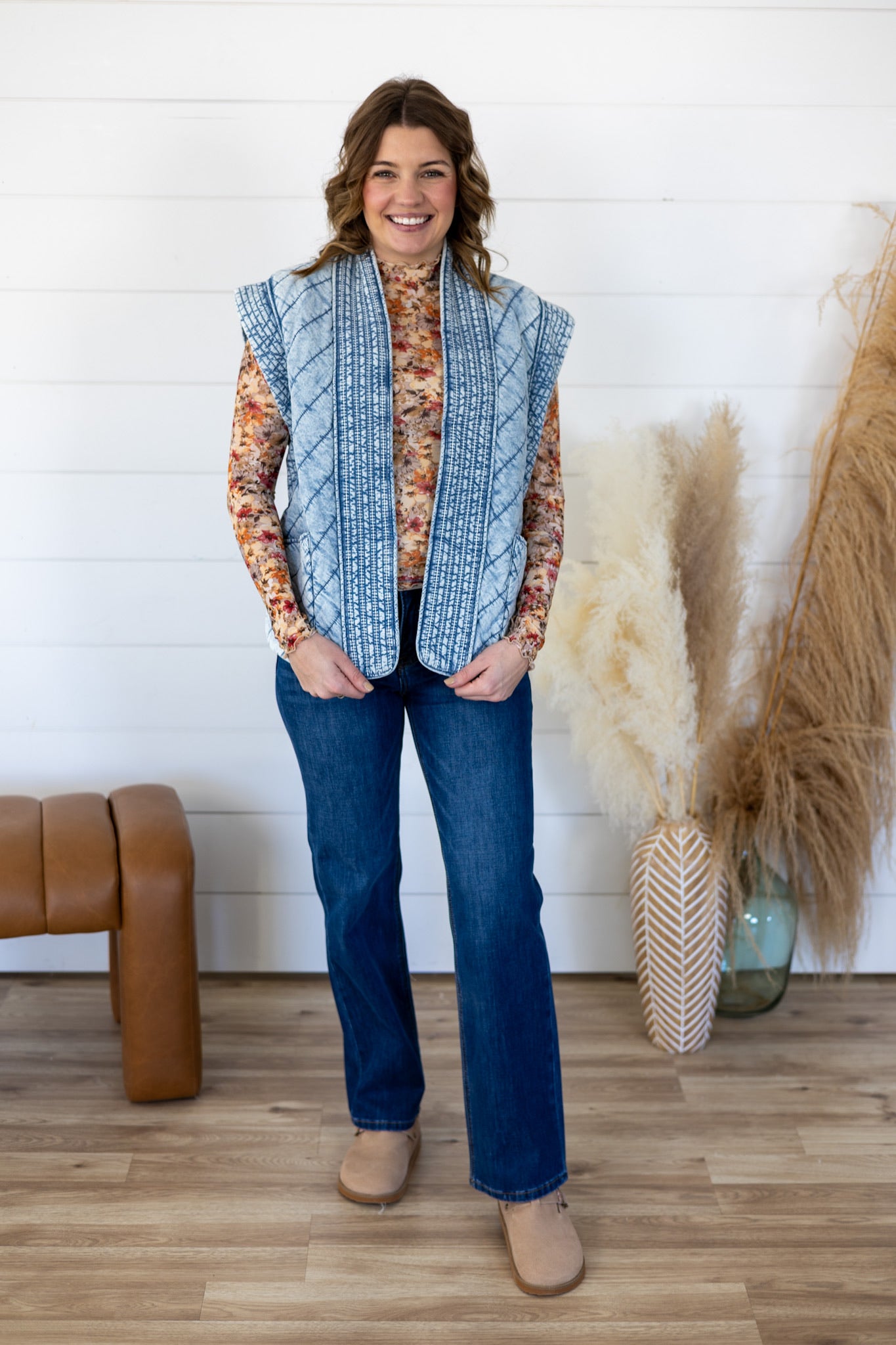 Layer up with effortless cool in this oversized sleeveless vest! Featuring a relaxed shawl neckline and drop shoulder design, it's crafted from acid-washed denim with an eye-catching quilted pattern. The lined interior keeps you cozy while the roomy fit pairs perfectly with everything in your wardrobe. Embrace that laid-back vibe—this vest is your new go-to for casual style that feels just right.