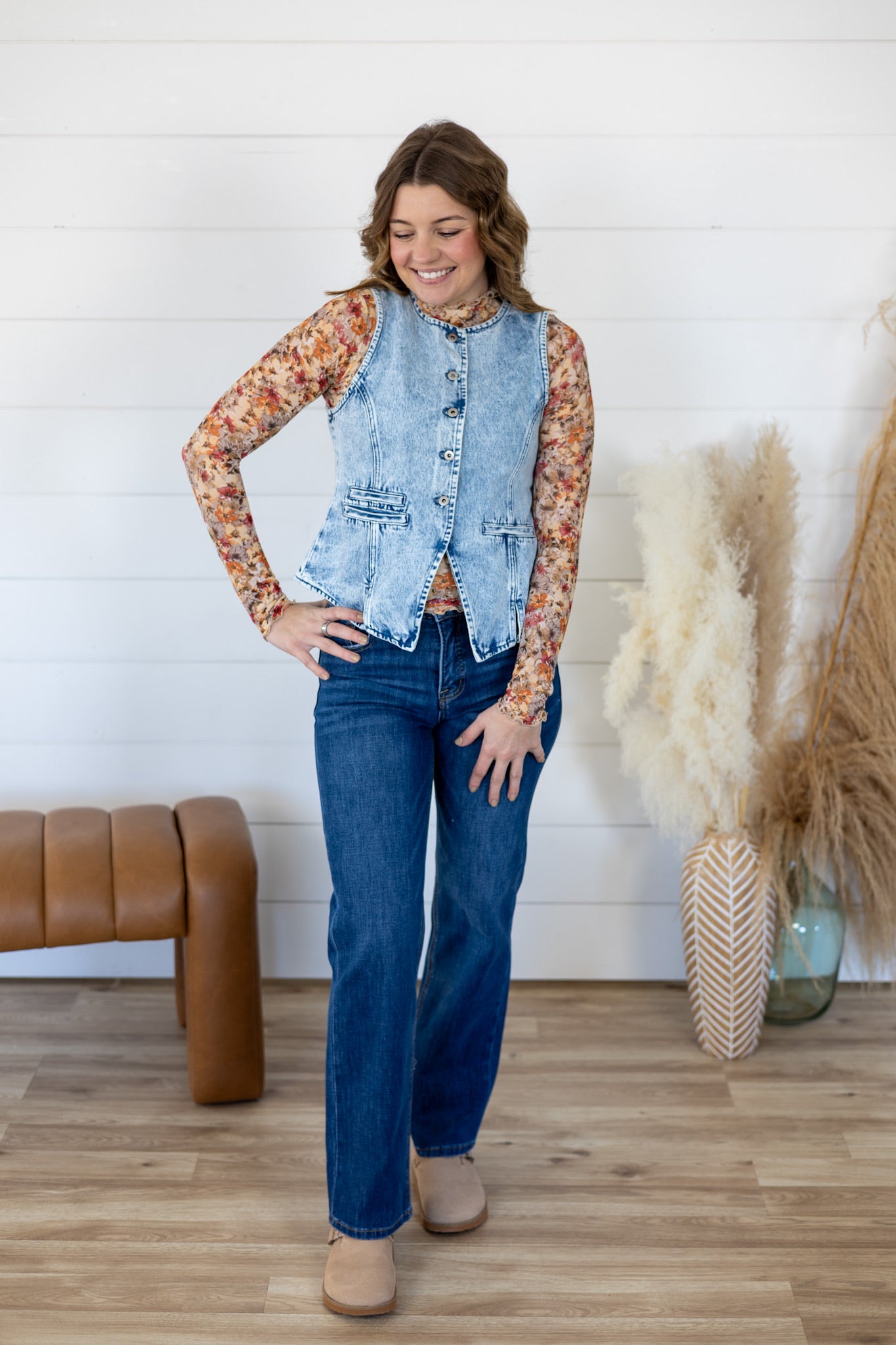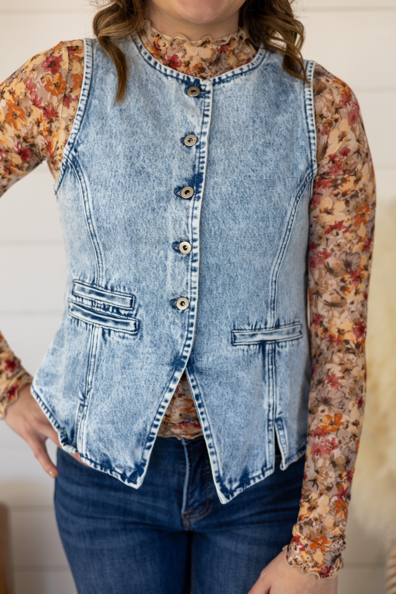 Meet your new go-to layering piece—a denim vest that's got serious style credentials. Crafted from structured, non-stretch denim, it holds its shape beautifully while you move through your day. The front button detailing adds just the right amount of visual flair, making it work overtime with everything from casual tees to sundresses. Timeless, dependable, and undeniably cool—this vest is the kind of piece that sticks around in your rotation for years.