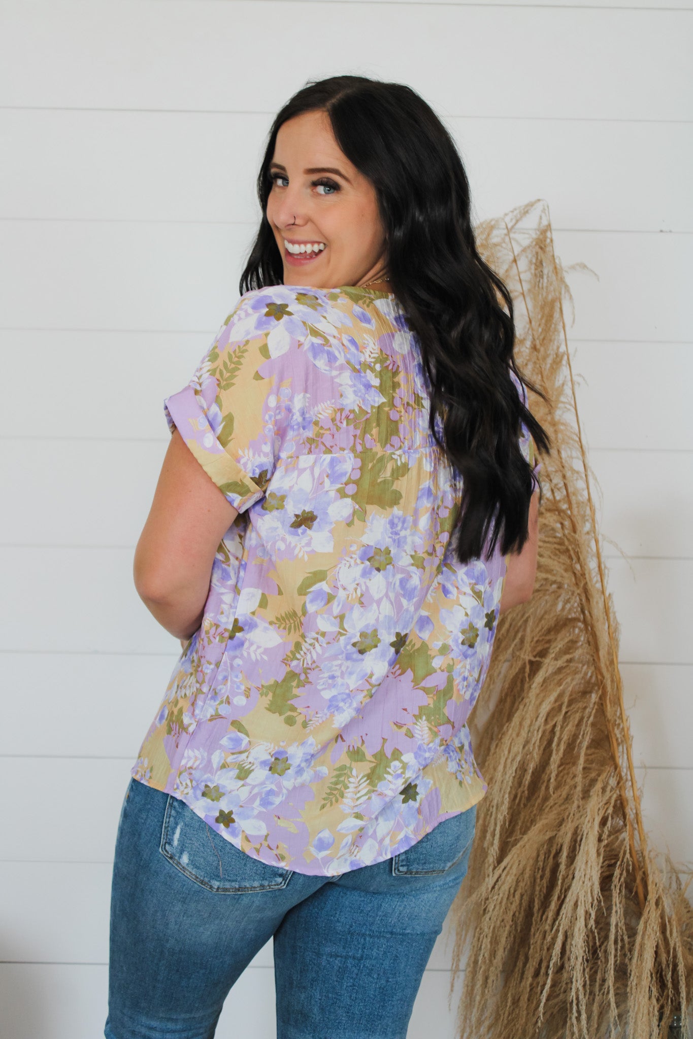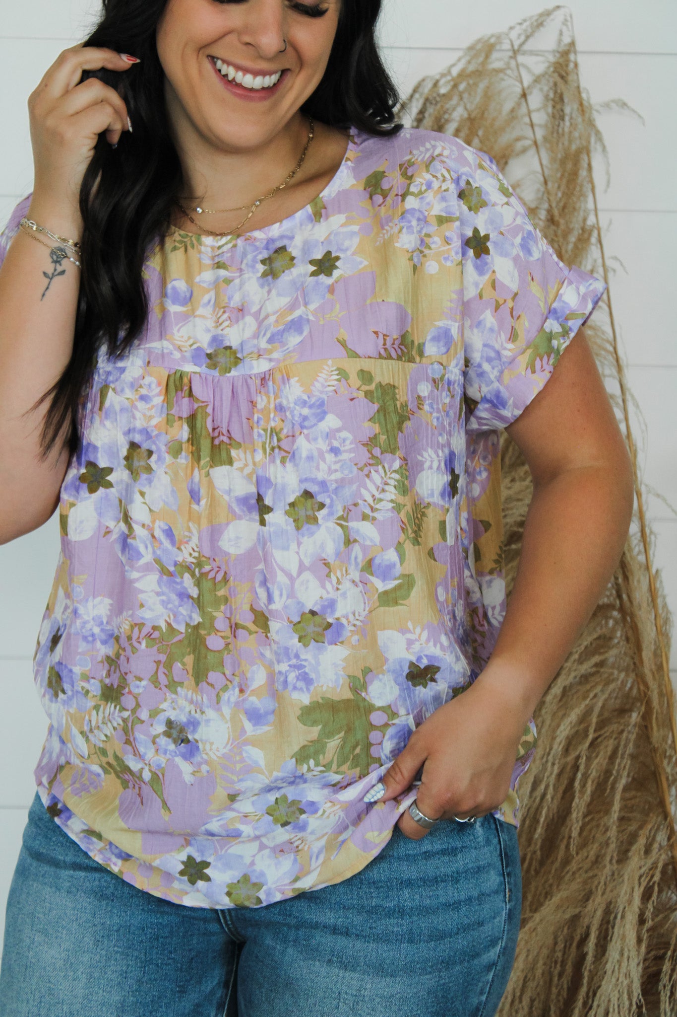 The Invisible String Top brings a playful twist to your wardrobe with its crinkled floral fabric and charming gathered chest detail. Featuring a comfortable crew neck and breezy short sleeves, this top is perfect for sunny days and spontaneous adventures. Embrace effortless style with a touch of whimsy!